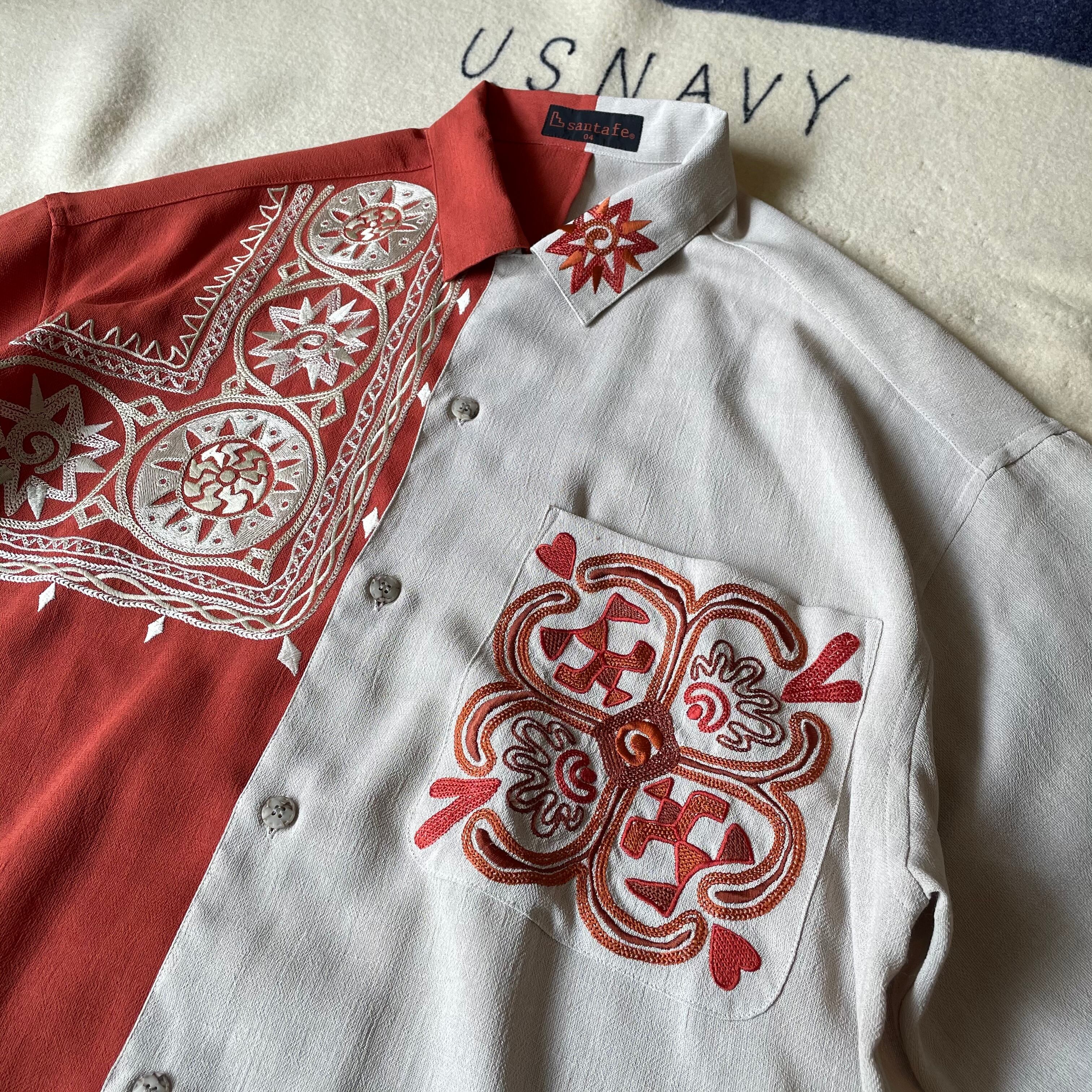 80s頃のSanta-feという国産ブランド。50s-60sあたりのギャバシャツにありそうなデザイン。カラーリング、デザイン共にセンス良しです。