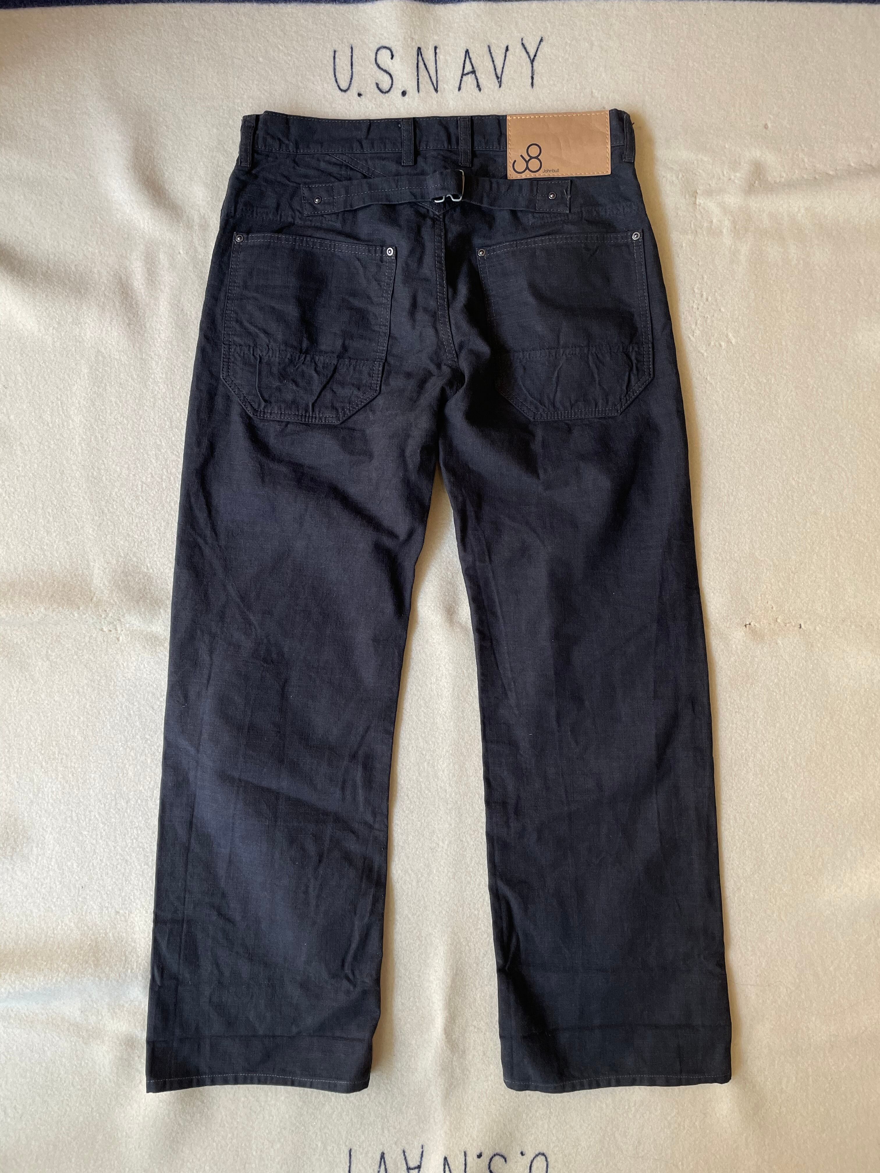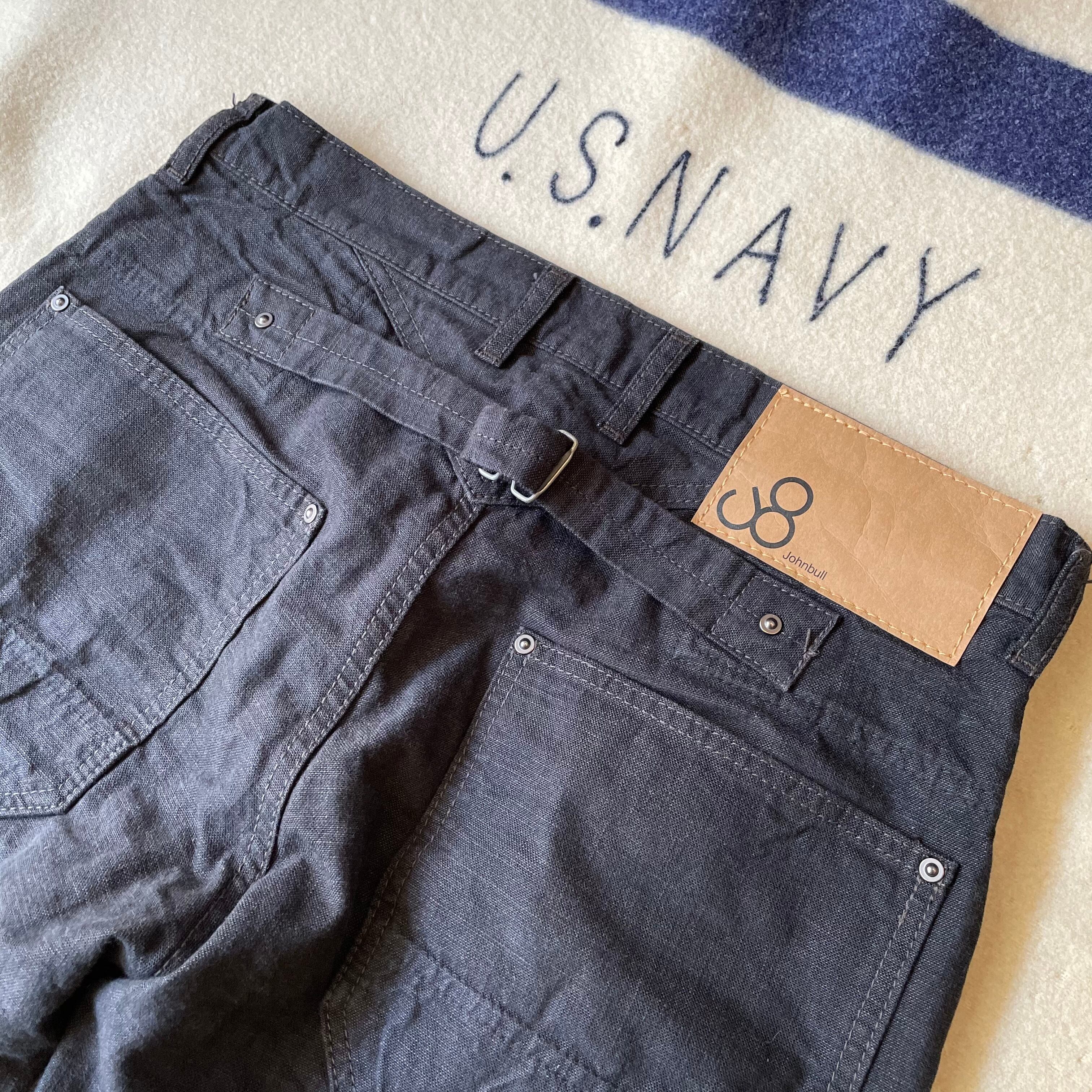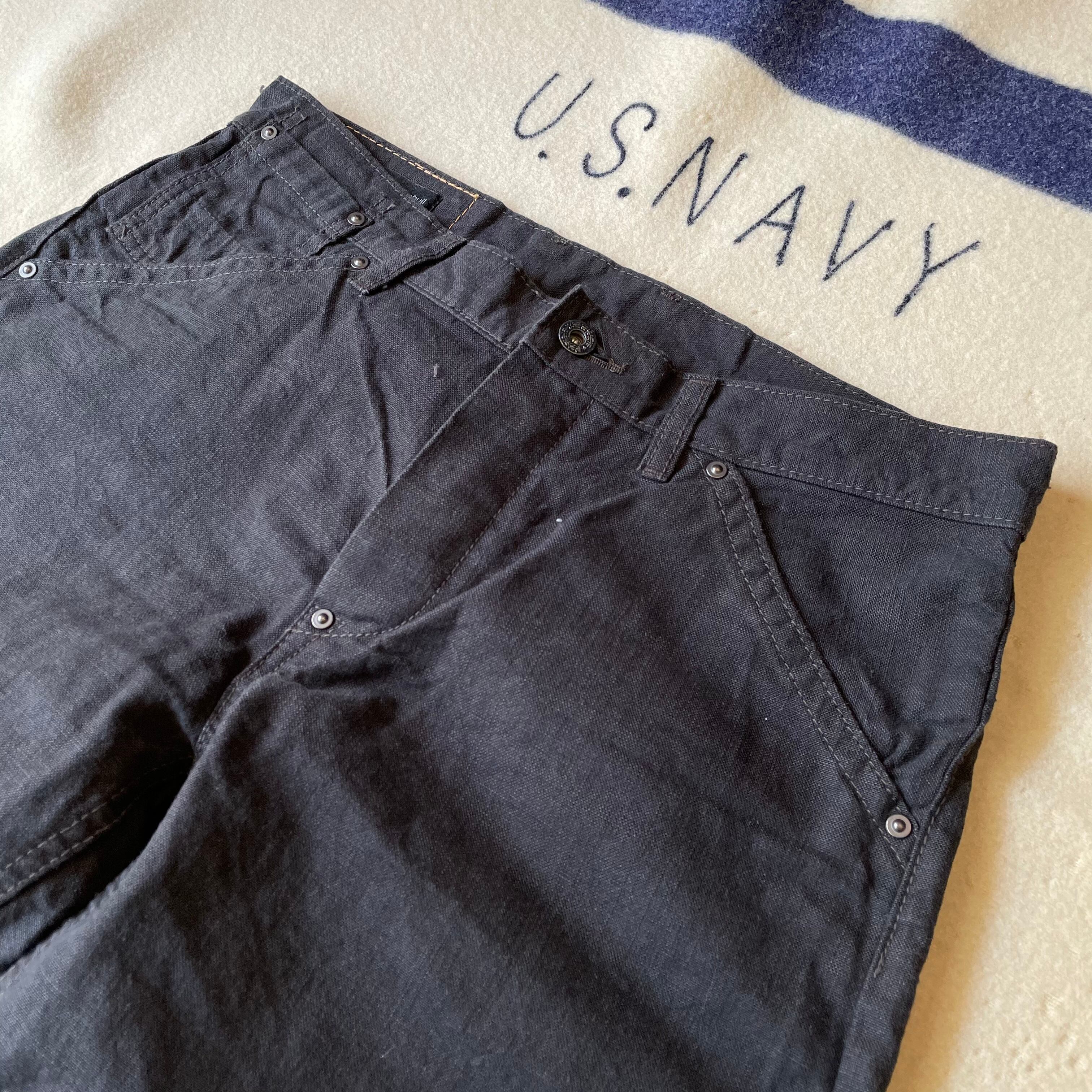 シンチバック付き、30s頃のワークパンツをベースにしたJOHNBULLのペインターパンツ。ブラックになるだけでワークアイテムも大分印象変わります。