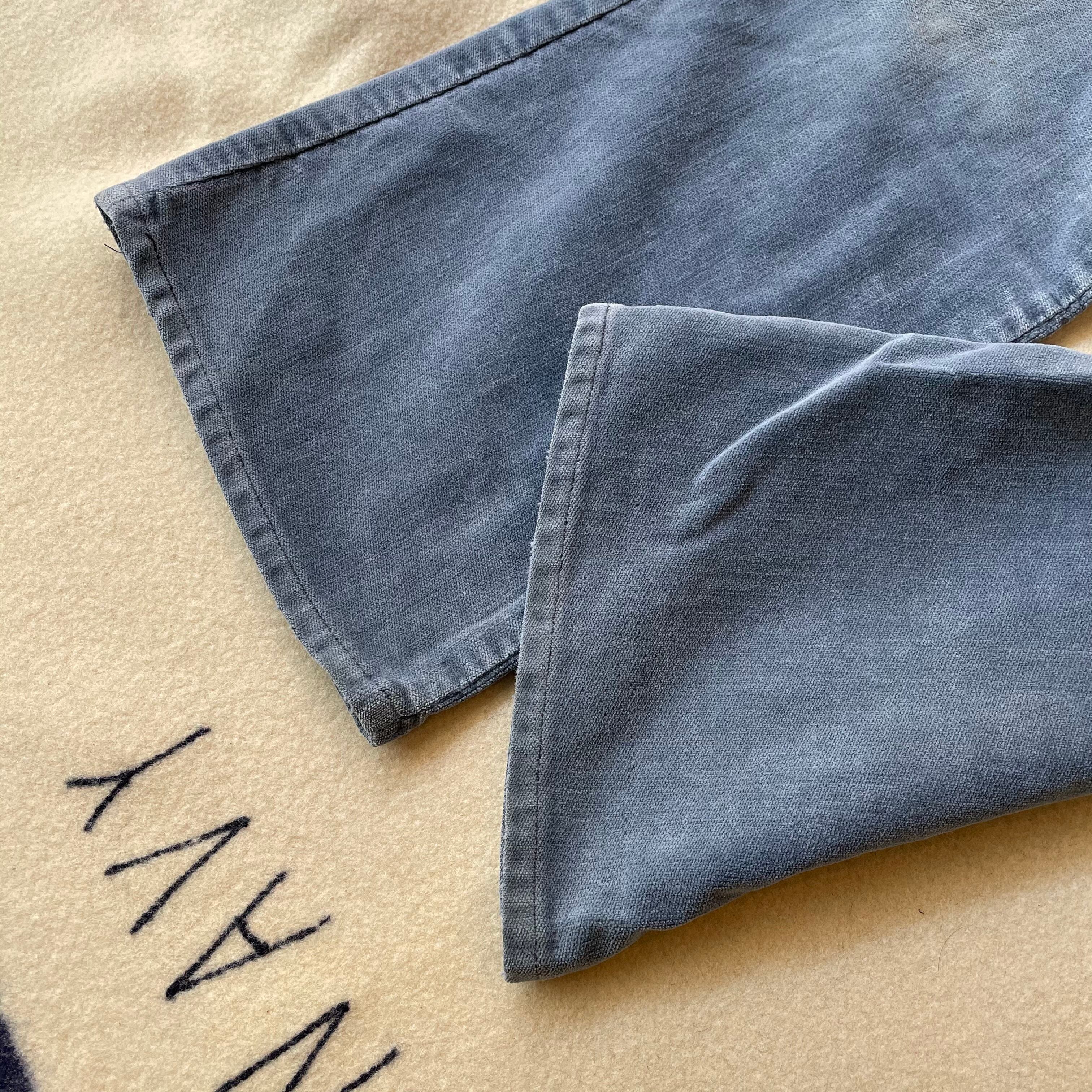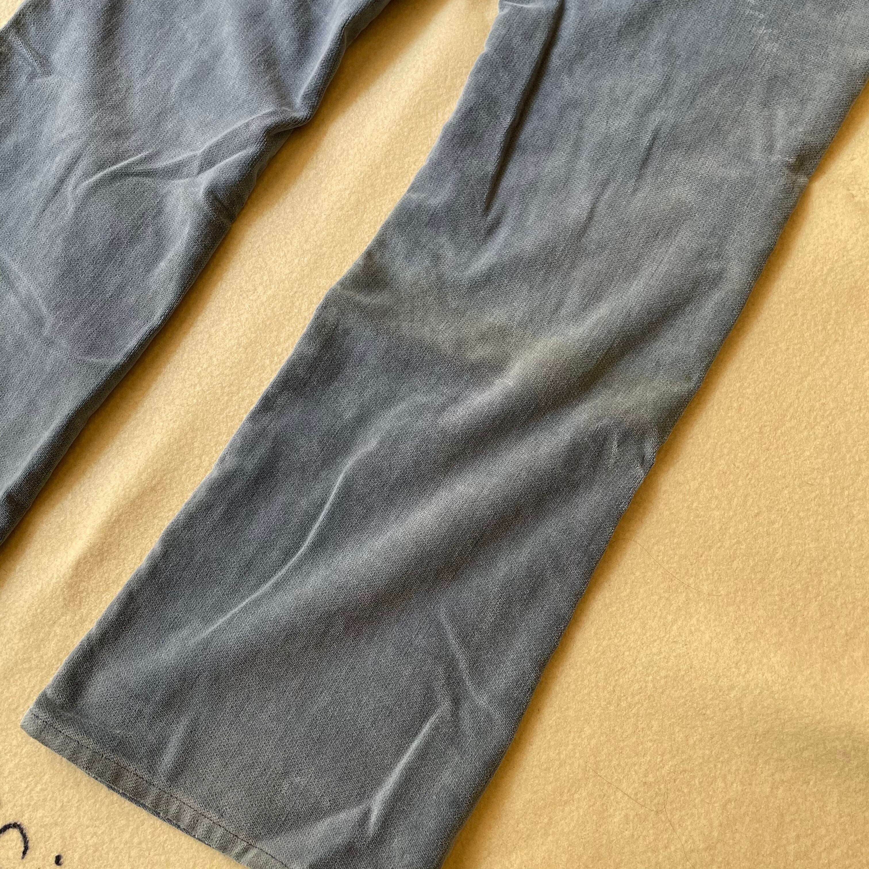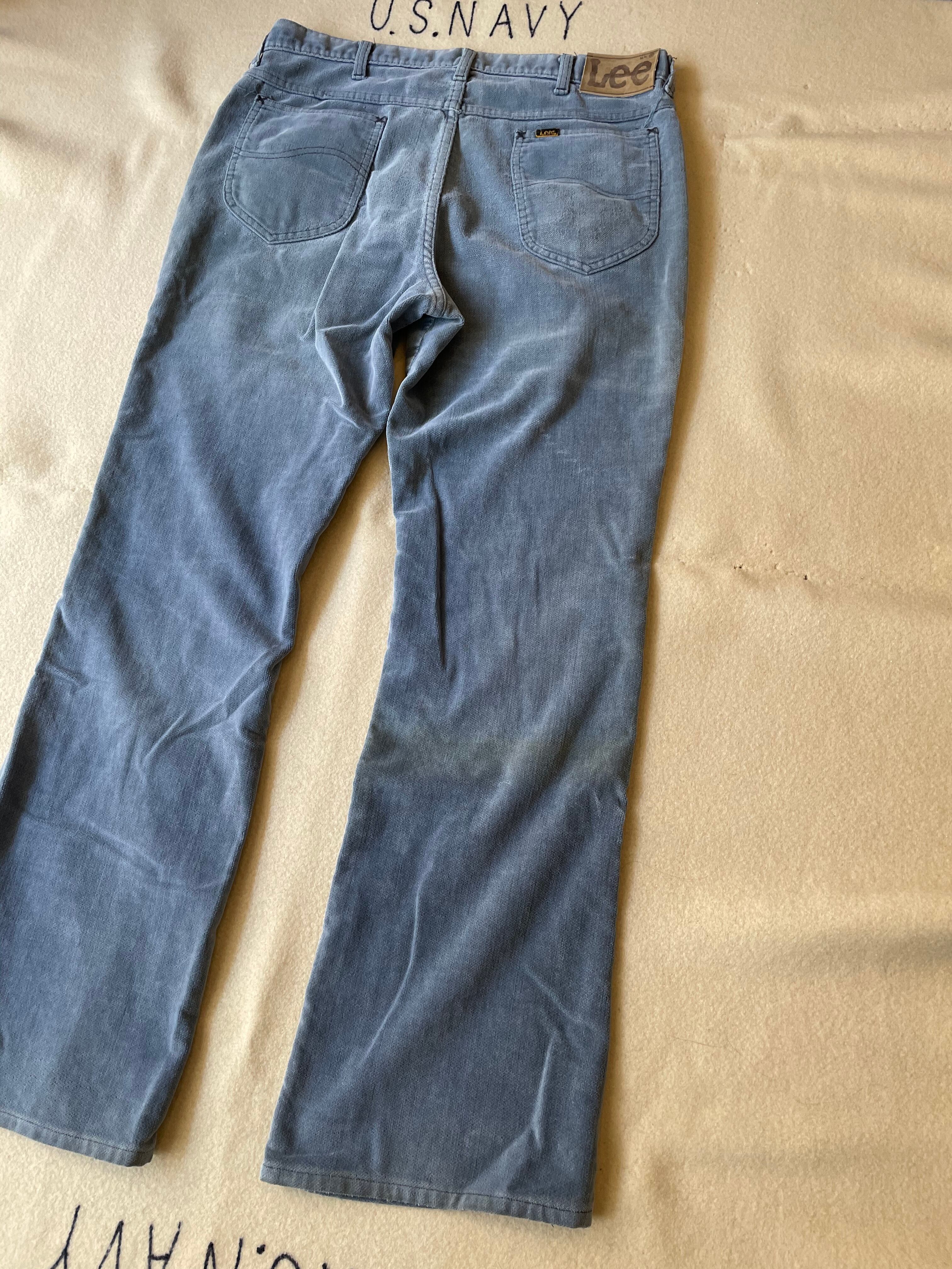 70s頃のLee ベロアパンツ。薄めのブルーカラー。破れ等ないですがフロント、バックに若干の焼けあり。