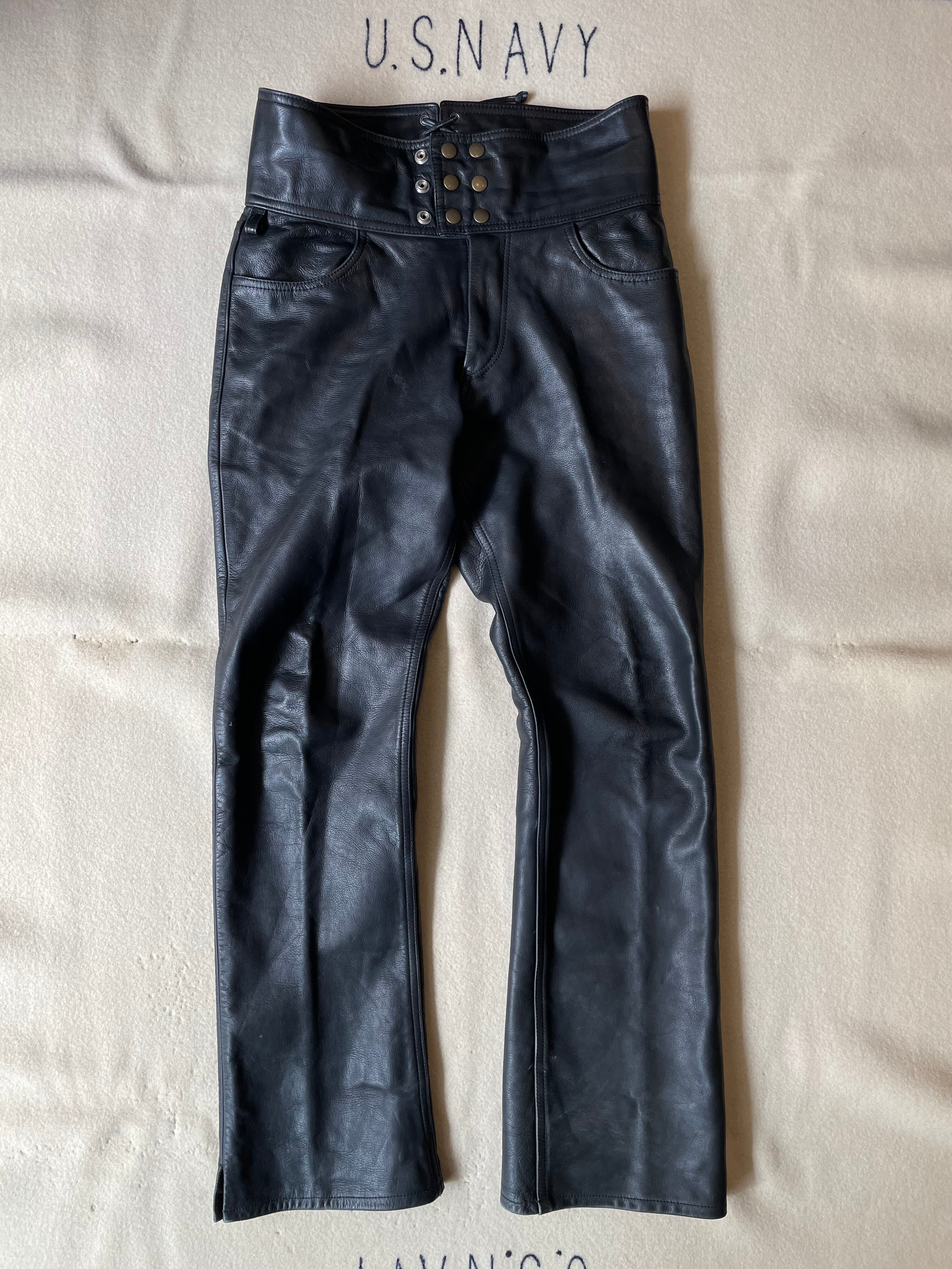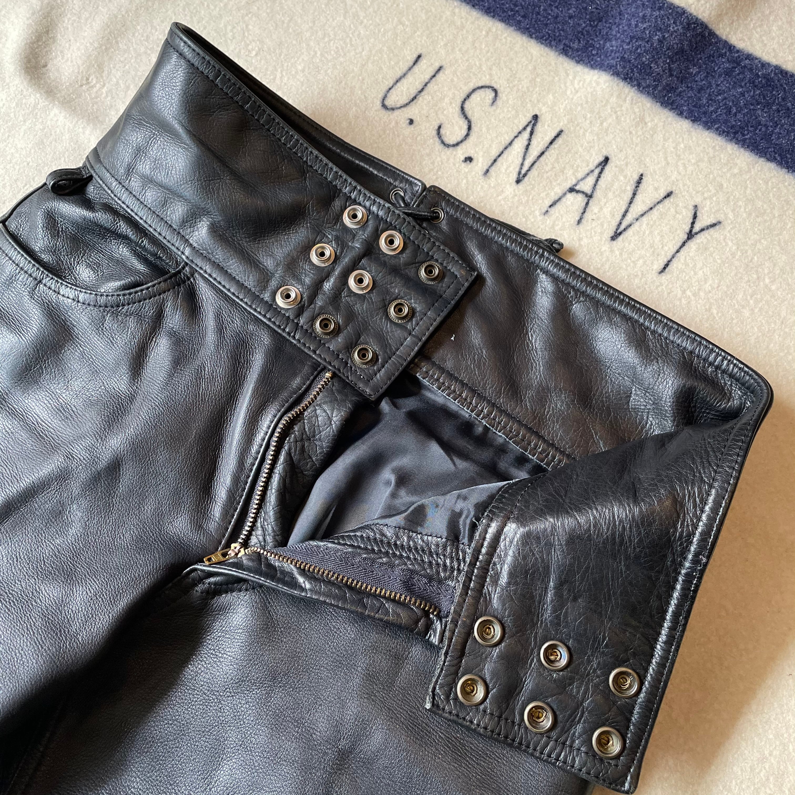 80s-90s頃の国産ヴィンテージ。MOON FACEというブランドのバイク用に仕様されていたレザーパンツ。