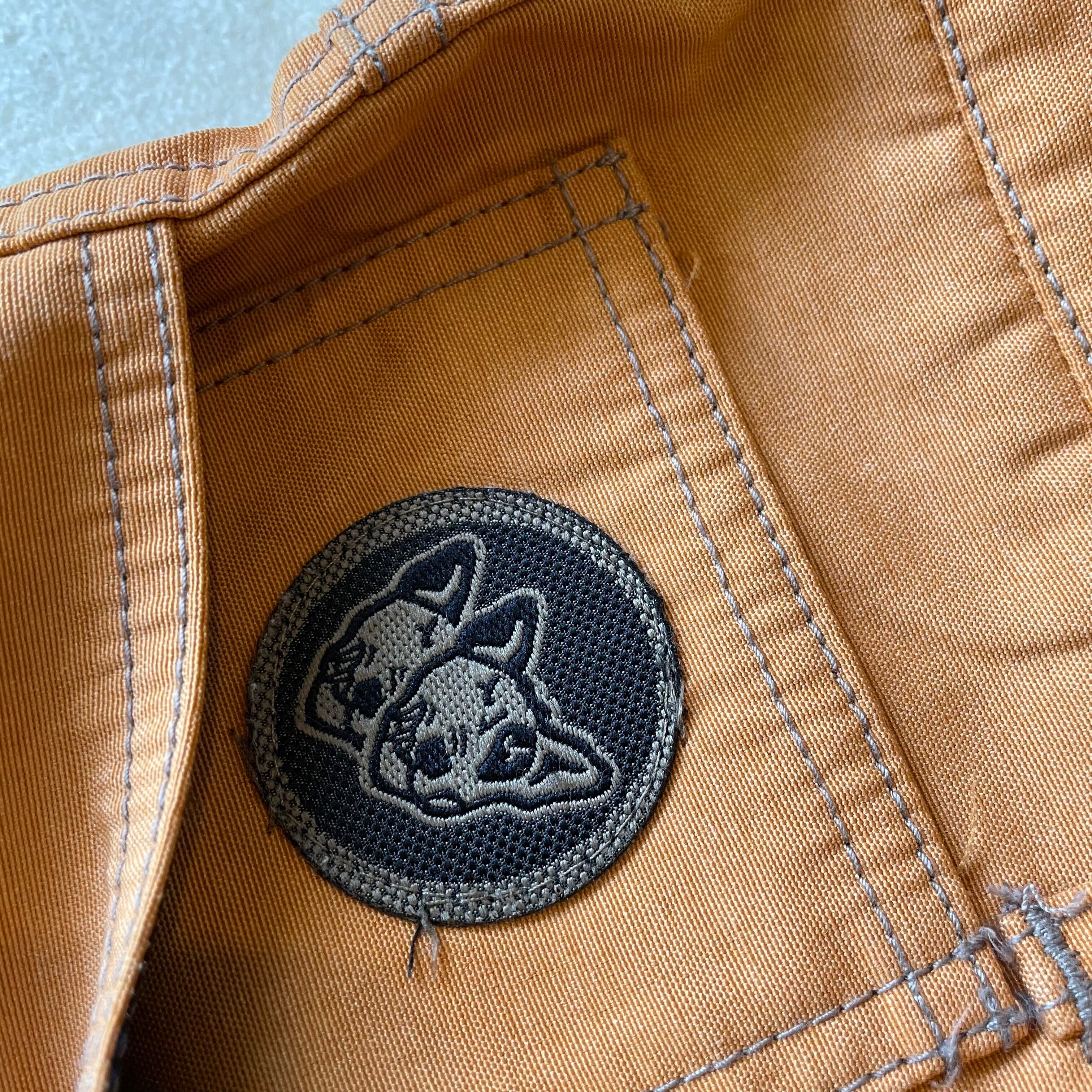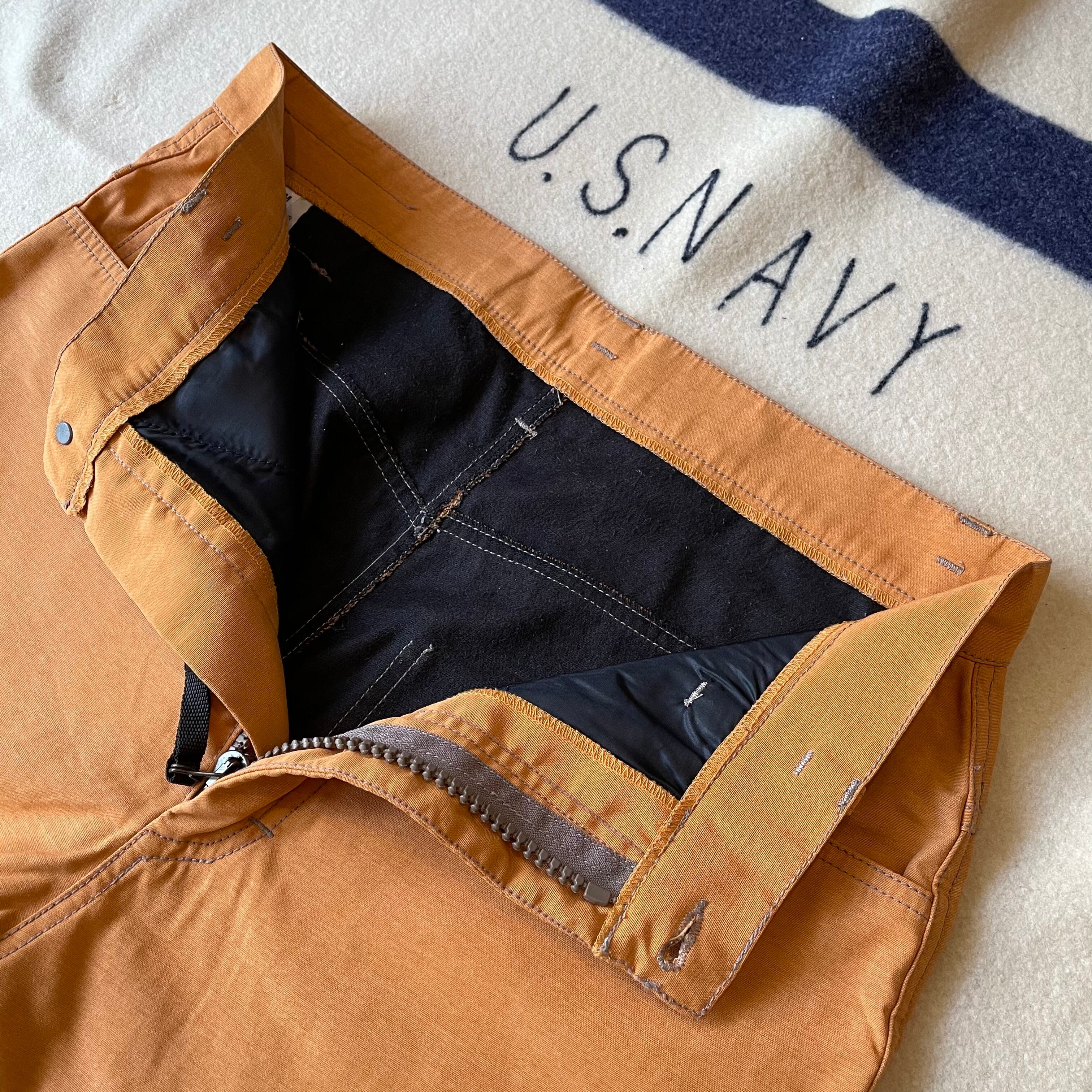 フランス語表記があることからユーロ圏のものと思われます。90s頃のバギーパンツ。シェルはコットン×ポリでナイロンパンツを分厚くしたような珍しいデザイン。大分ストリートを意識して作られたアイテムかと思います。オレンジのカラーリングもgoodです。