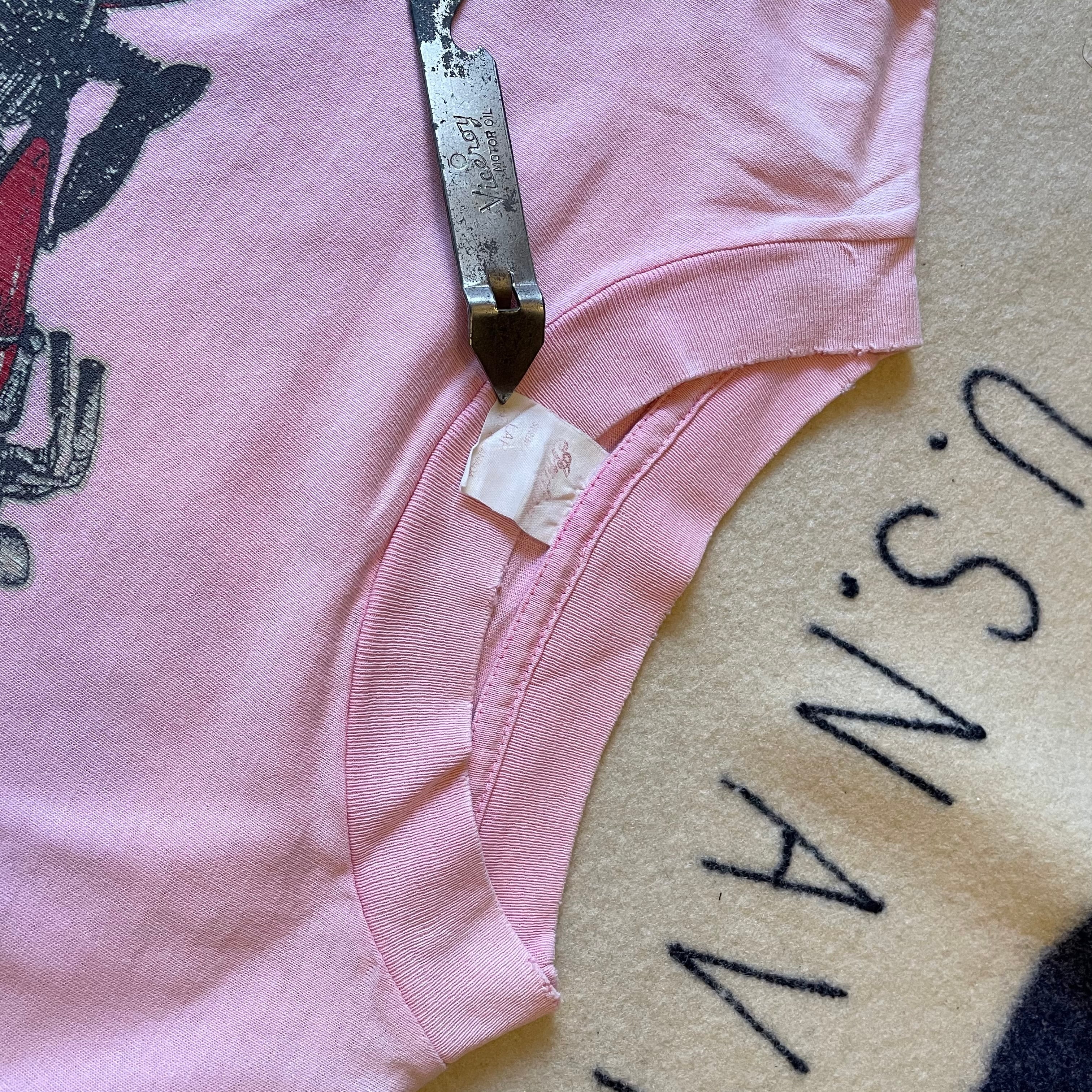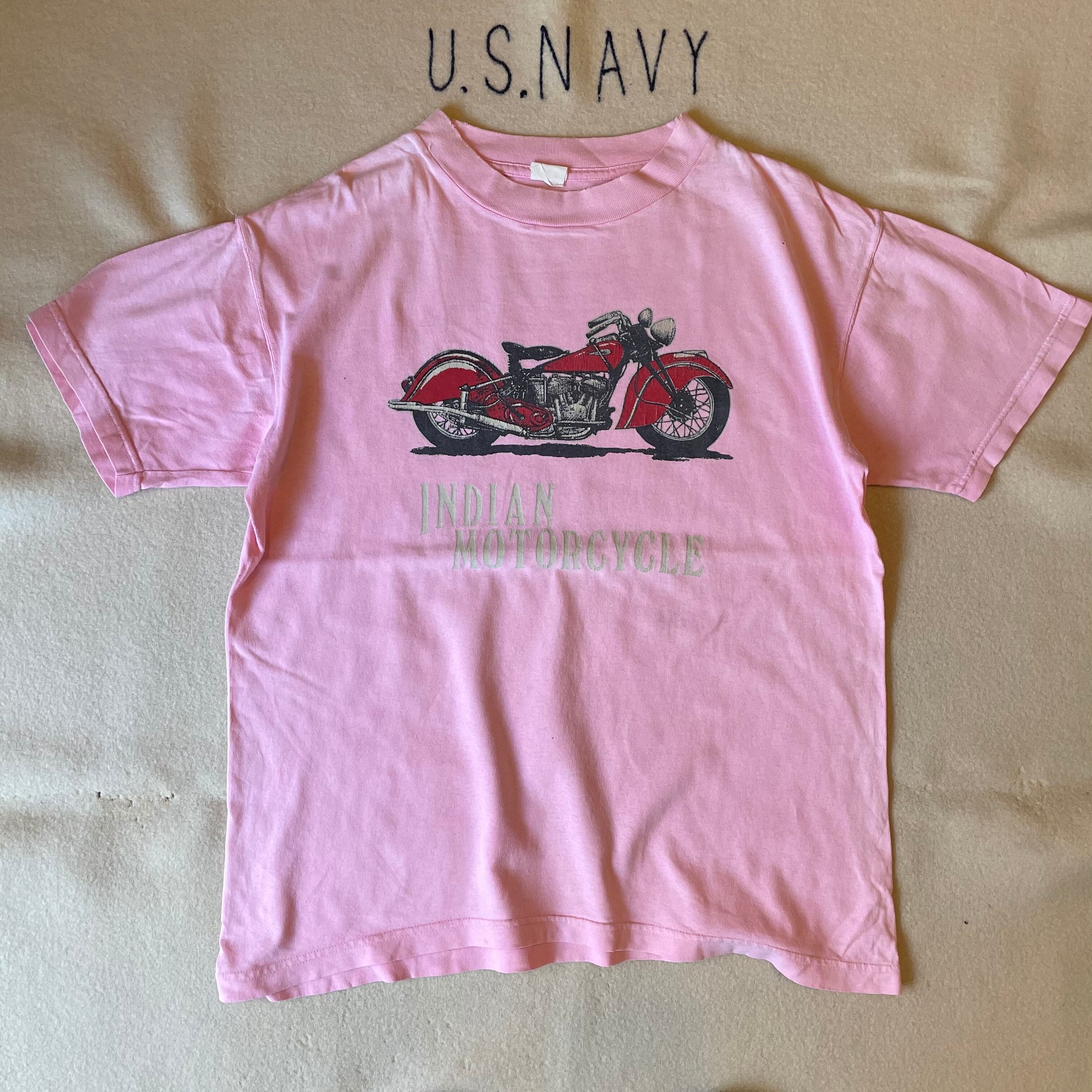 90s頃のINDIAN MOTORCYCLE ヴィンテージT。珍しいピンクカラーのボディ。74sに行われたINDIAN RALLYのTシャツを復刻したものと思われます。
