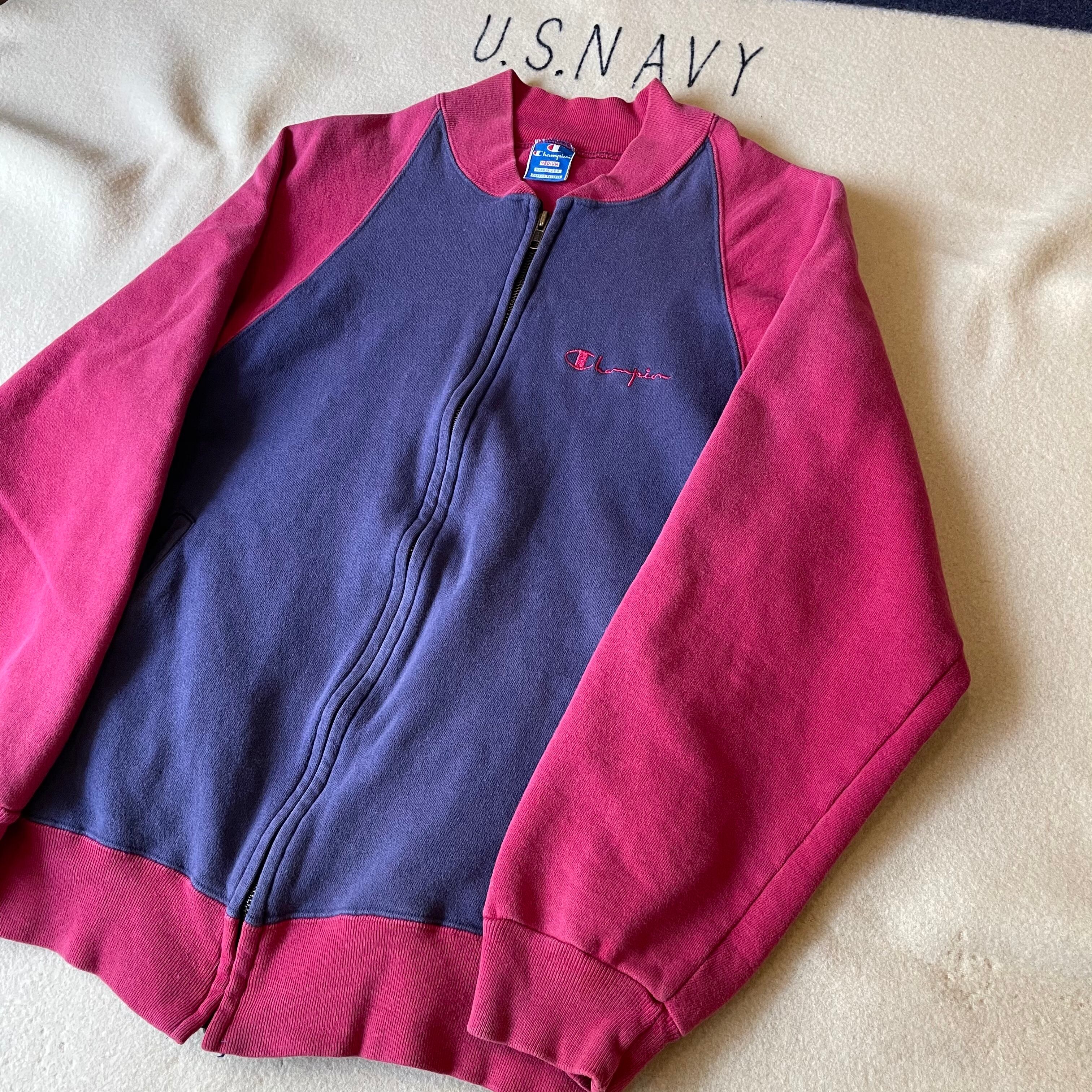 90s頃のchampion。フルジップのスウェットタイプもそうですがパープル×レッドのカラーリングもレアいです。