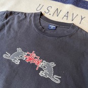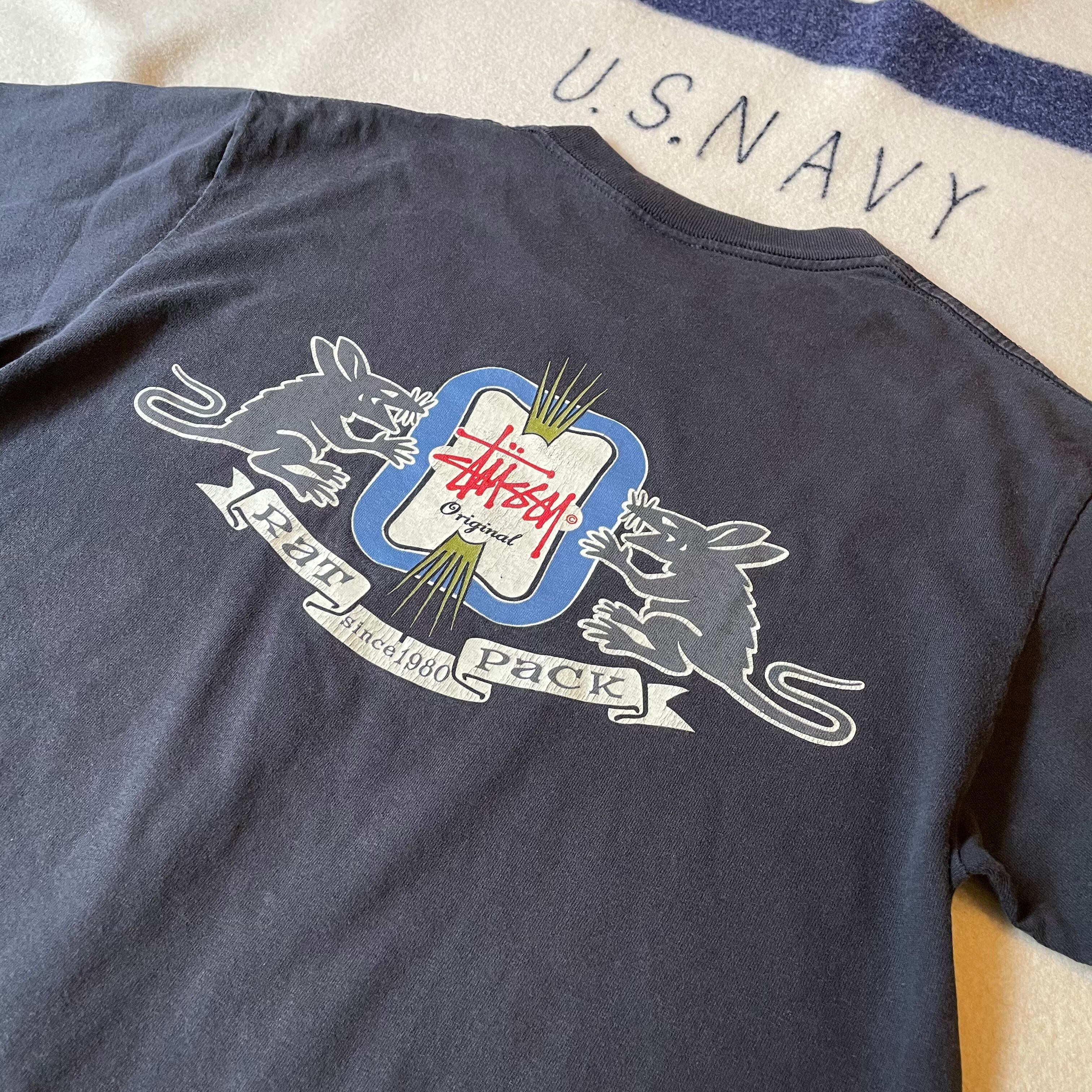 90sのOLD stussy。RAT PACKプリント。かっこいいです。ヴィンテージ特有の使用感ありますが古着慣れされていれば問題無く着用可能と思います。