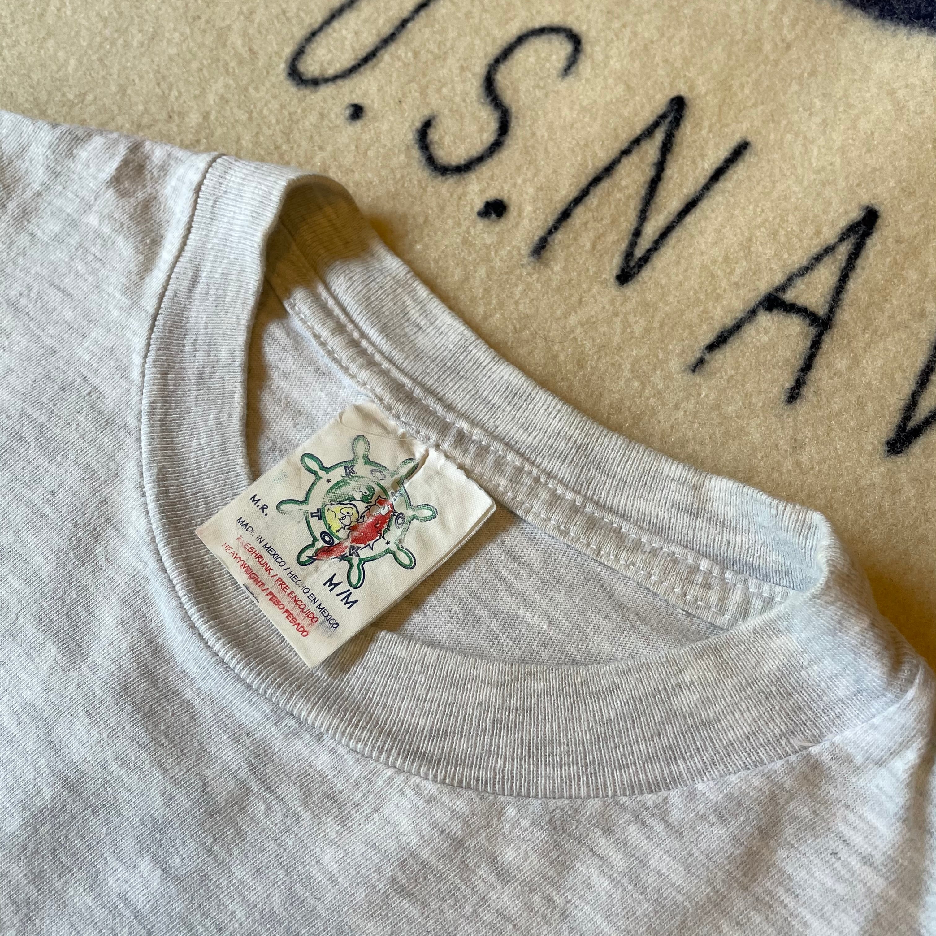90s頃のサメT。探すと結構見つからないデザインの良いサメシリーズ。M表記ですがメンズLくらい。goodサイズgoodプリントです。