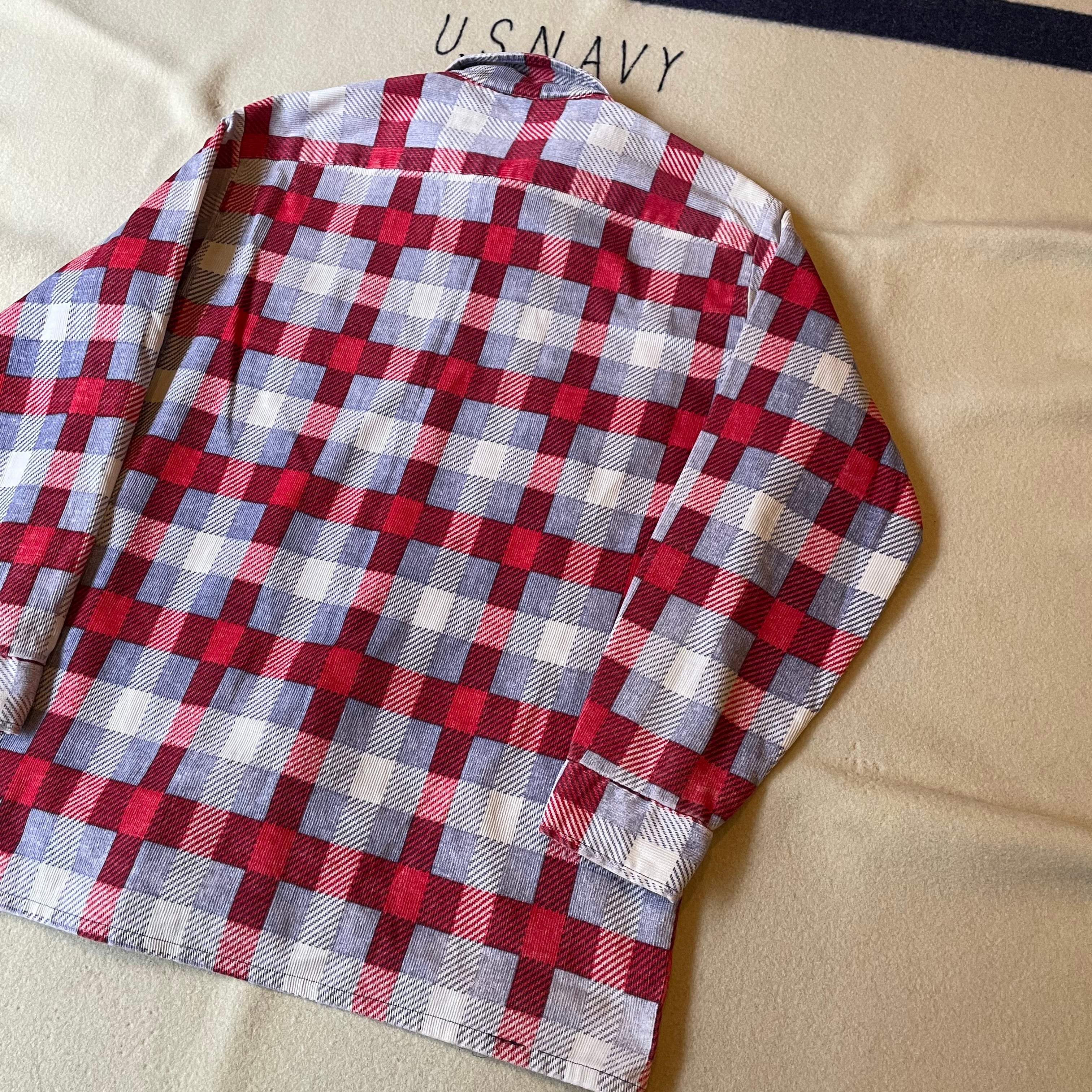 ヴィンテージプリネルでもレアパターンの大きめブロックチェック。襟は70sライクですがシルエットはボックスタイプと中々お目にかかれないヴィンテージピース。60s後期あたりから70sくらいのものと思います。