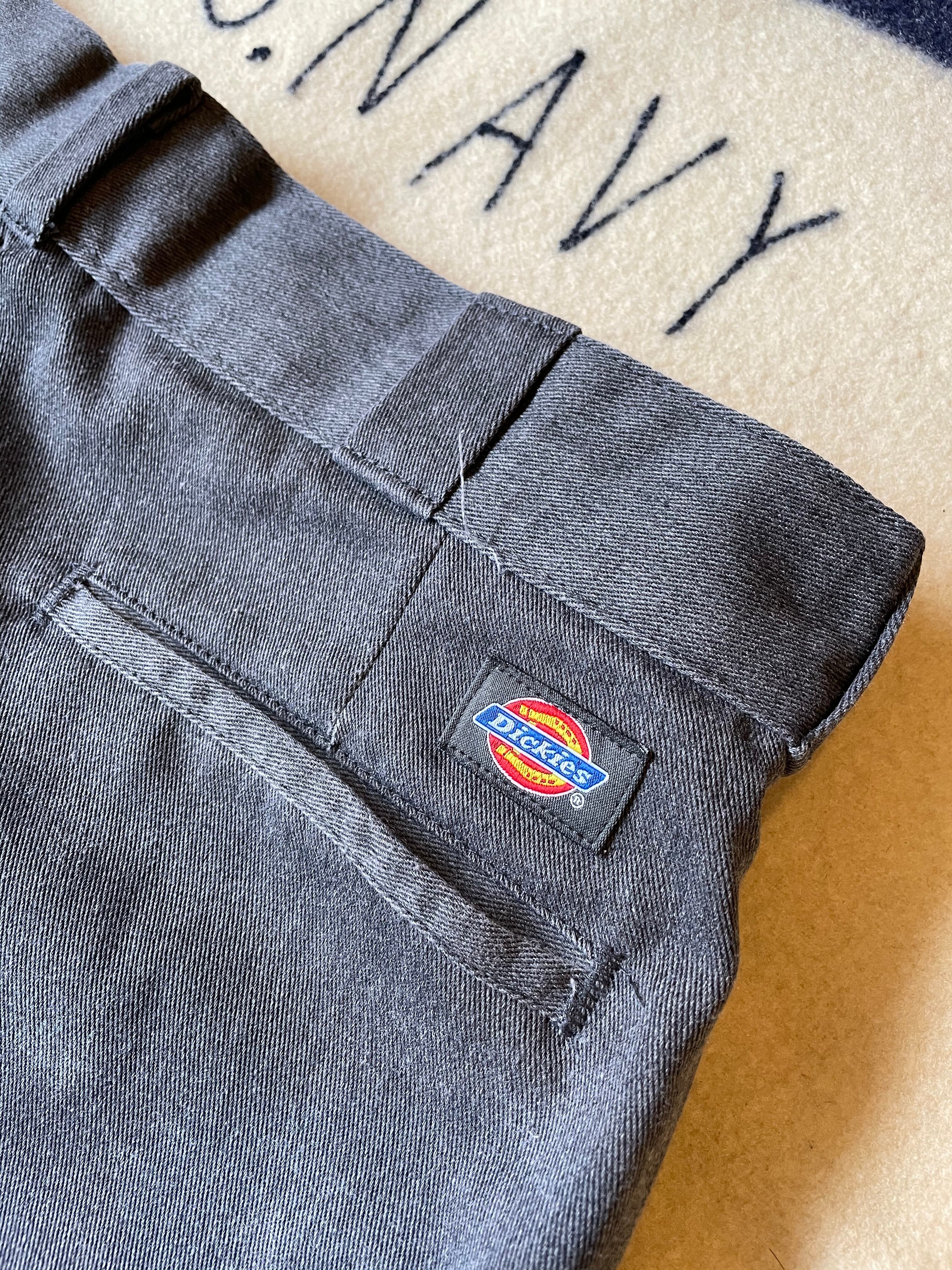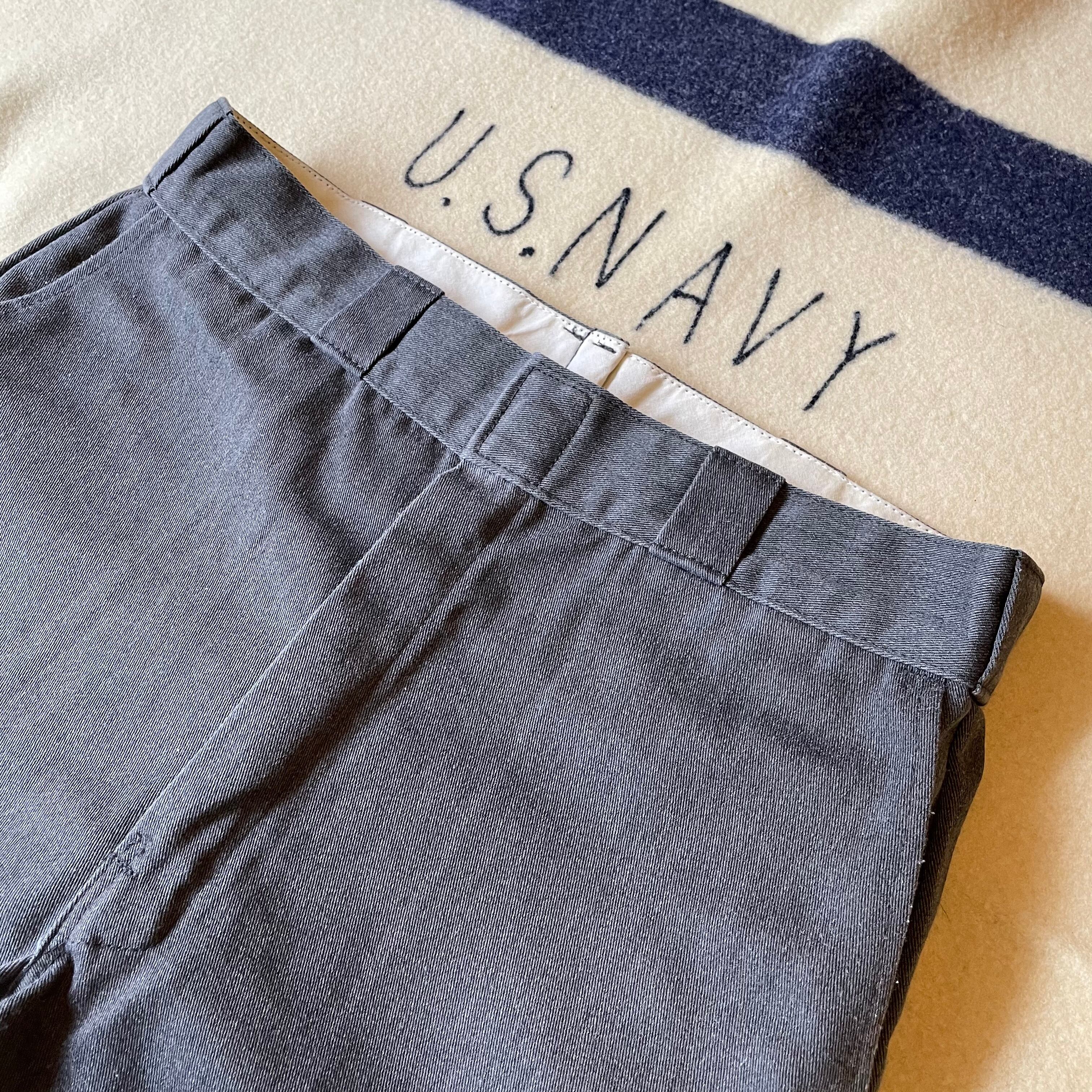 90s頃のDickies874。ウエストの調整ができるように後に縫いがあるOLDタイプです。ジップはTALON。