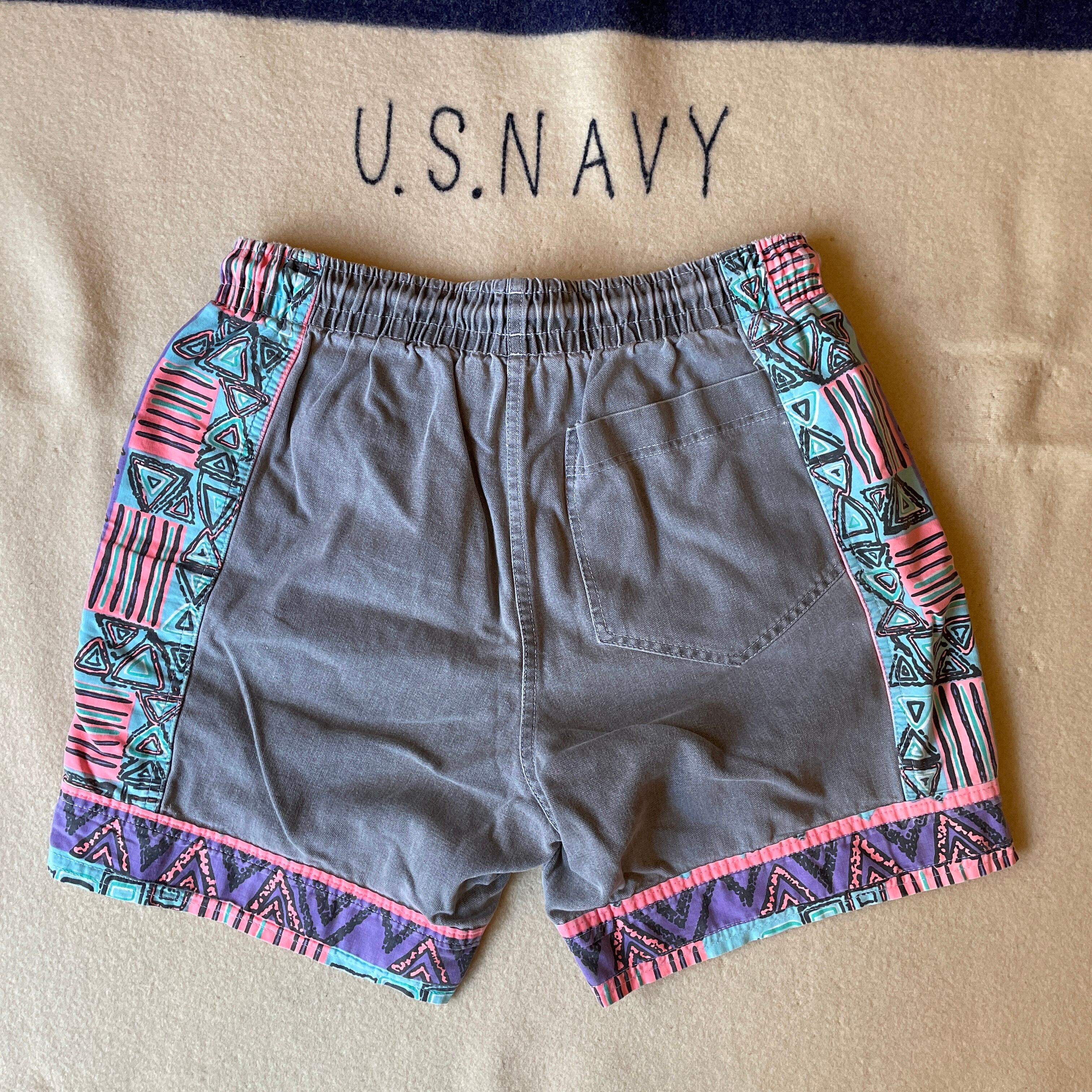 90s頃のオーストリア発MAD MOZZというサーフブランドのショーツ。しっかりめのコットンに90sらしい幾何学プリント。