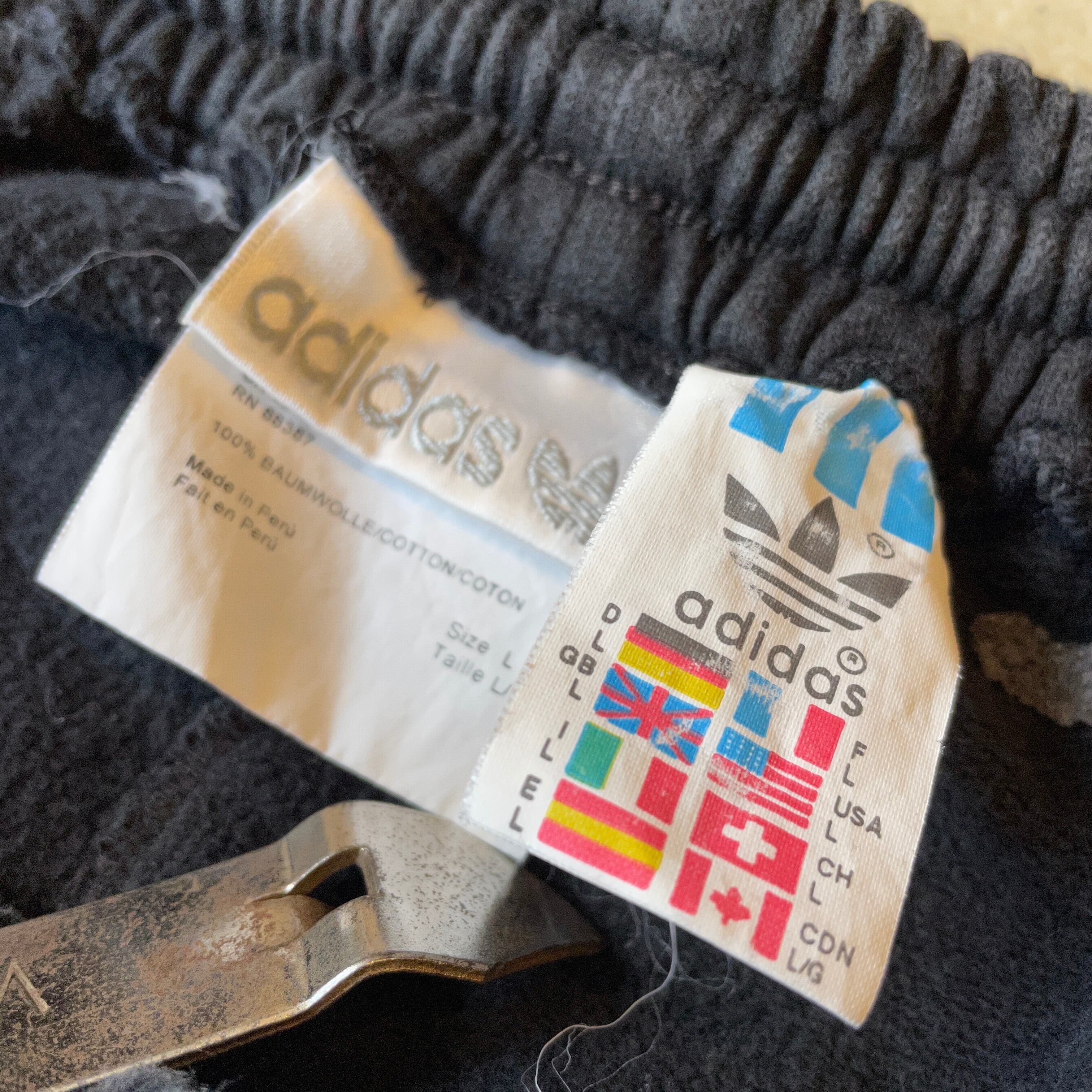 adidasのアイテムの中でも珍しいと思います。スウェット地のバギーショーツ。カラーはブラック、左腿に入るトレフォィルはパープルです。センス良しです。