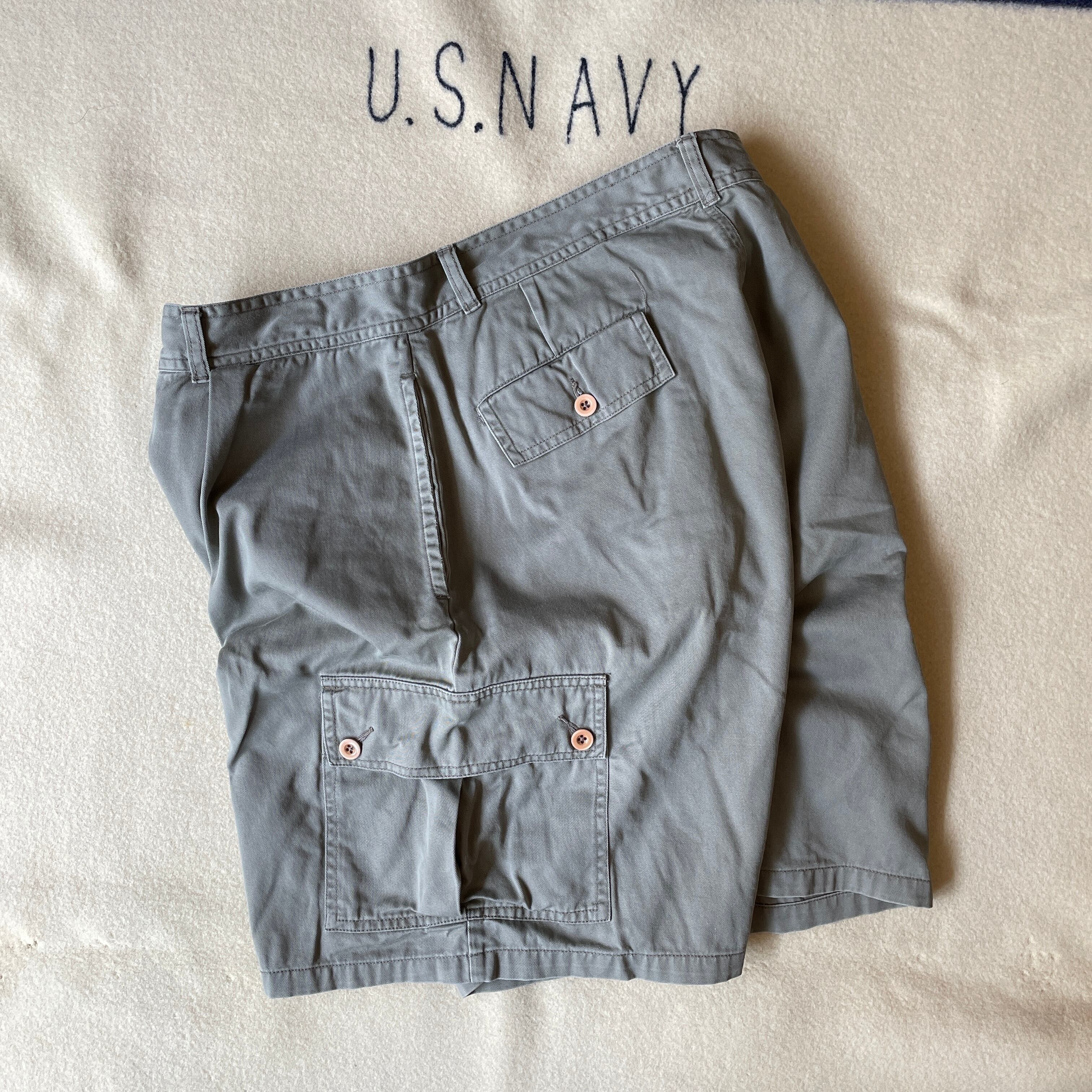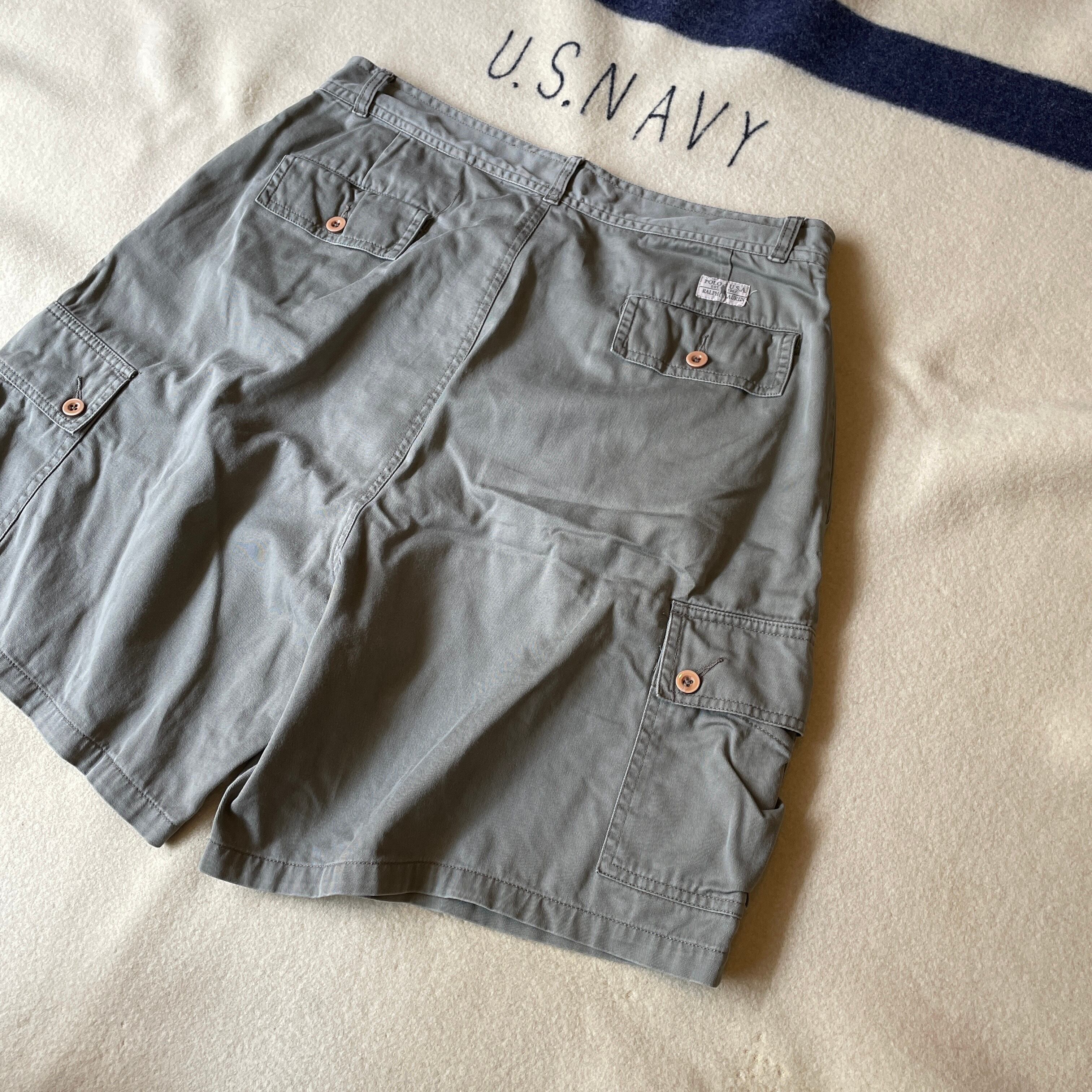 90s頃のPOLO by RALPH LAURENのカーゴショーツ。グレー系の合わせやすいカラー。サイドの大きめポケットがいいアクセントです。ビッグサイズも高ポイント。