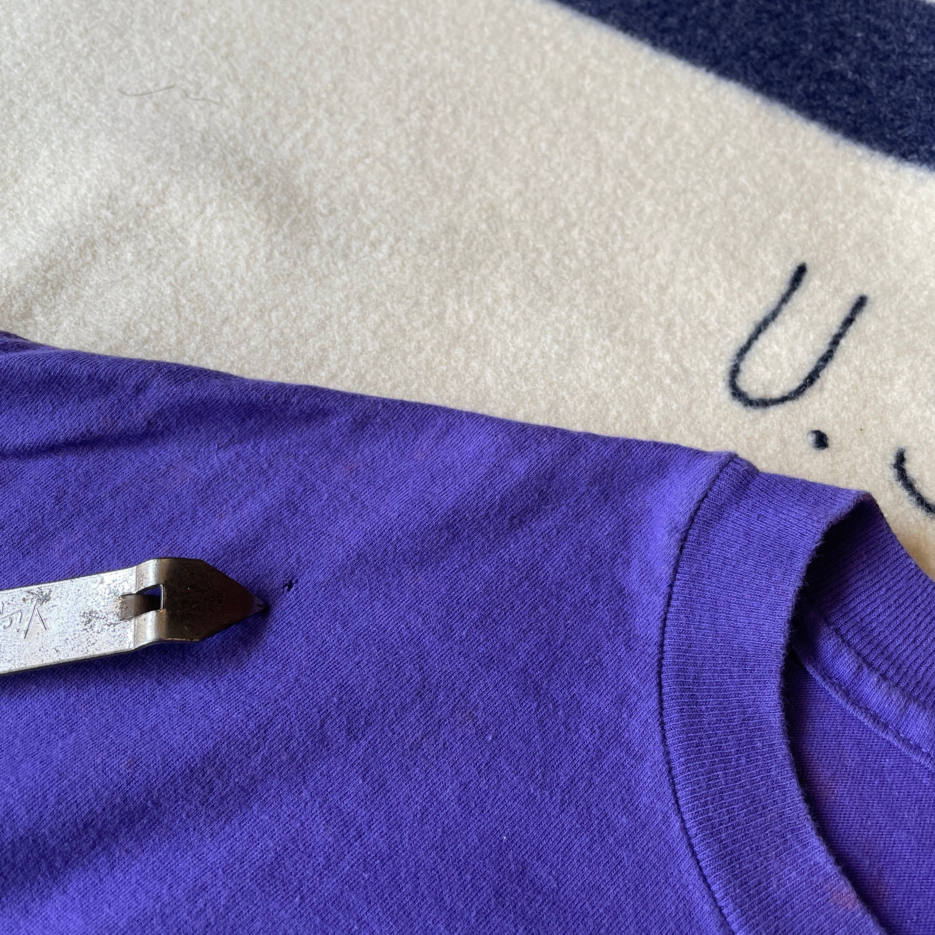 そんなメッセージは抜きとしてかわいいデザインです。全体的にフェイドしてます。ヴィンテージ慣れされていれば問題無く着用可能と思います。
