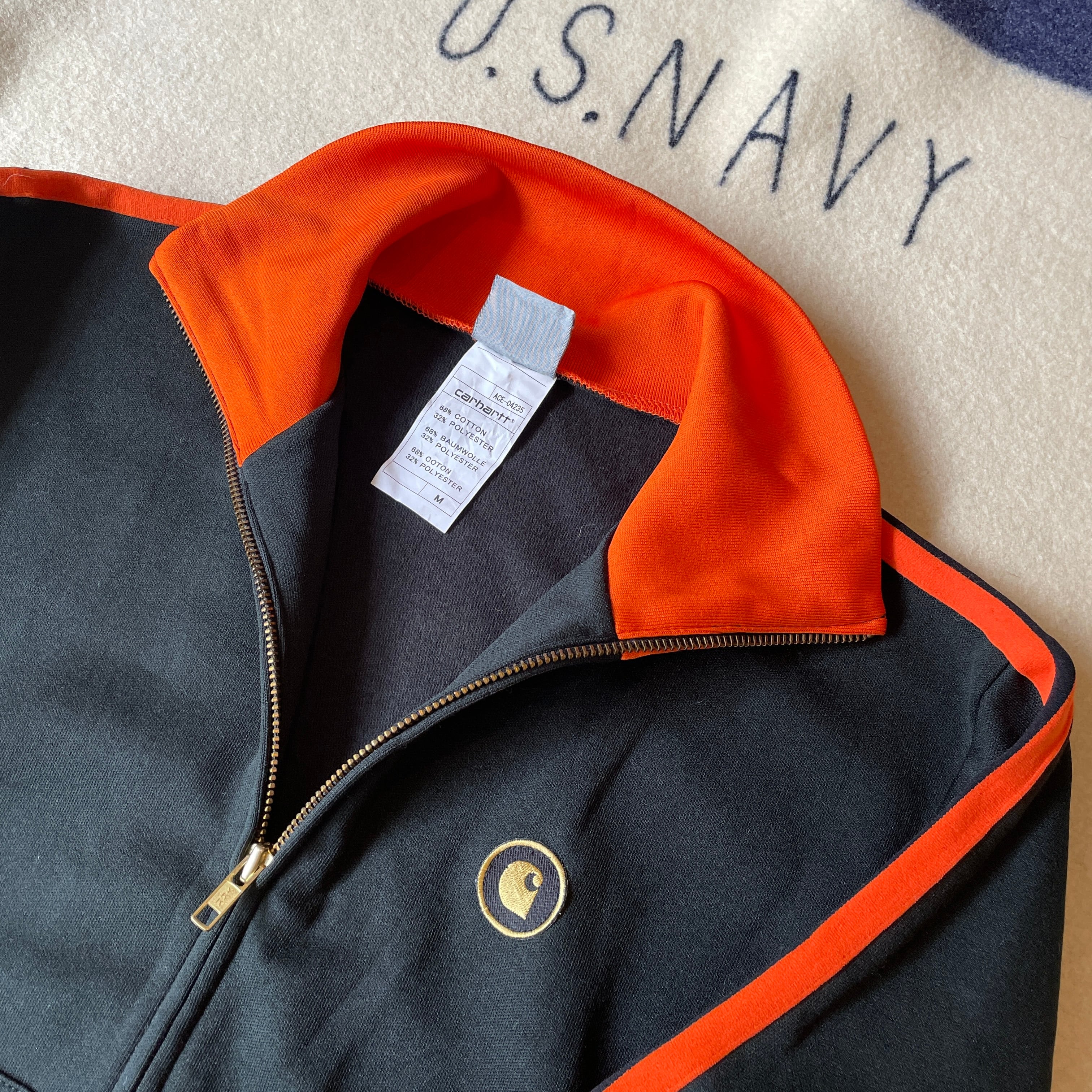 90s後期-00sあたりのcarhartt。珍しいジャージタイプ。ブラック×オレンジのgoodカラーです。使用感は殆ど見られずデッドストックに近い状態と思います。