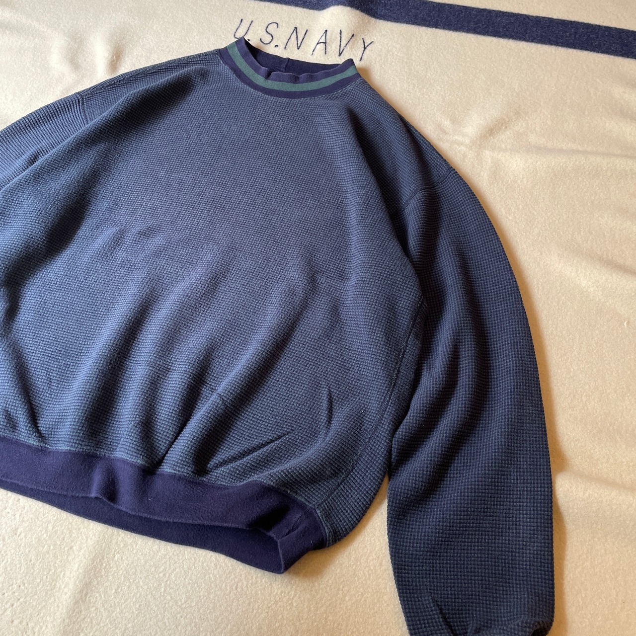 スウェット程厚くないですがTシャツよりは分厚めなおもしろい一着。OLDのLANDS ENDは良アイテム多しです。