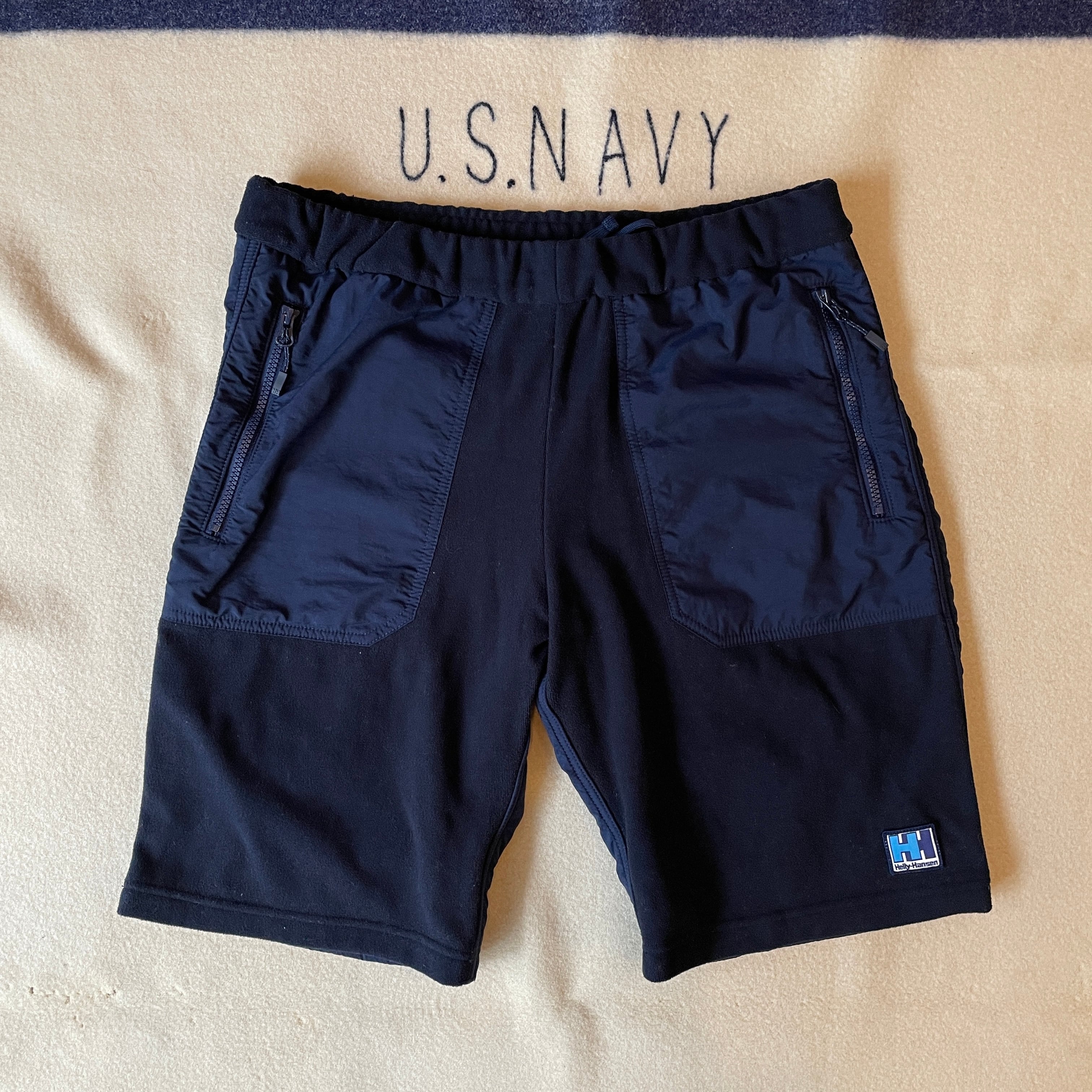 00s以降のやや古いHELLY HANSENのショーツ。フロントは起毛したパイル地、バックとフロントのポケットはナイロンです。カラーは濃いネイビー。