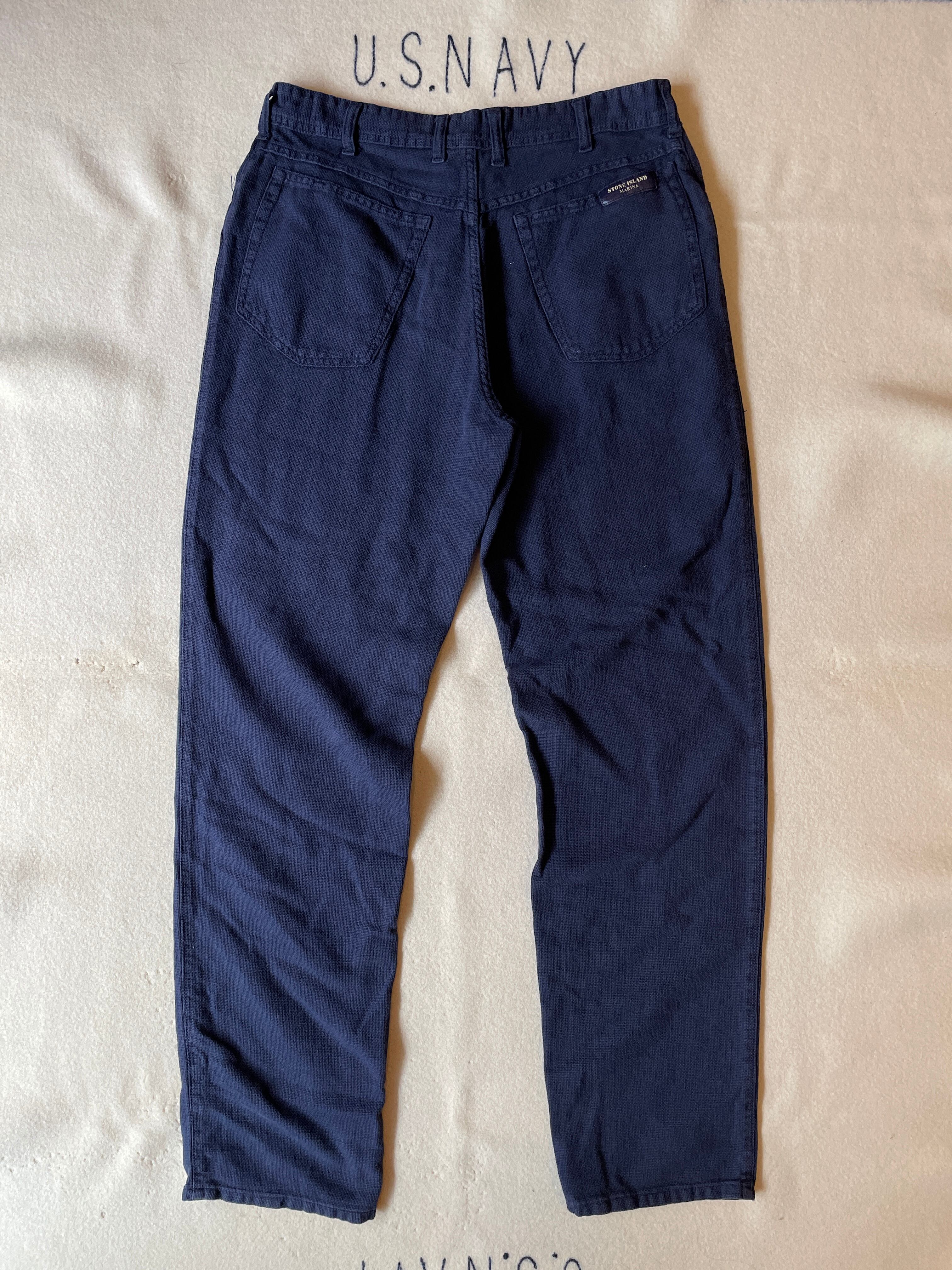 ネイビーカラーに柔らかいコットン地、ちょうど良い太さのゆったりシルエット。ロールアップしてコインローファーとかカッコいいです。