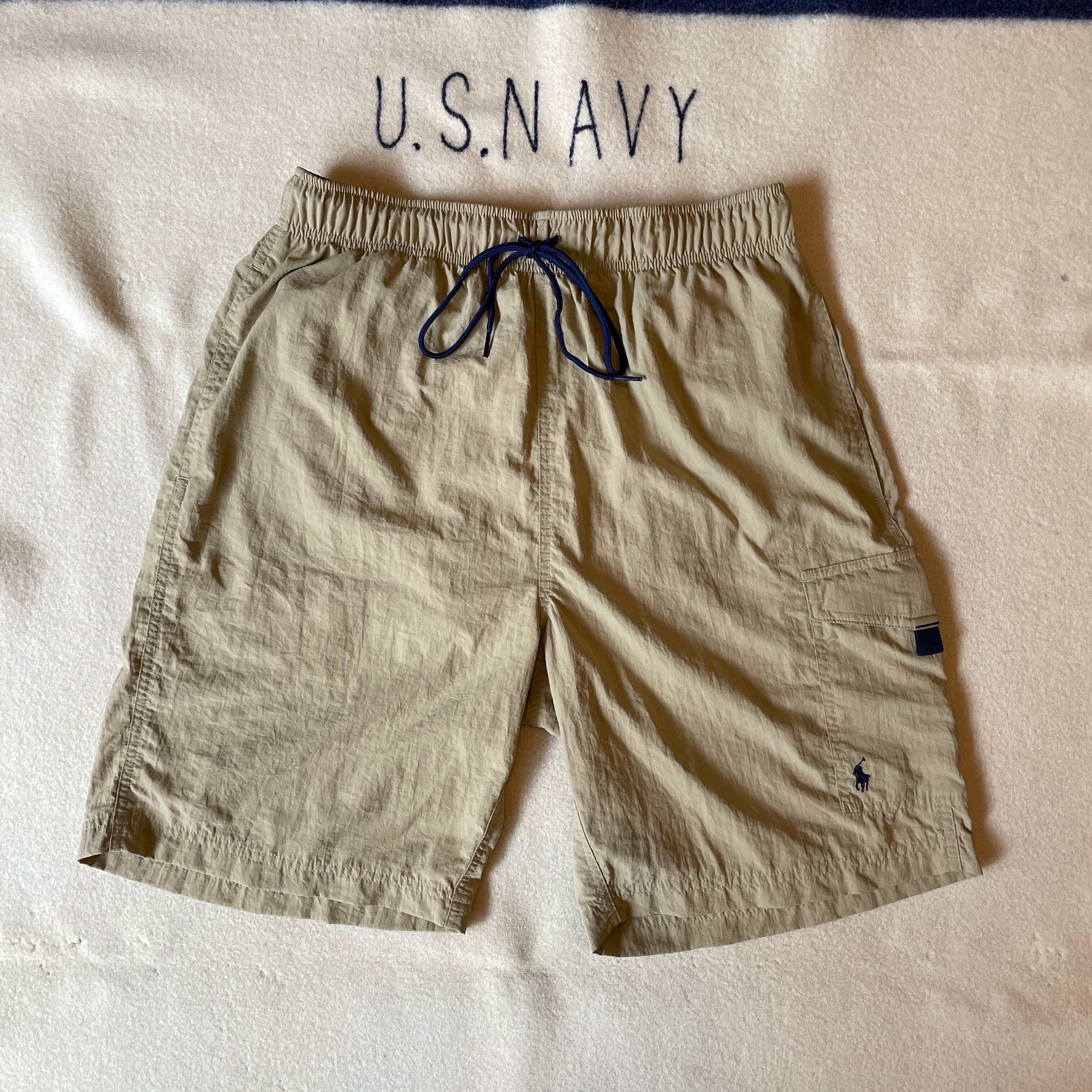 90s頃のOLD POLO RALPH LAUREN。右サイド、バック側にポケットがありタウンユースでも使いやすいスイムショーツかと思います。