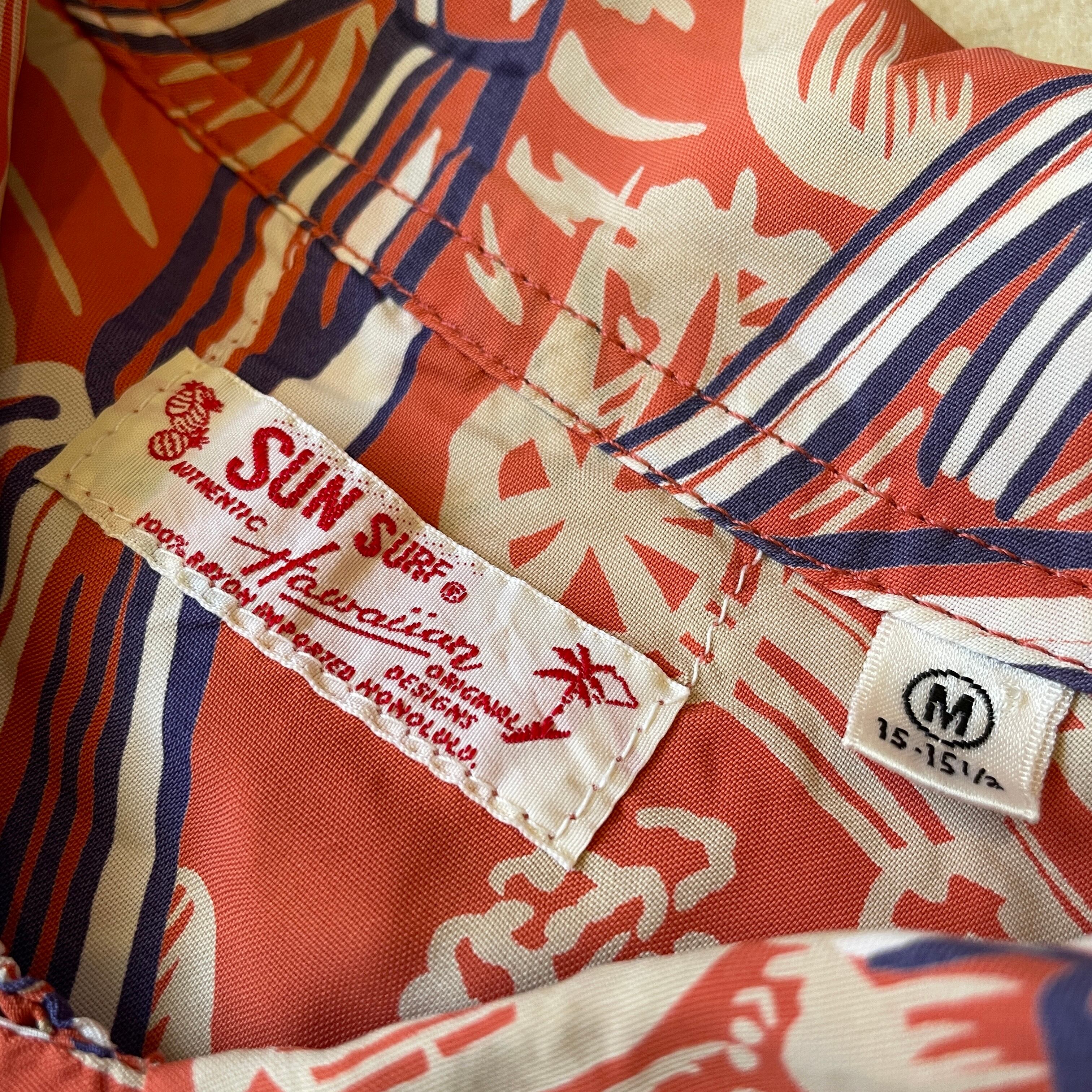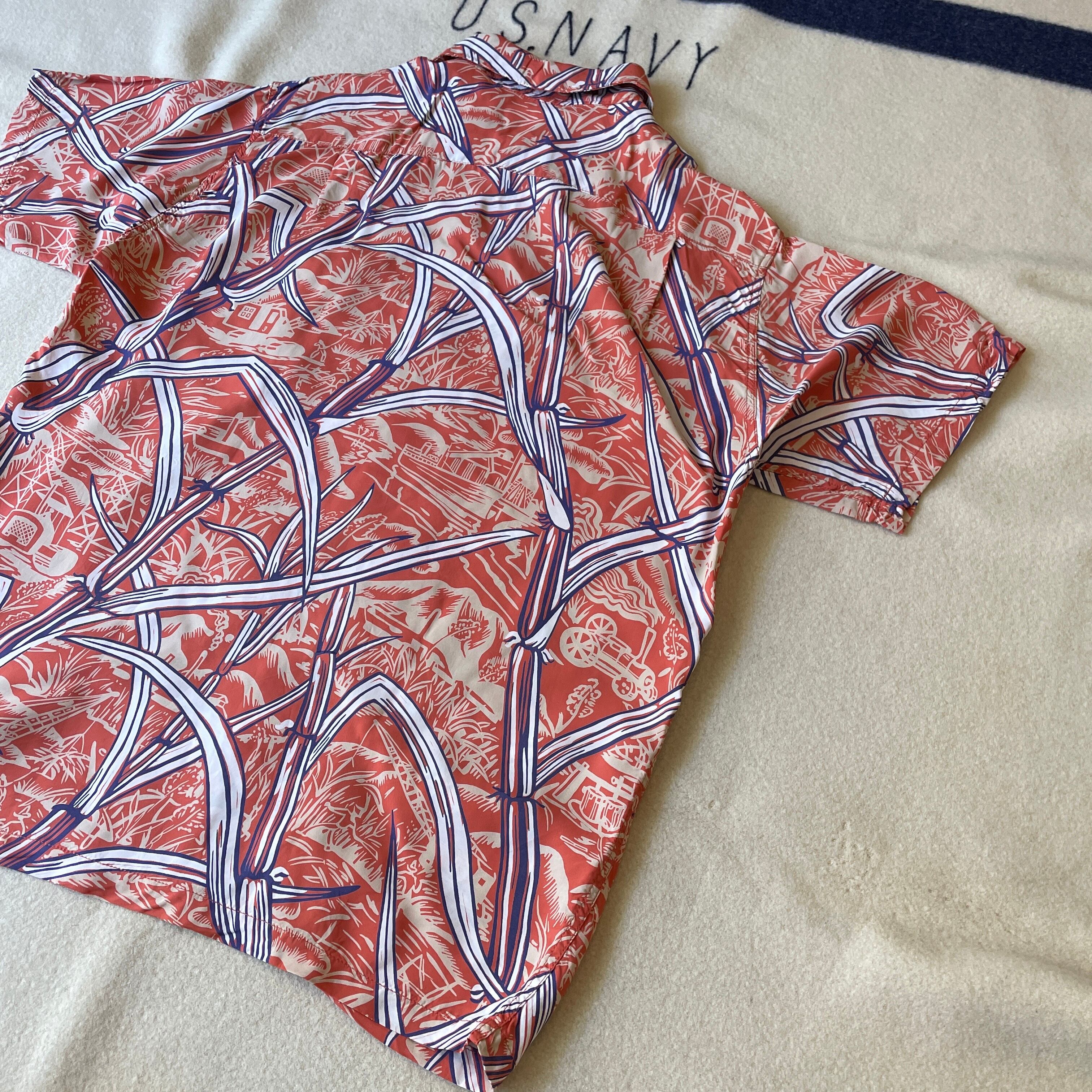SUNSURFのレーヨンアロハシャツ。サトウキビの総柄。珍しい柄かと思います。殆ど着用感見られず美品です。
