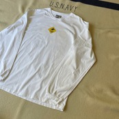 90s後期-00sあたりのヴィンテージL/STシャツ。ホワイトのロンTは一枚で着回しのきく一着です。フロント裾口あたりに若干の汚れあり。古着慣れされていれば問題無く着用可能と思います。