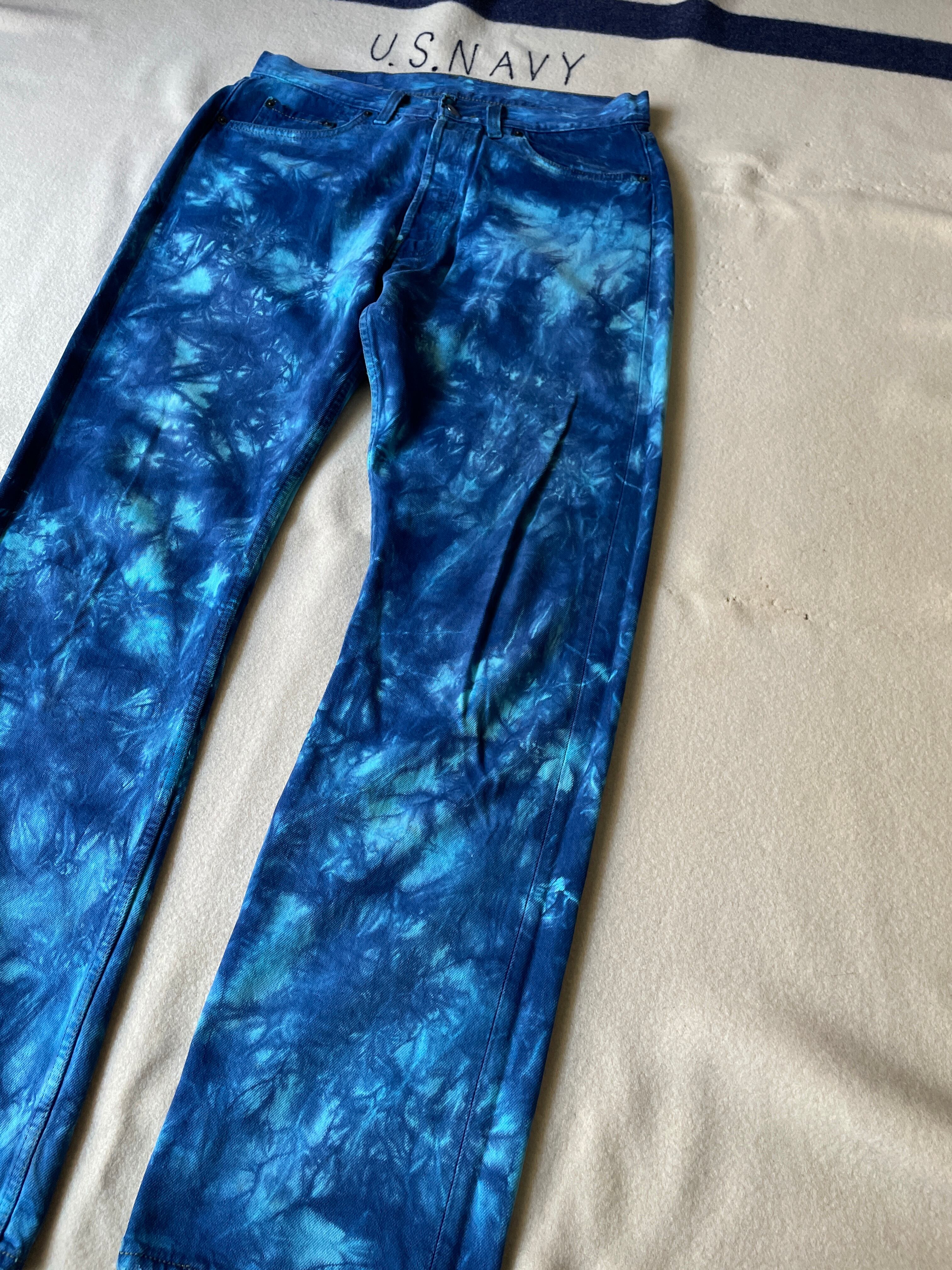 98s Levi’s501。タイダイで後染めされた珍しいパターン。染めてるので目立ちませんがバック側若干の汚れあり。リーバイス最後のUSA製。