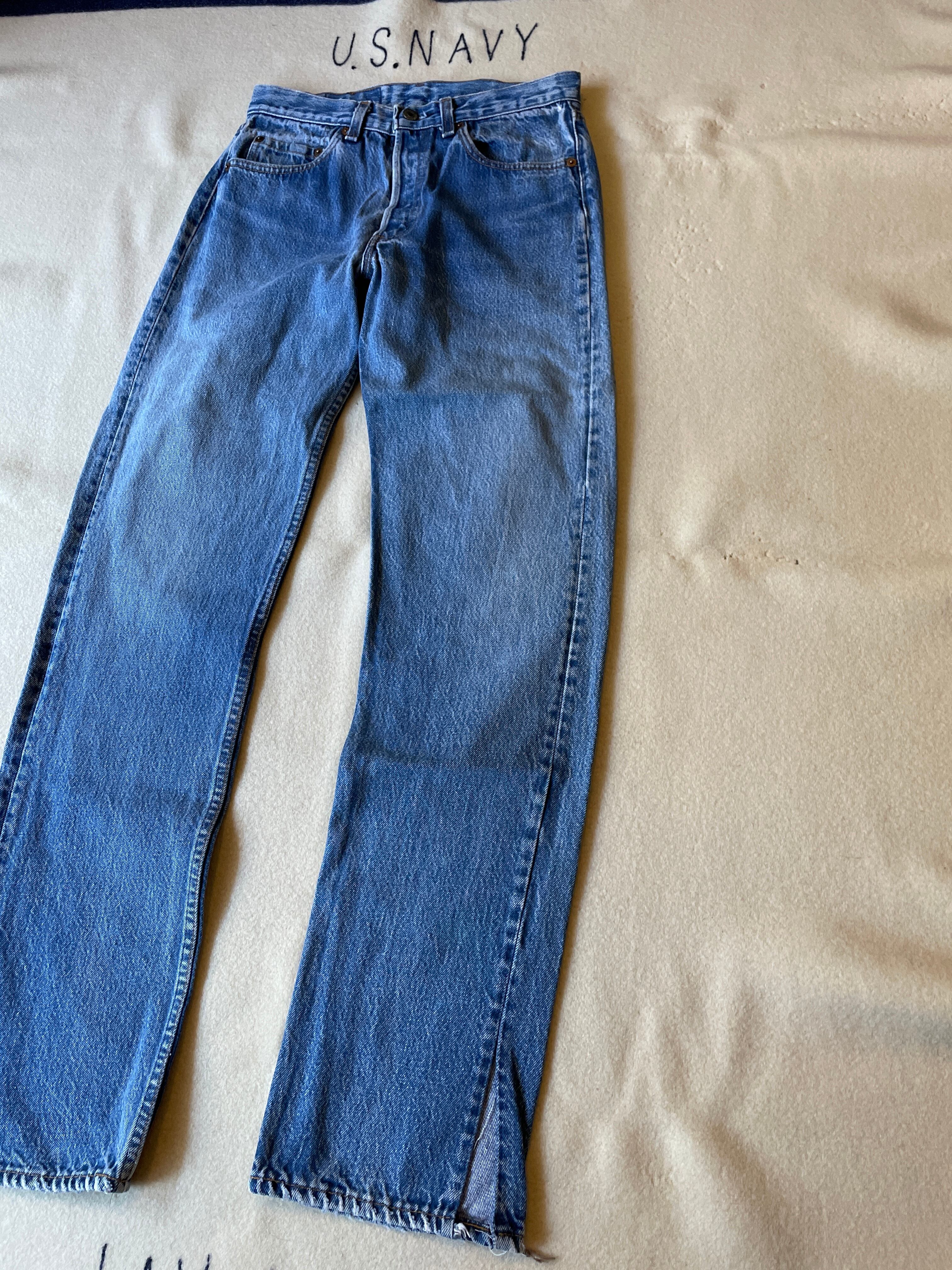 裾口のスリット加工でブーツカット的なシルエットになるので501とはまた違った雰囲気で楽しめるかと思います。赤耳の次あたりのモデル。ネクストヴィンテージです。