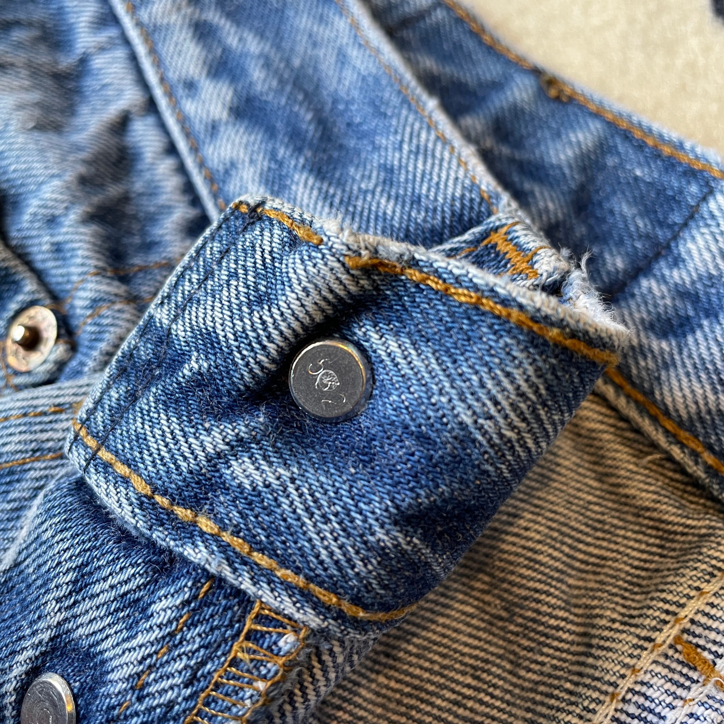 80sあたりの紙パッチ部にcare instruction〜と入るいわゆるCARE入り。オリジナルレングス、裾口はチェーンステッチ。