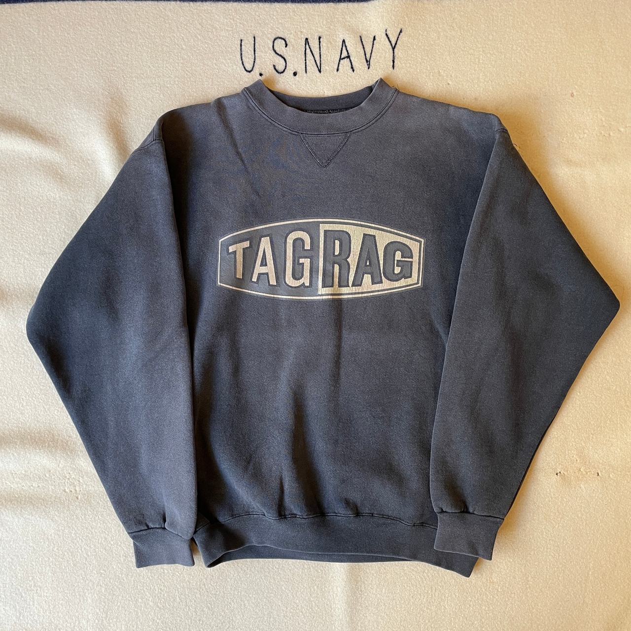 90s頃のストリートブランドTAGRAGのヴィンテージスウェット。カラーはグレー。このブランド、アイテム自体相当少ないです。