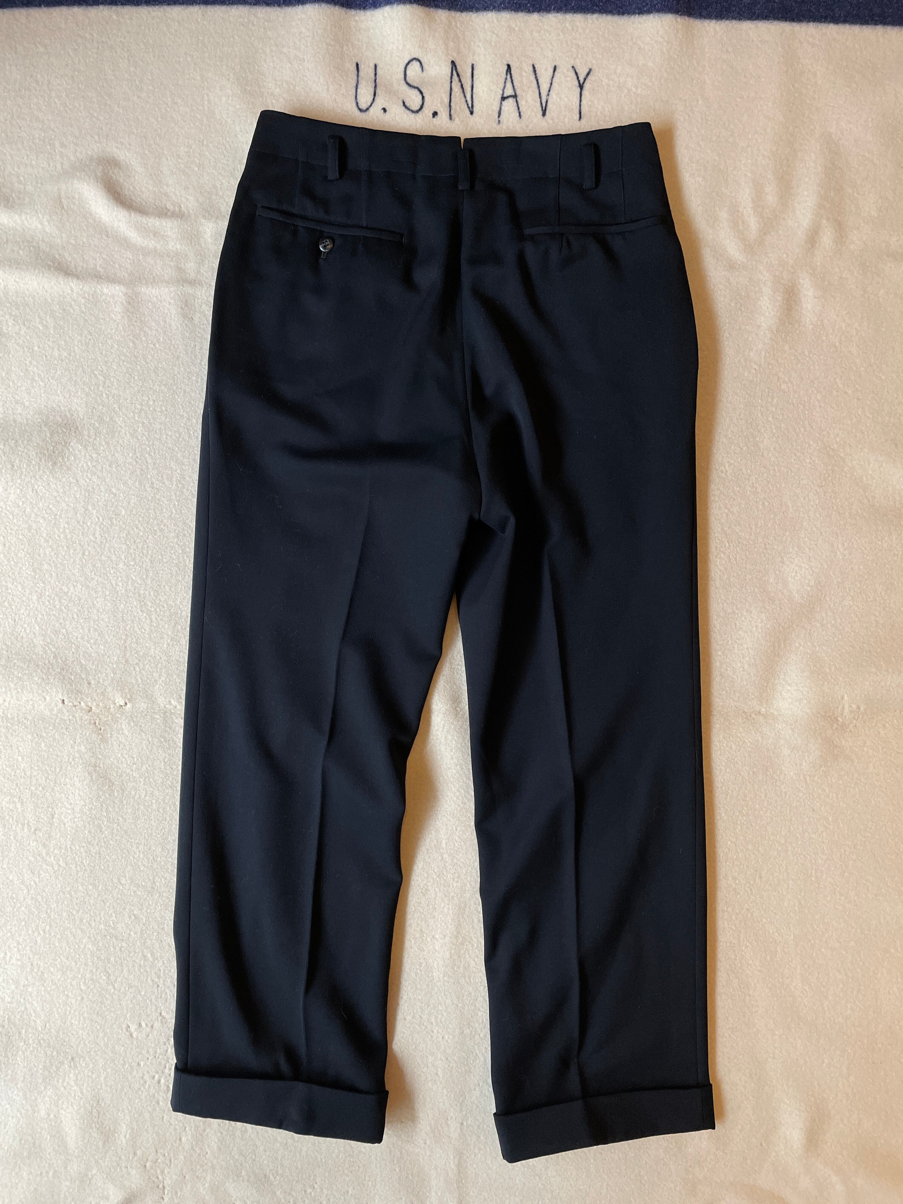 60s-70sあたりのオーダーメイドで仕立てられたヴィンテージスラックス。ヨウジヤマモトやギャルソンのOLDモデルのスラックスでも同デザインで見かけます。