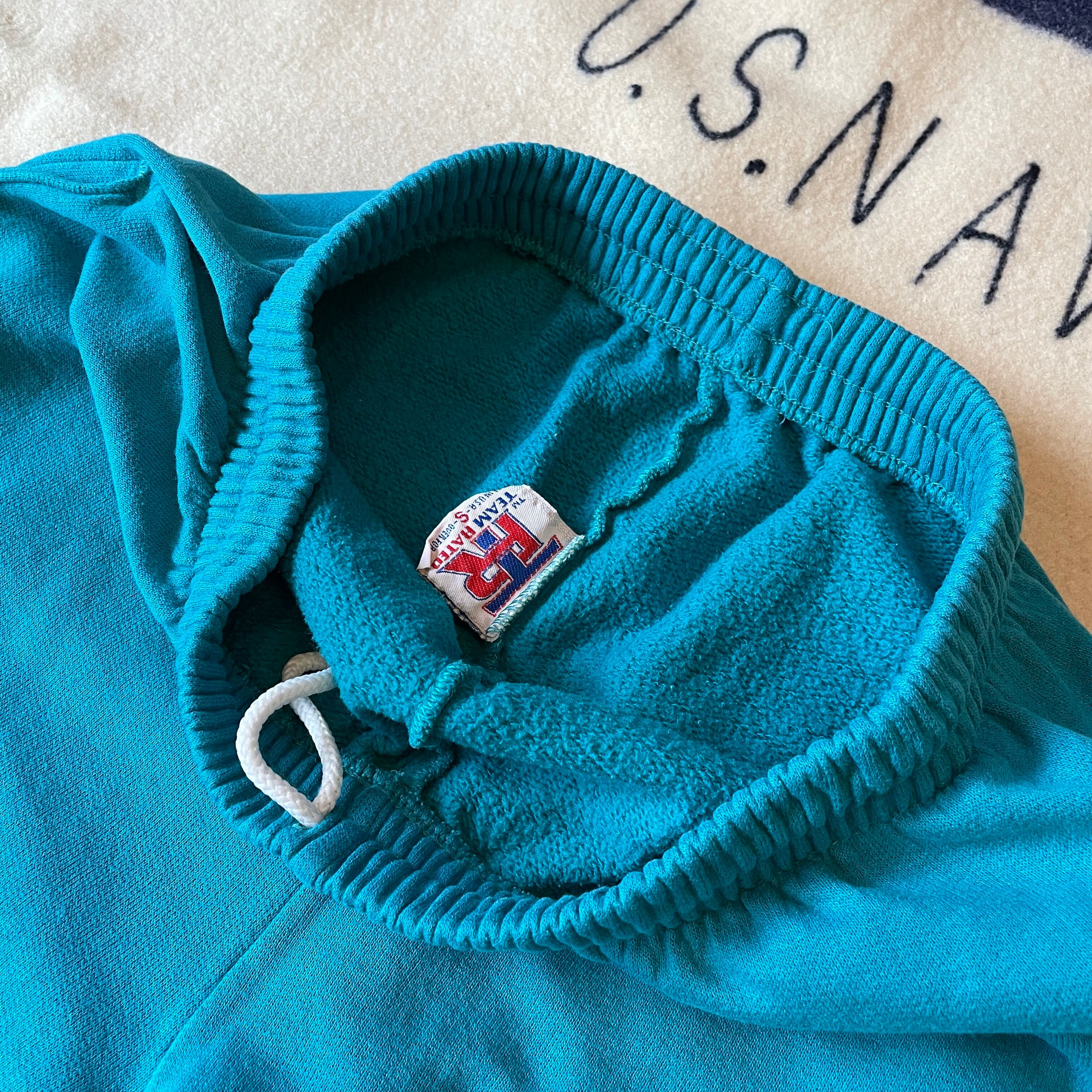93sコピーライト入りプロホッケーチーム、サンノゼシャークスのスウェットパンツ。チームカラーのターコイズブルー。いい色味です。