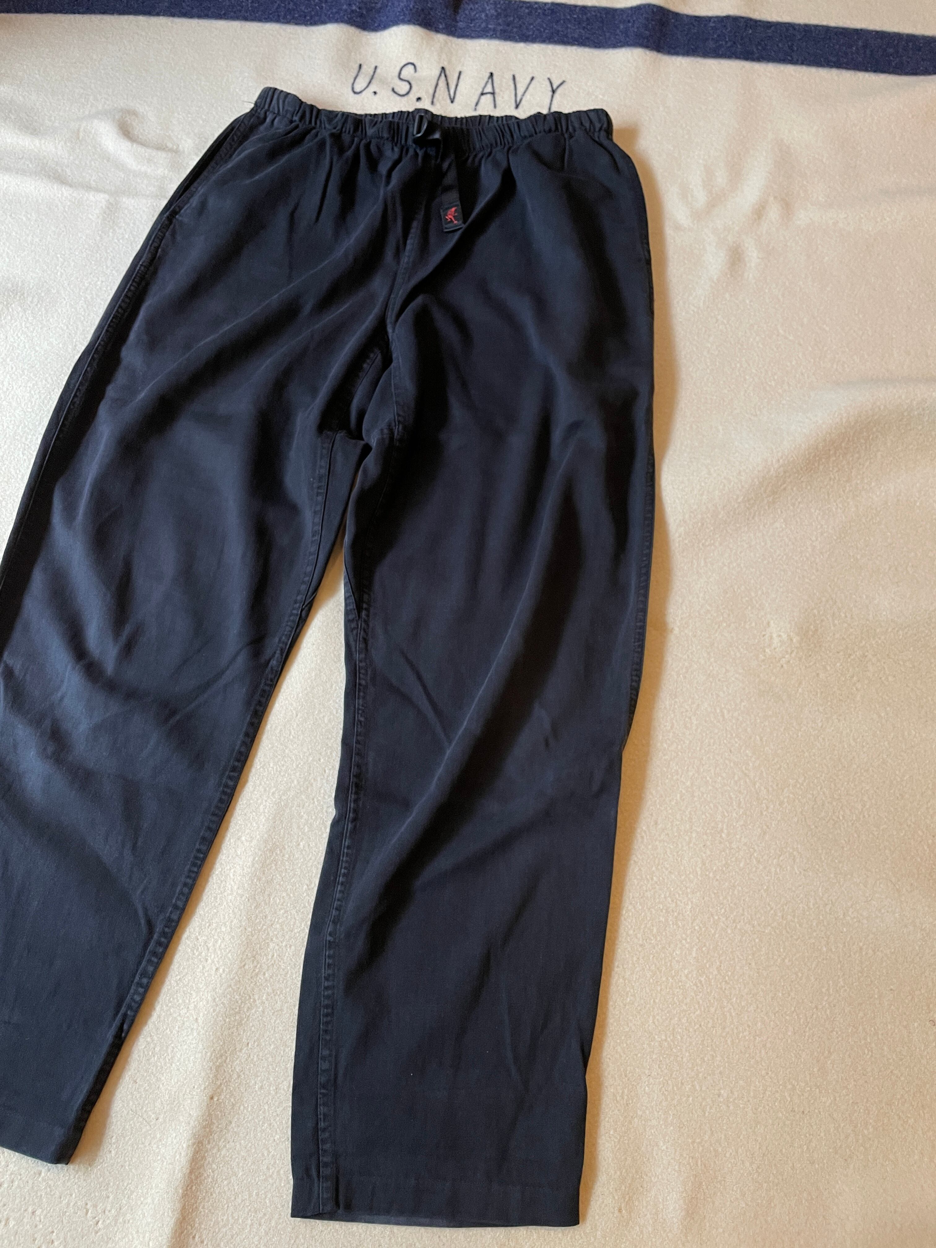 90s頃のgramicci。ベーシックなクライミングパンツより薄手でイージーパンツのような作り。カラーはブラック。レディースのXLですがメンズのものと作りは変わりません。