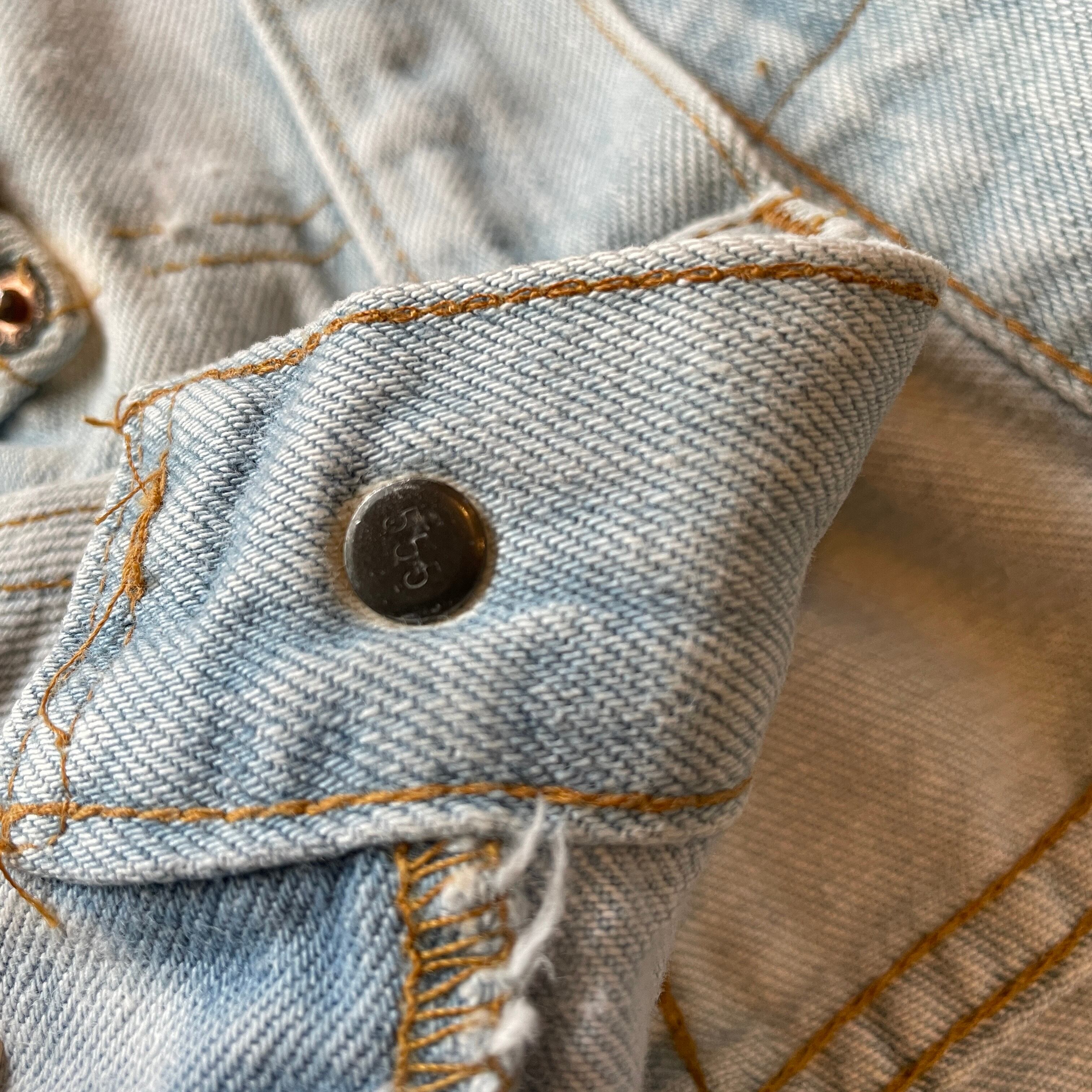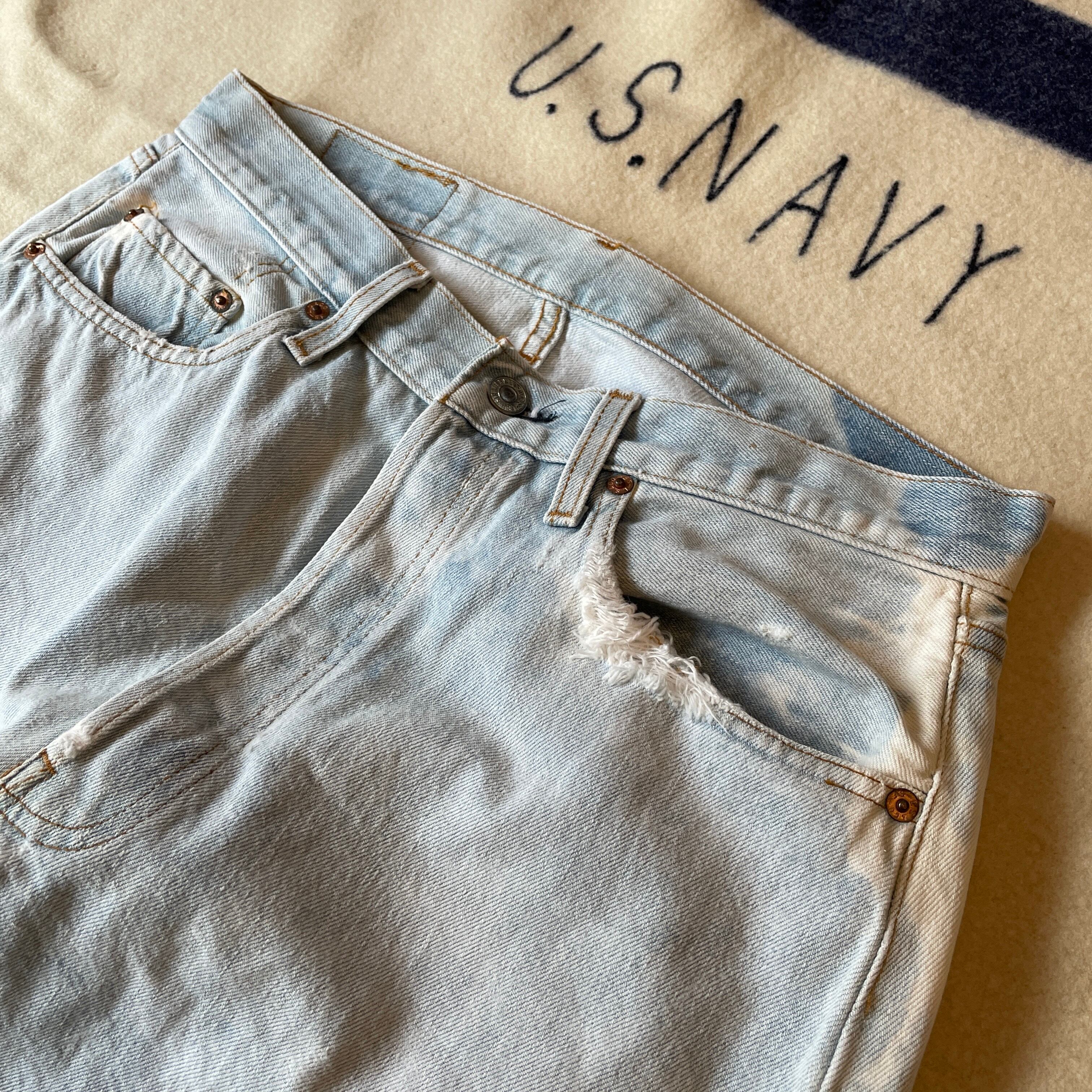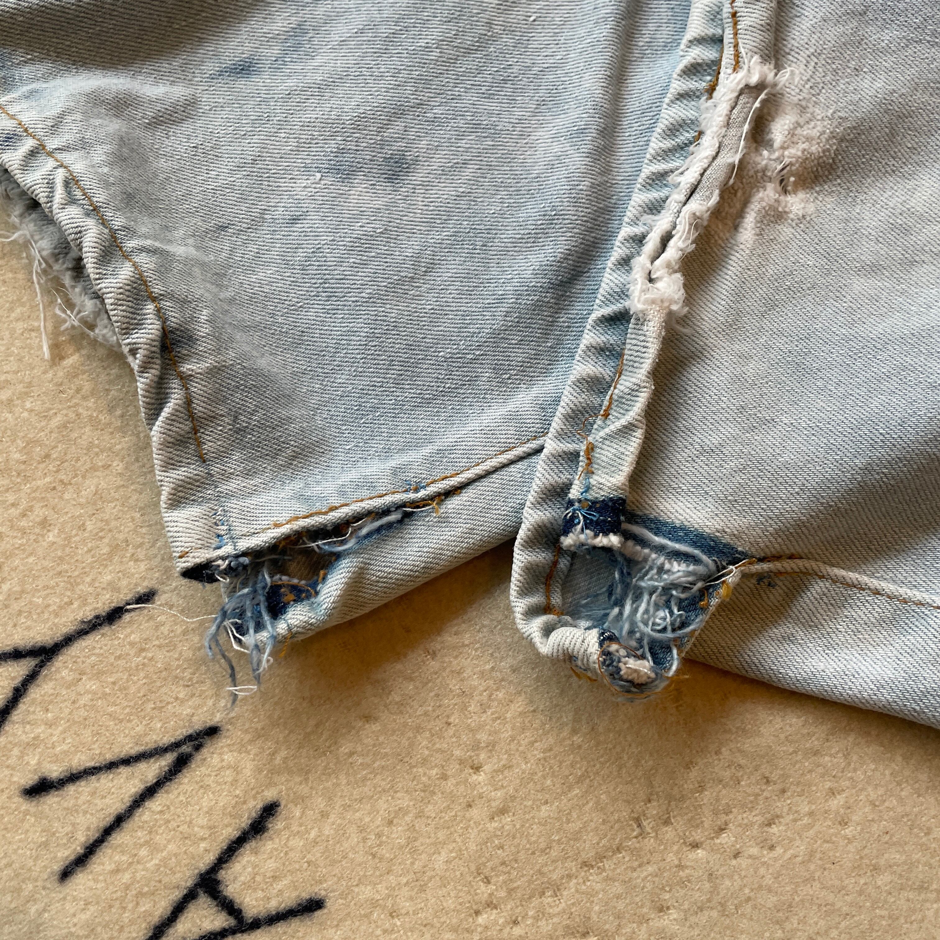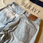 93s Levi’s501の初期ヴィンテージ復刻。トップボタン裏555のバレンシア工場製。恐らくブリーチがかけられておりカスタムされた一着と思います。