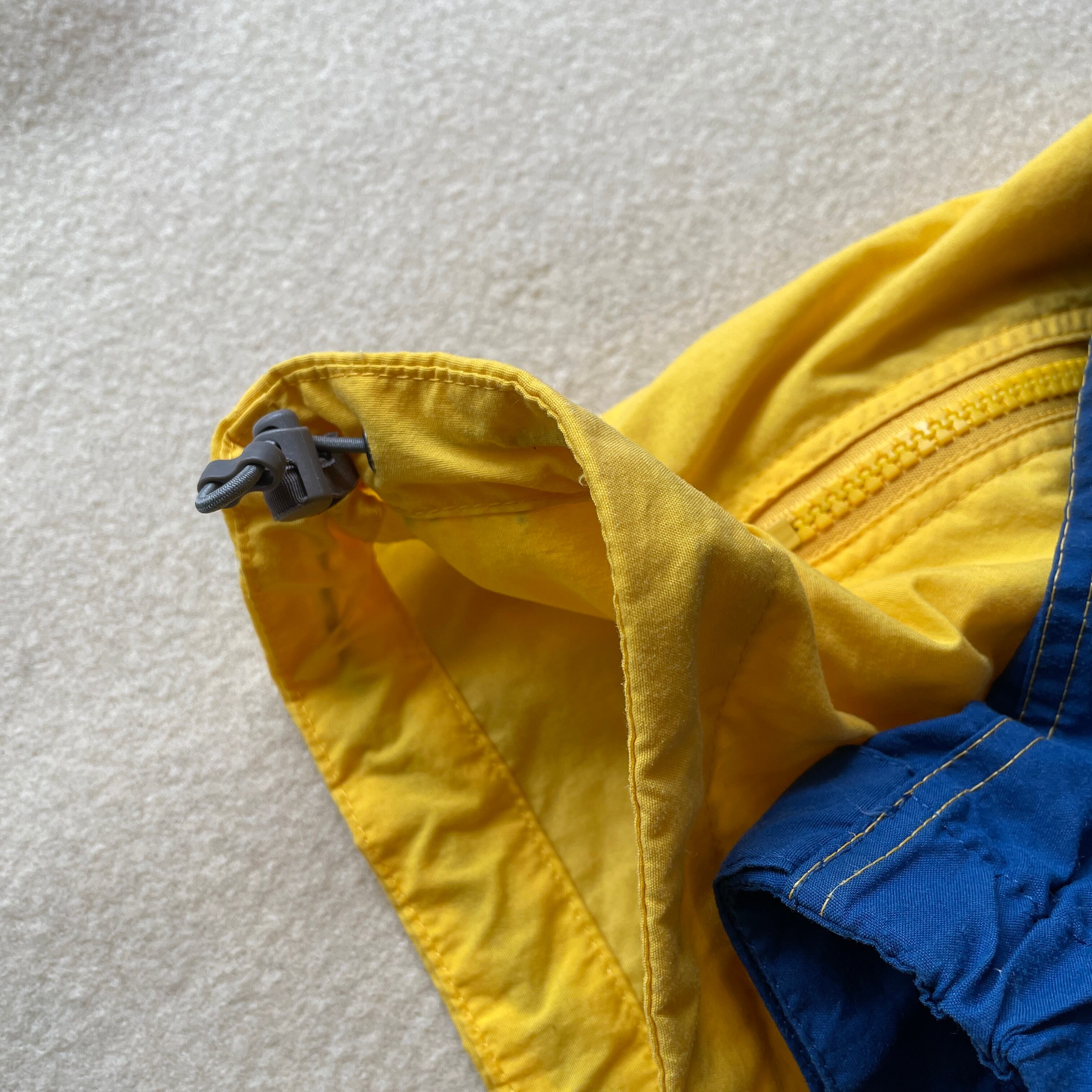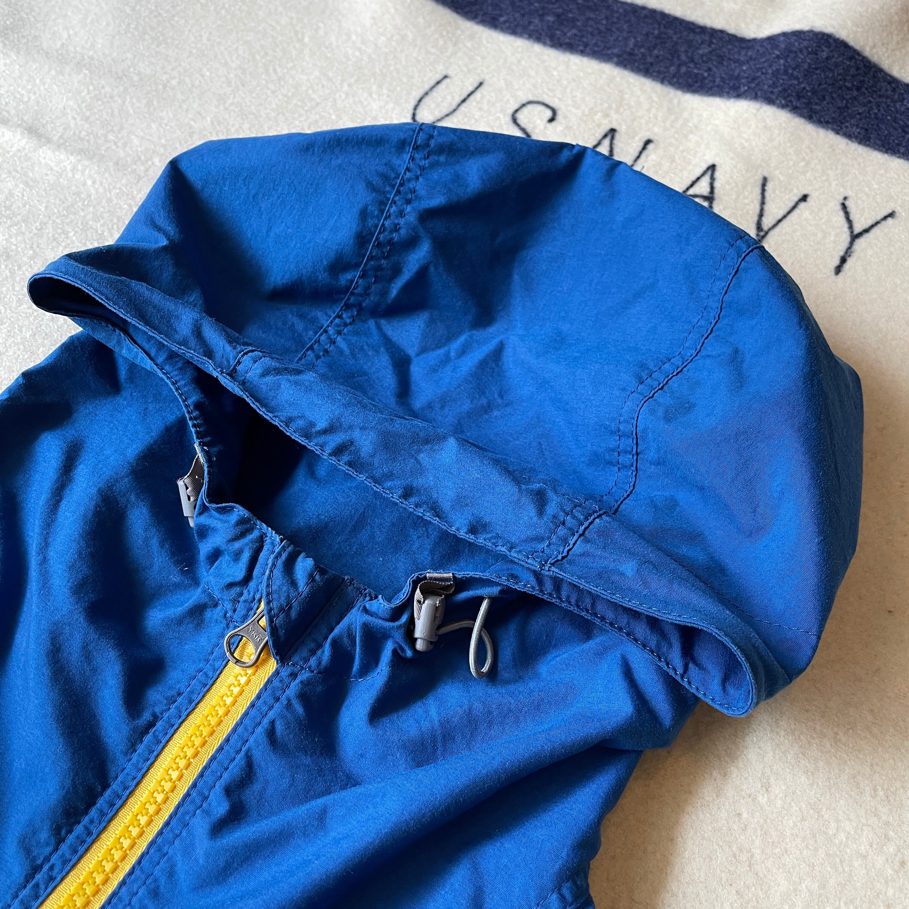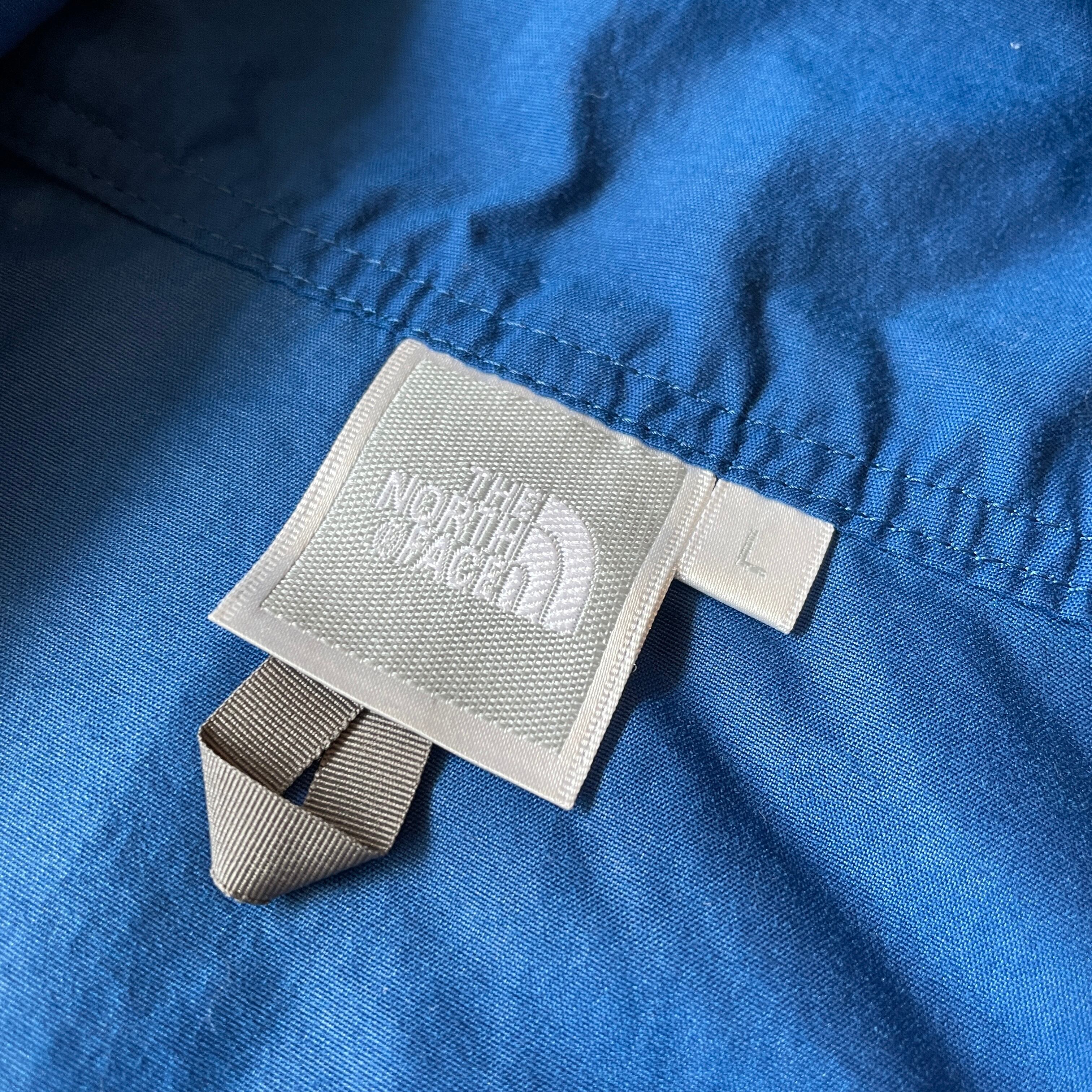 ノースフェイスのナイロンパーカー。サイズL表記ですが小さめの作り。キッズ?サイズかと思います。メンズS相当。ゴムの伸びや破れ等無いですがバック側に汚れあり。古着慣れされていれば問題無く着用可能と思います。