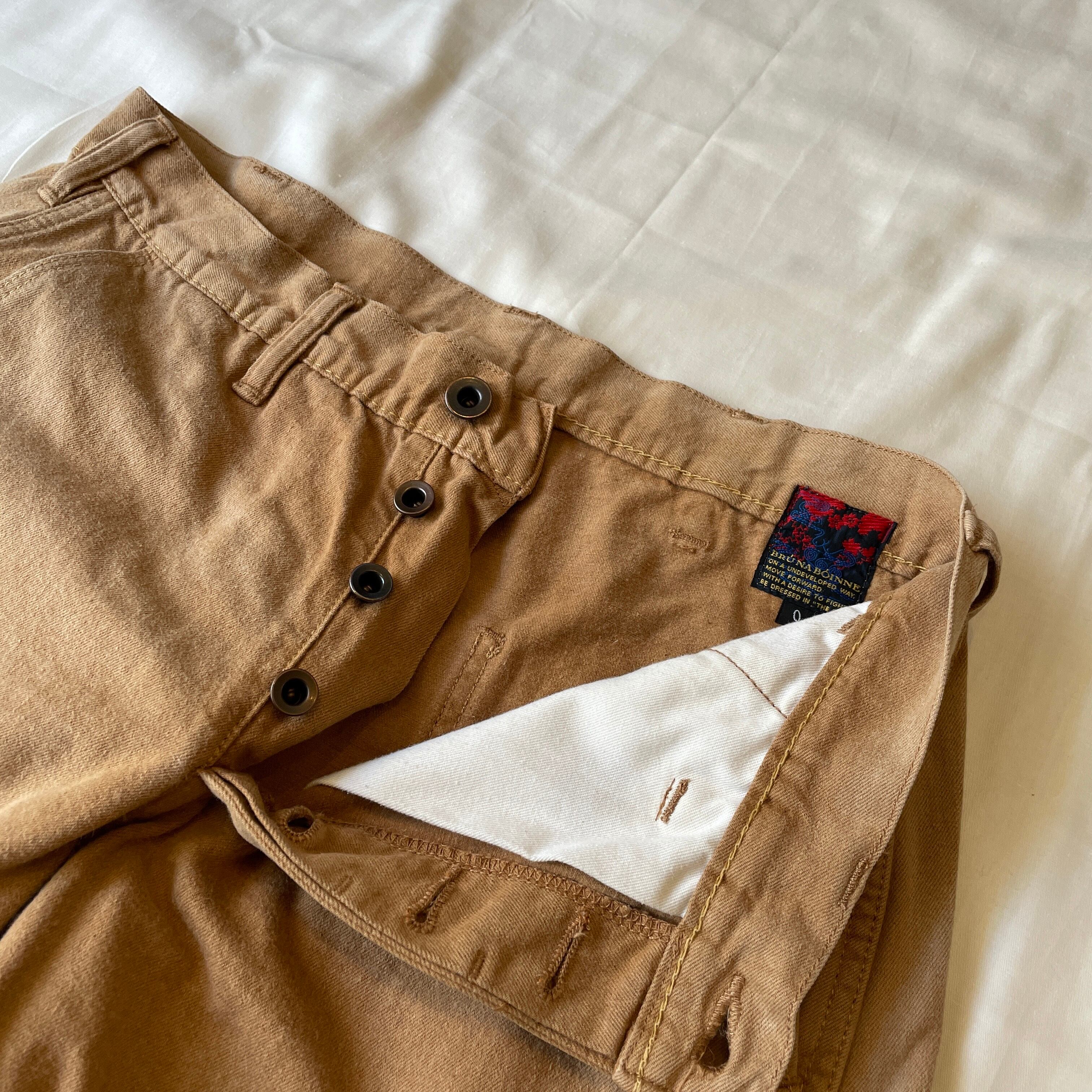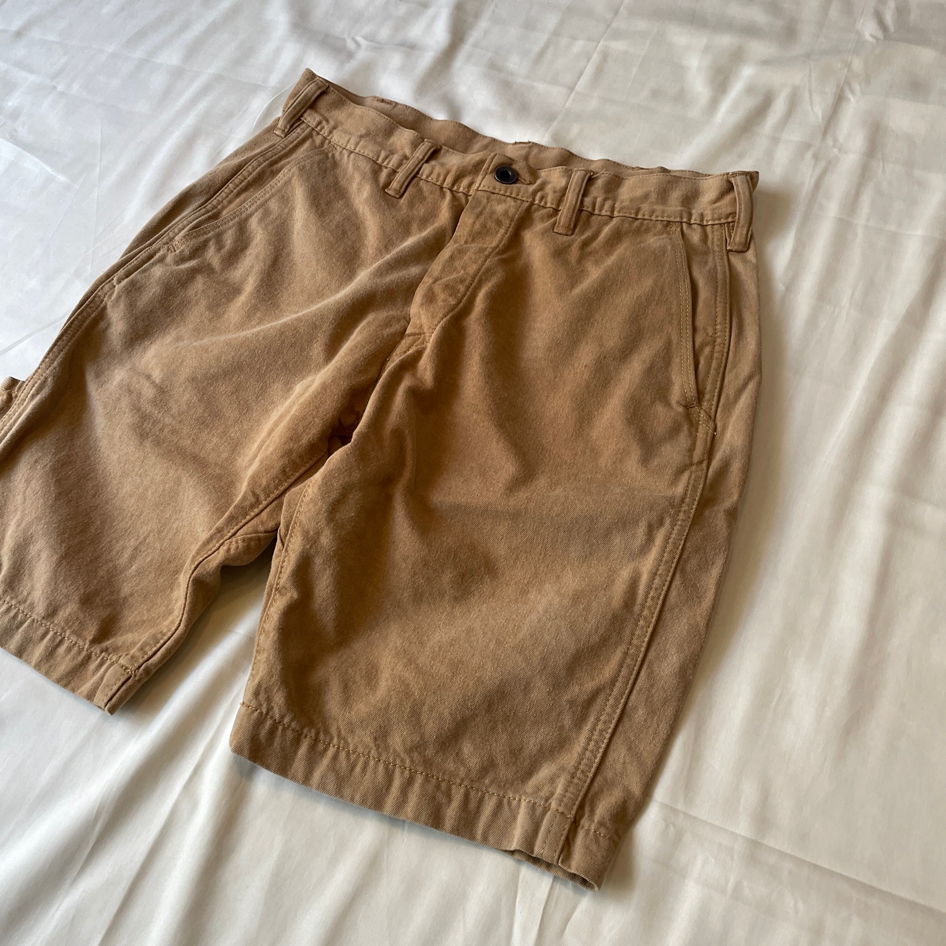 ブルーナボインのコットンショーツ。やや厚めのキャンバス生地。ヴィンテージのワークパンツをそのままカットオフしたようなデザインです。若干の使用感ありますが古着慣れされていれば問題無く着用可能と思います。