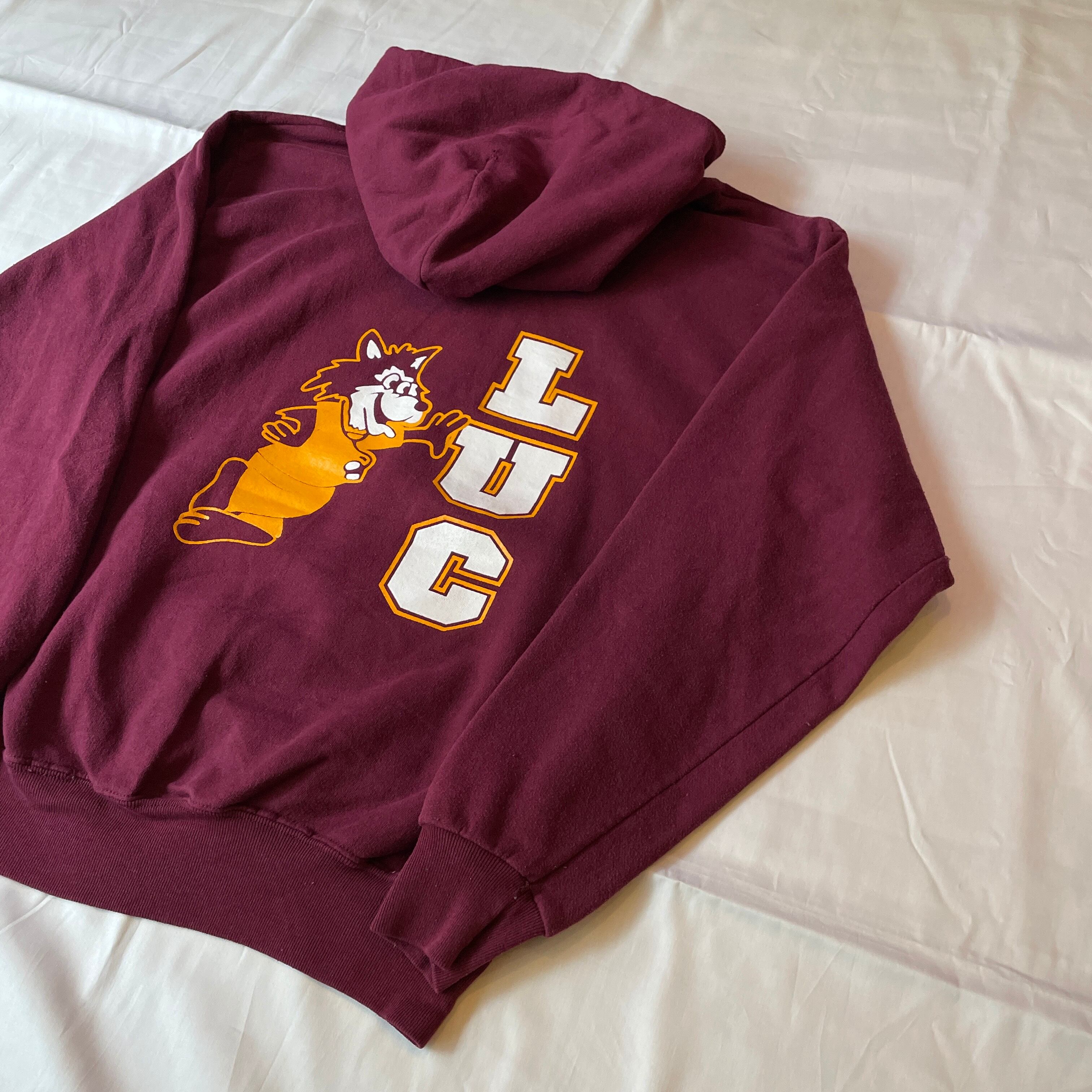 90s後期あたりのJERZEES。カレッジものでも珍しいシカゴのLOYOLA Univにバックプリント付き。サイズM表記ですがL相当。