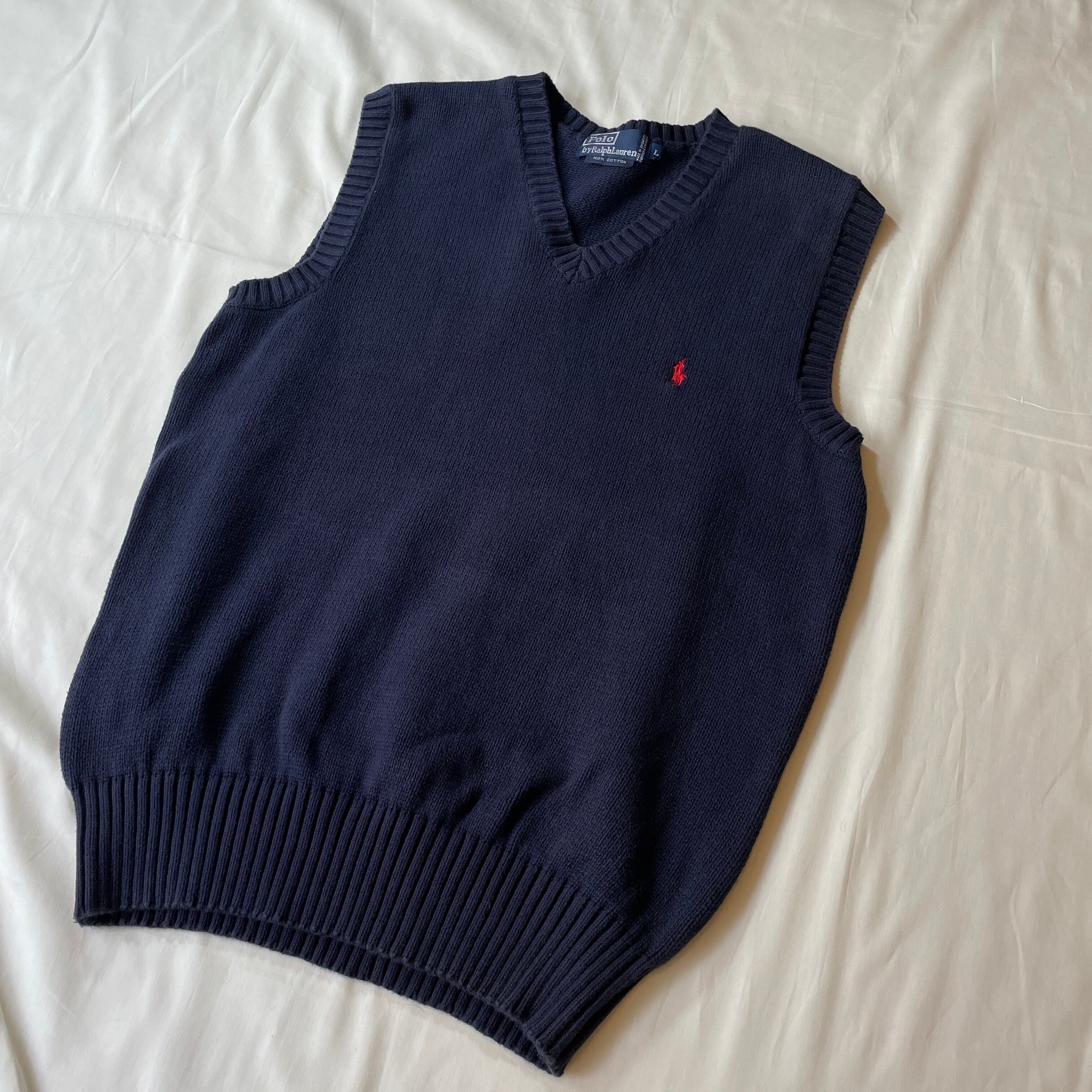 90s頃のPOLO by RALPH LAUREN。ローゲージ編みのコットンニットベスト。サイズ大きめでTシャツやパーカーの上からなんかでもかわいいと思います。