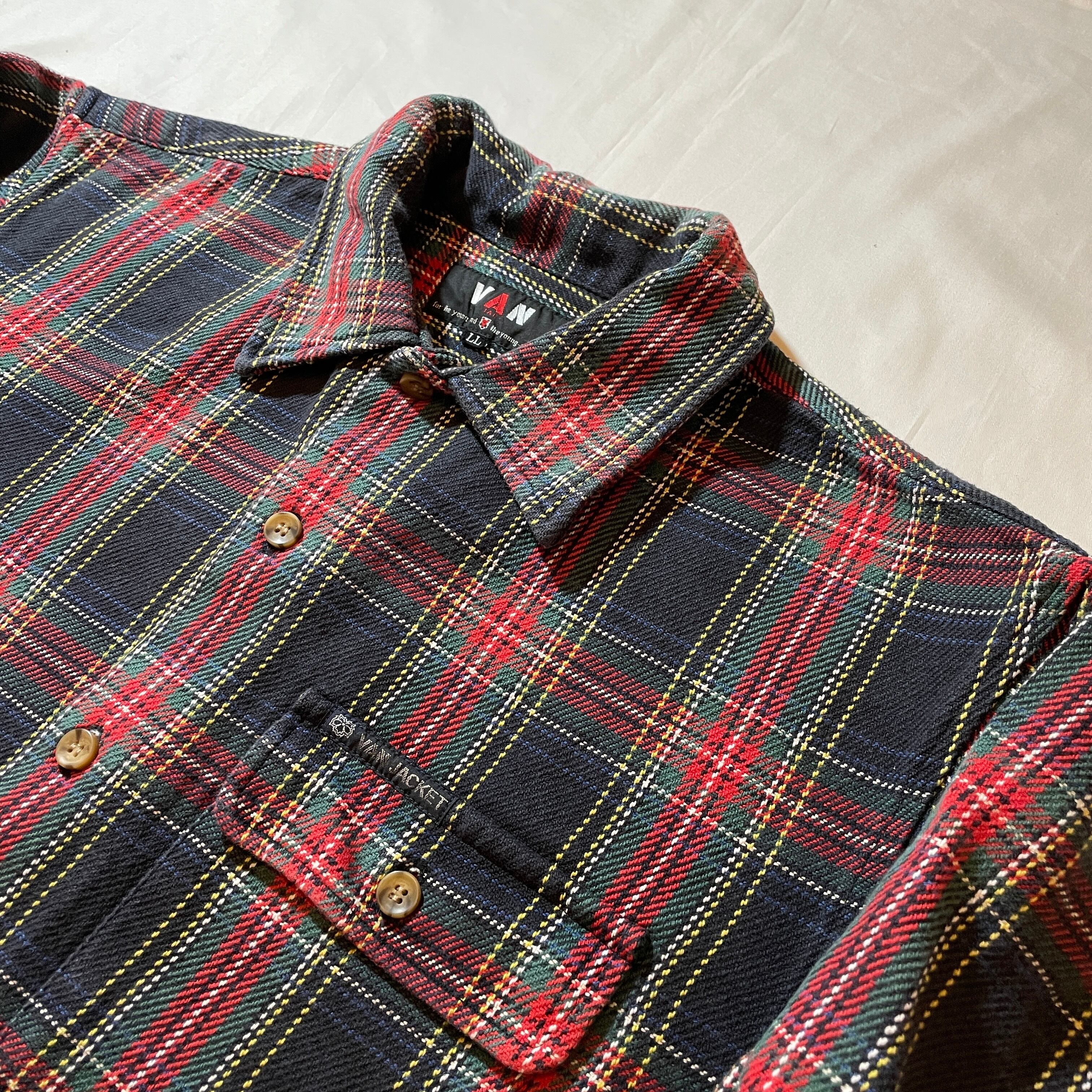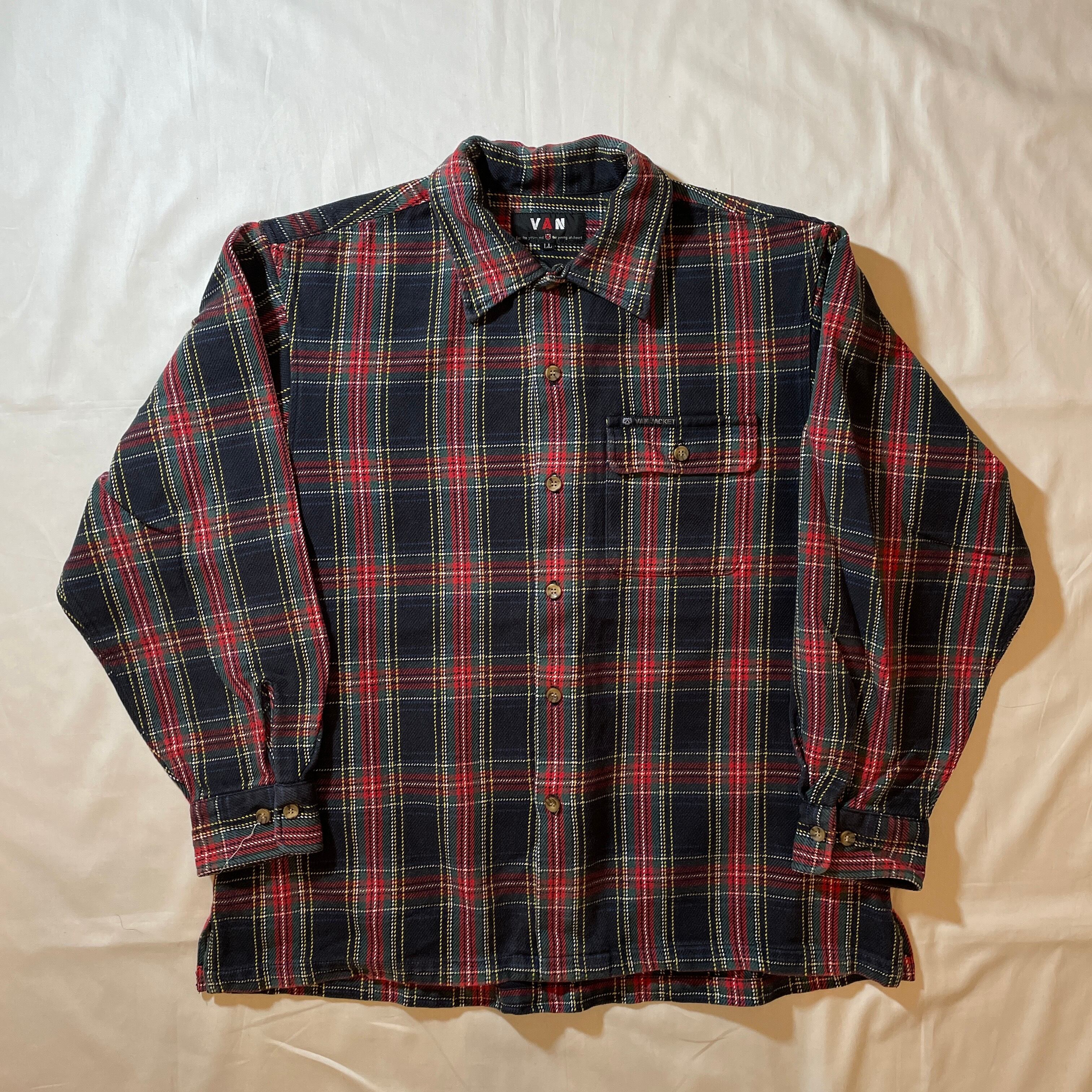 80s後期-90s頃のVAN JACKET。極肉厚のコットン地でチェックシャツというよりはシャツジャケットに近い感じです。