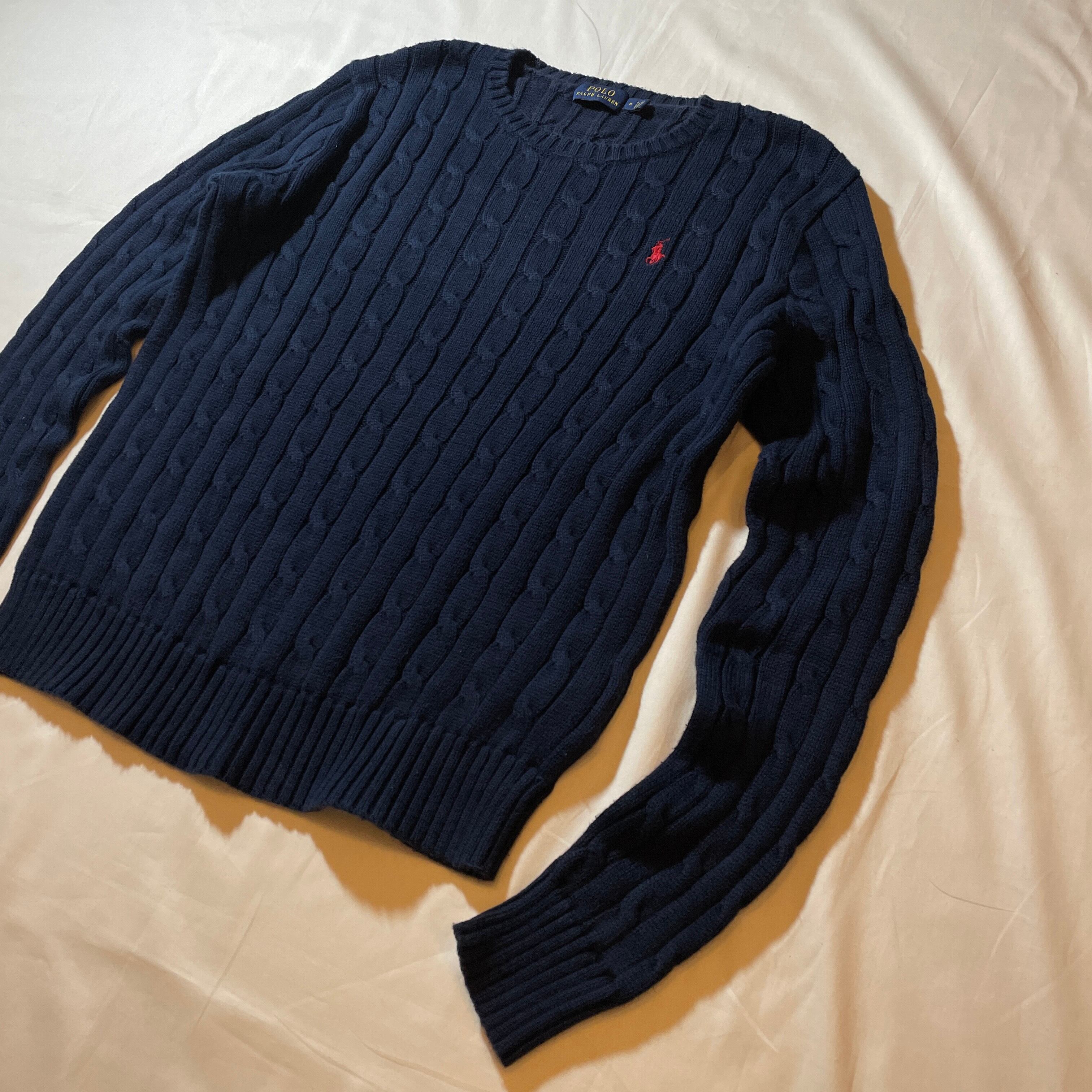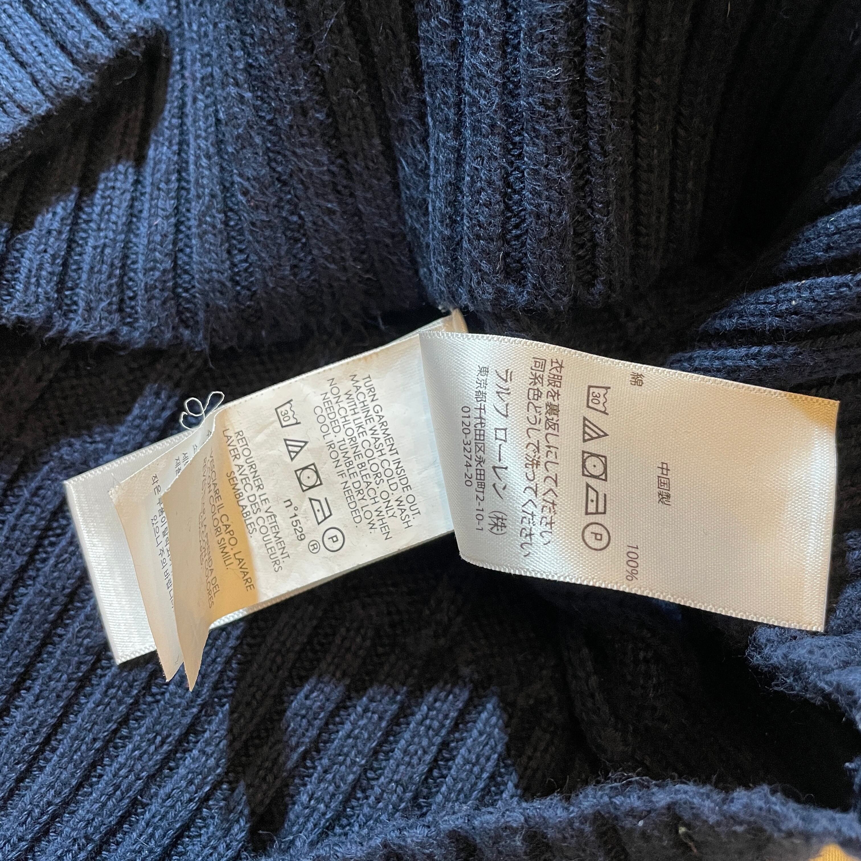 POLO RALPH LAURENの定番コットンニットセーター。カラーはネイビー。一枚あるとカジュアルにもフォーマルにも重宝します。