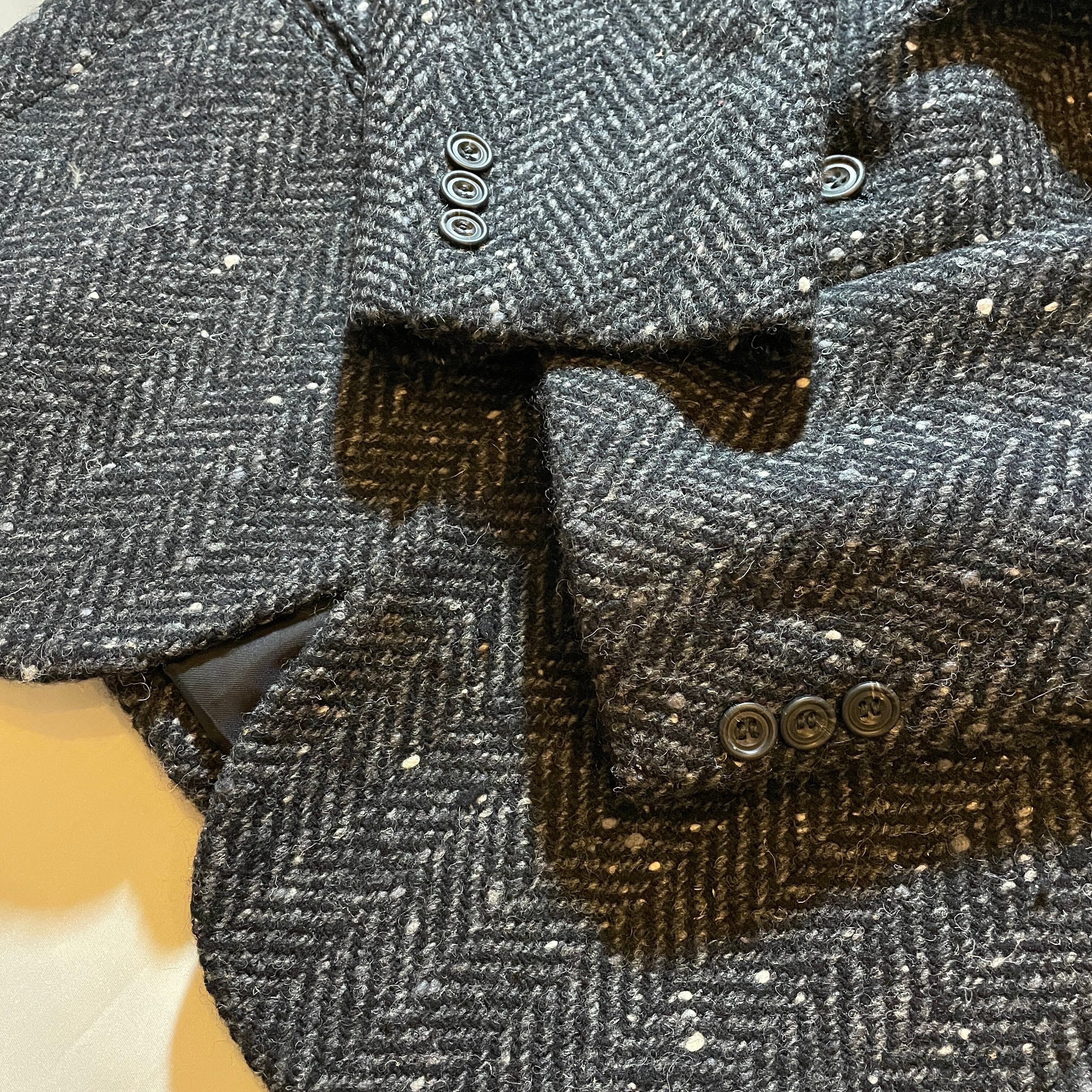 NINE THREE QUARTERというブランドのツイードジャケット。イタリアンクロスを使用したネップ入りのツイード、ハリスツイードよりも柔らかめです。
