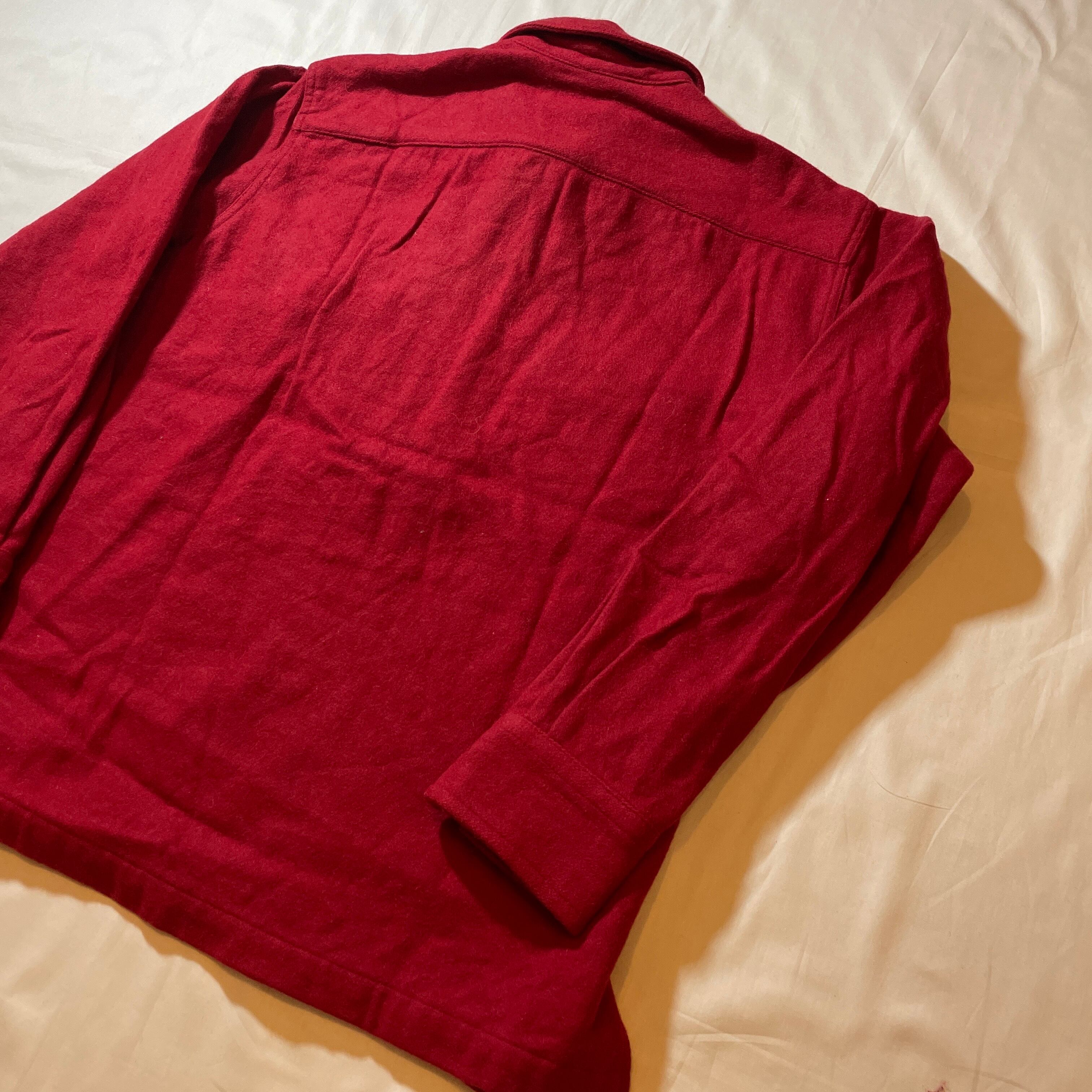 80s-90s頃のH/H。セーリングやアウトドアアイテムのイメージが強いブランドでこういうオールドのアメカジスタイルのウールシャツは珍しいと思います。ハーフジップにチンスト付き。