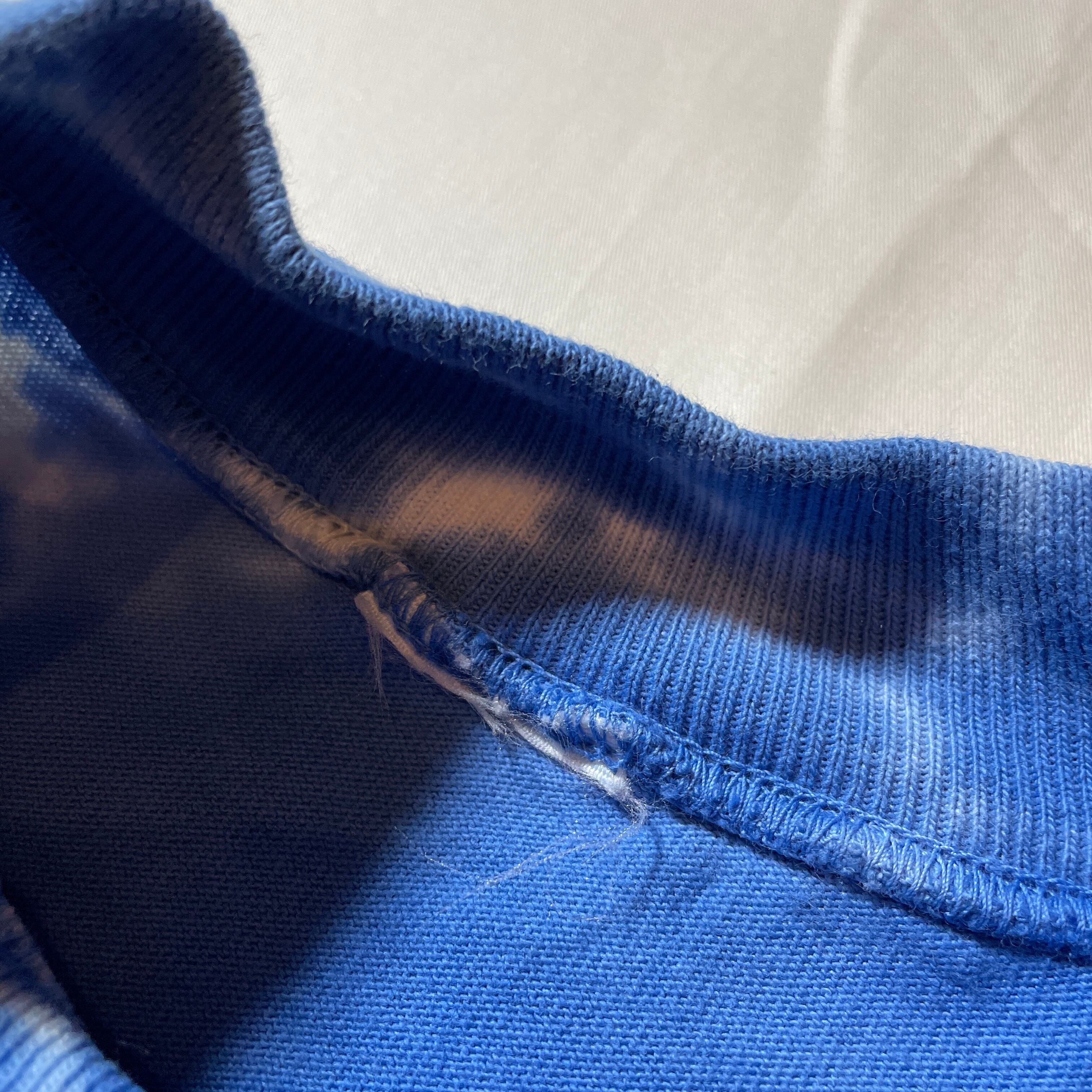 タグは欠損していますが恐らくFruit of the loomのコットン100%のものかと思います。両面プリント、モックネック、タイダイカラー、ビッグサイズ。古着好きに是非。
