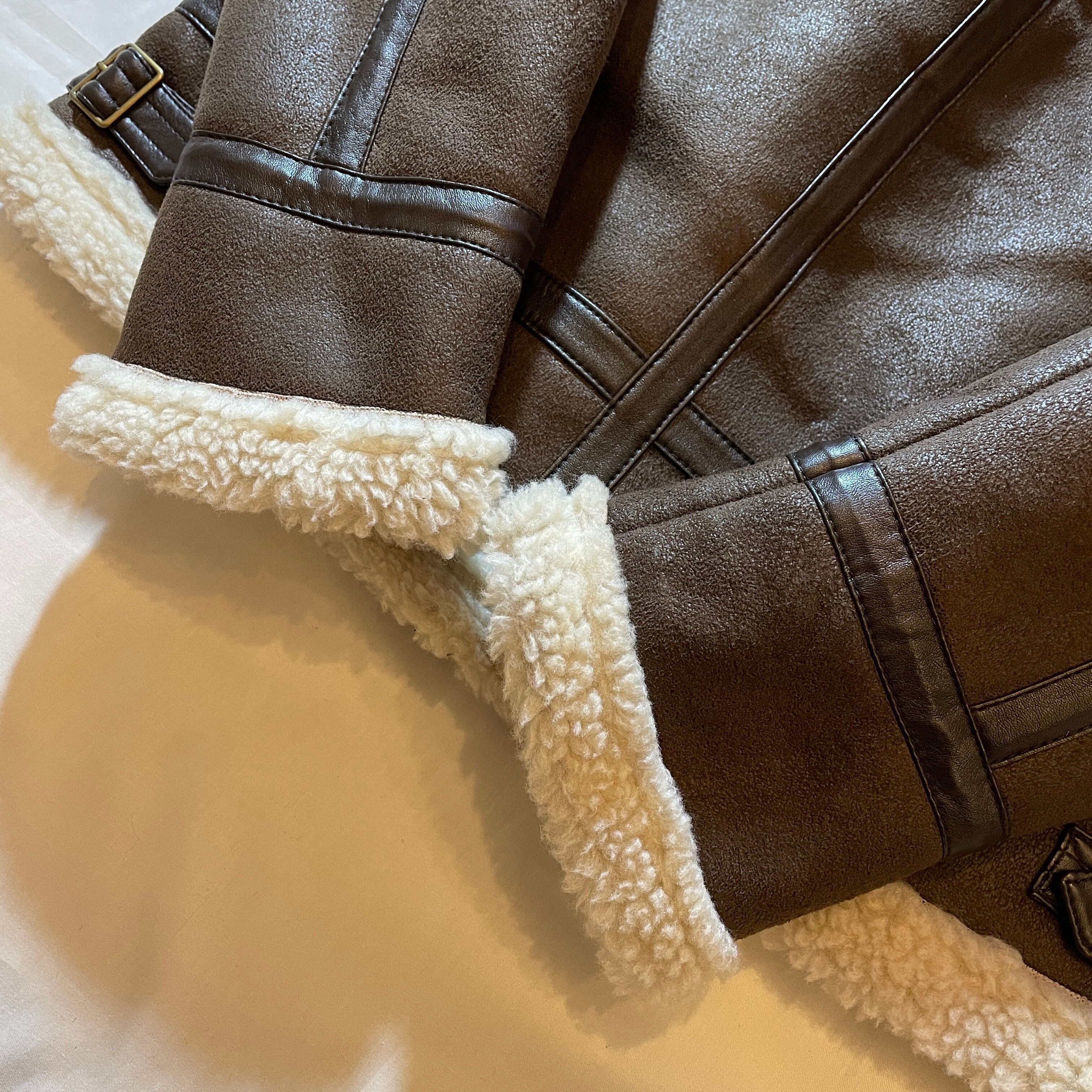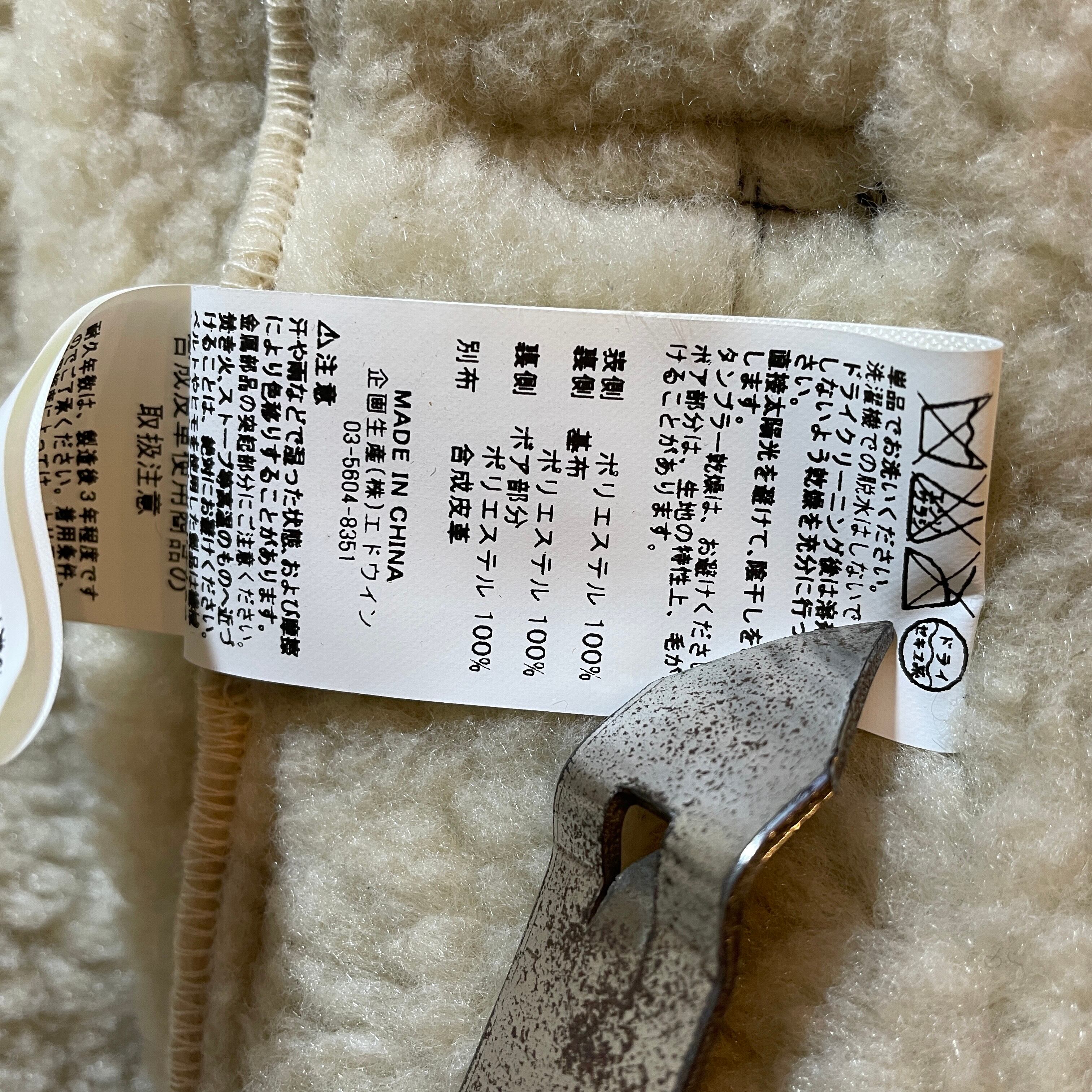 表素材はリアルなレザー感の合成皮革、裏地のボアはポリエステル素材のフェイクムートンボアを採用。裾左右両サイドにはアジャストベルトを配し、裾の絞りが調節できます。