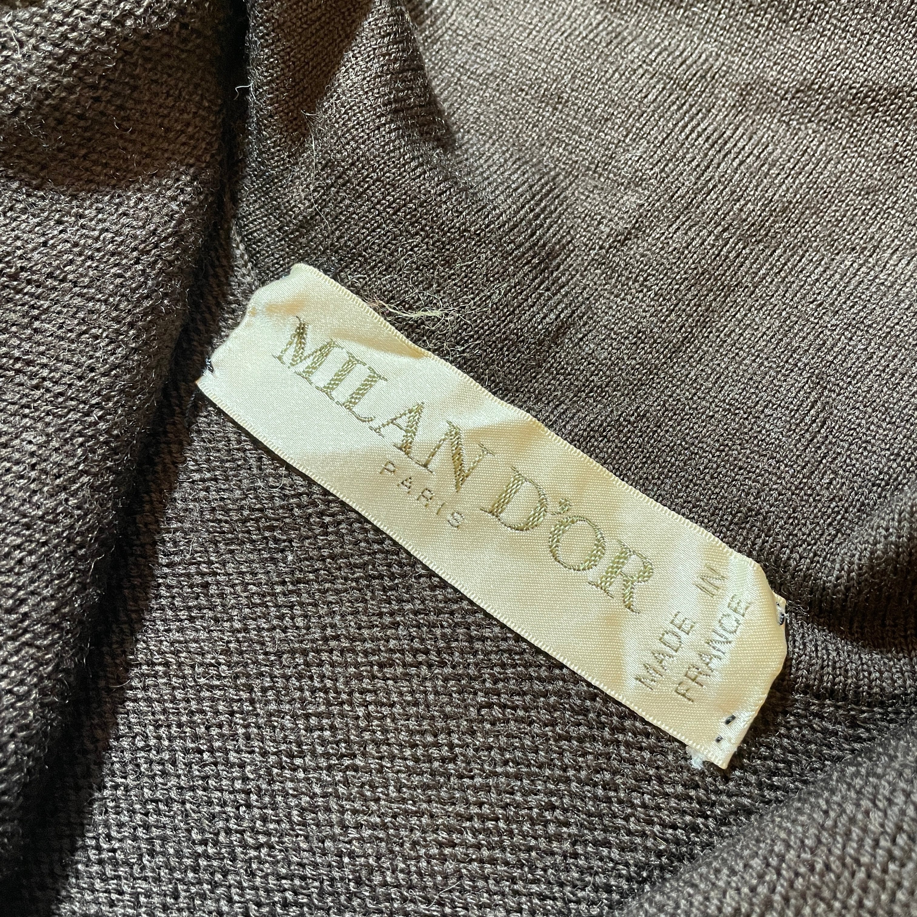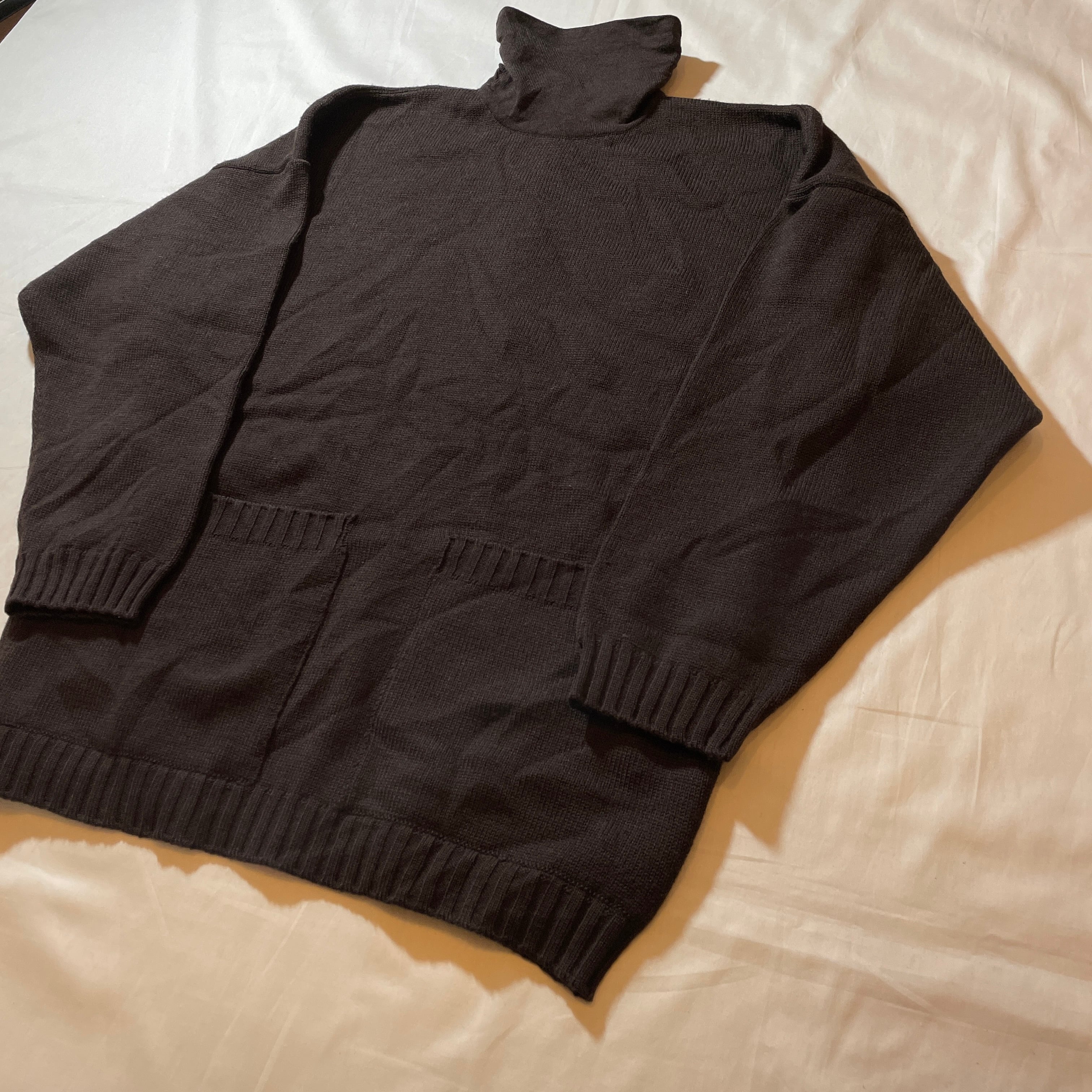 90s頃のユーロヴィンテージ。MILAN DORのハイネックセーター。カラーはブラウン、フロントに大きめのポケットが2つ付くシンプルなセーター。