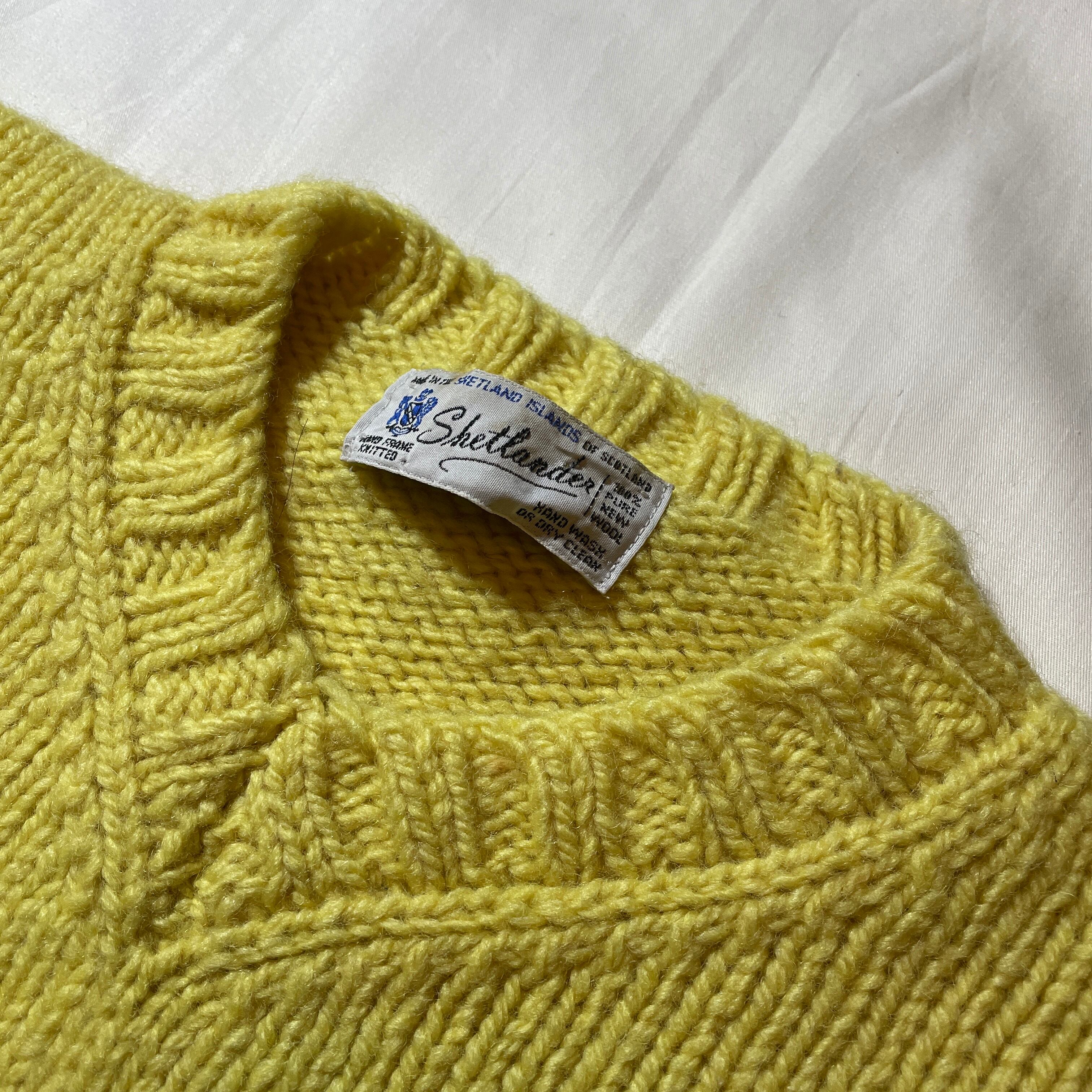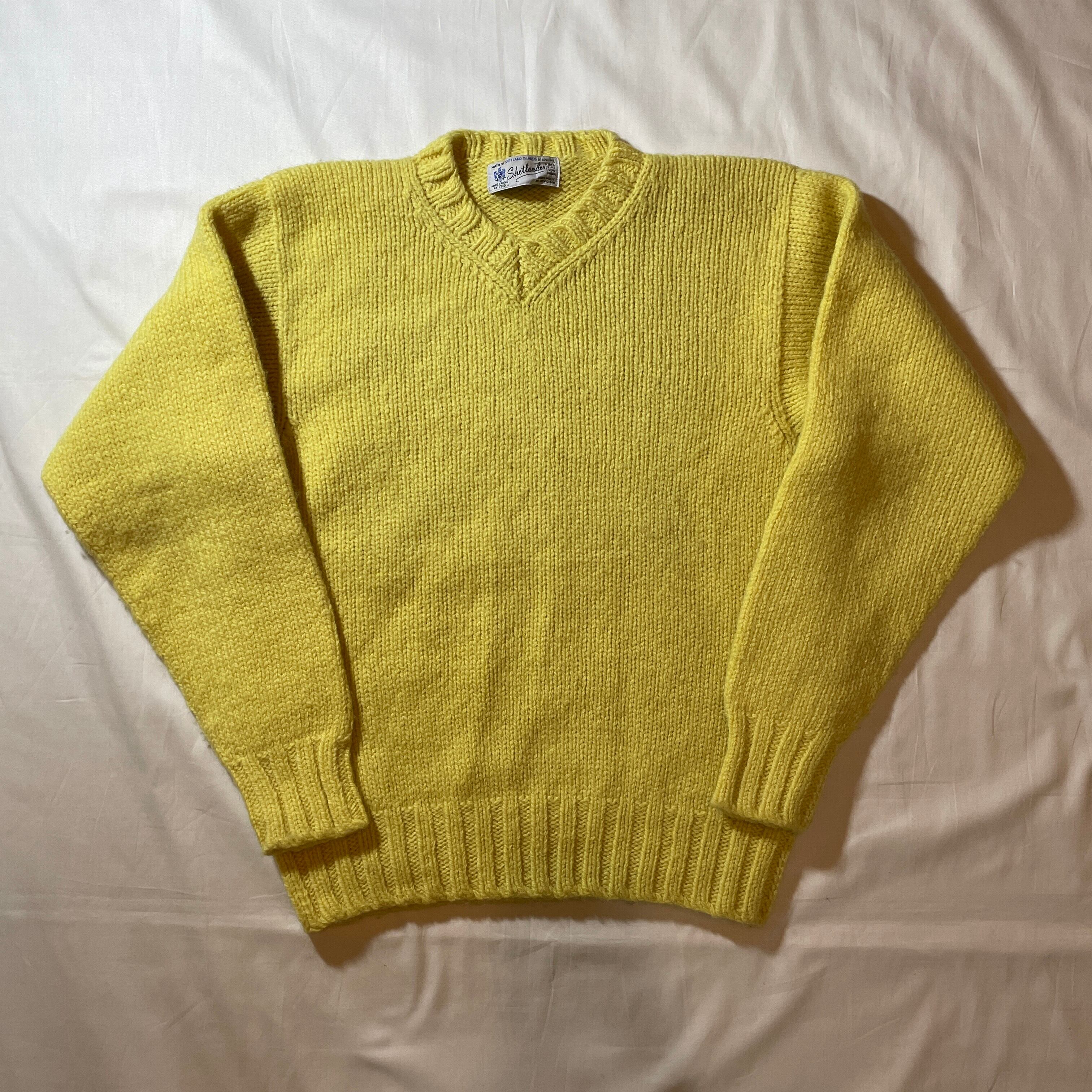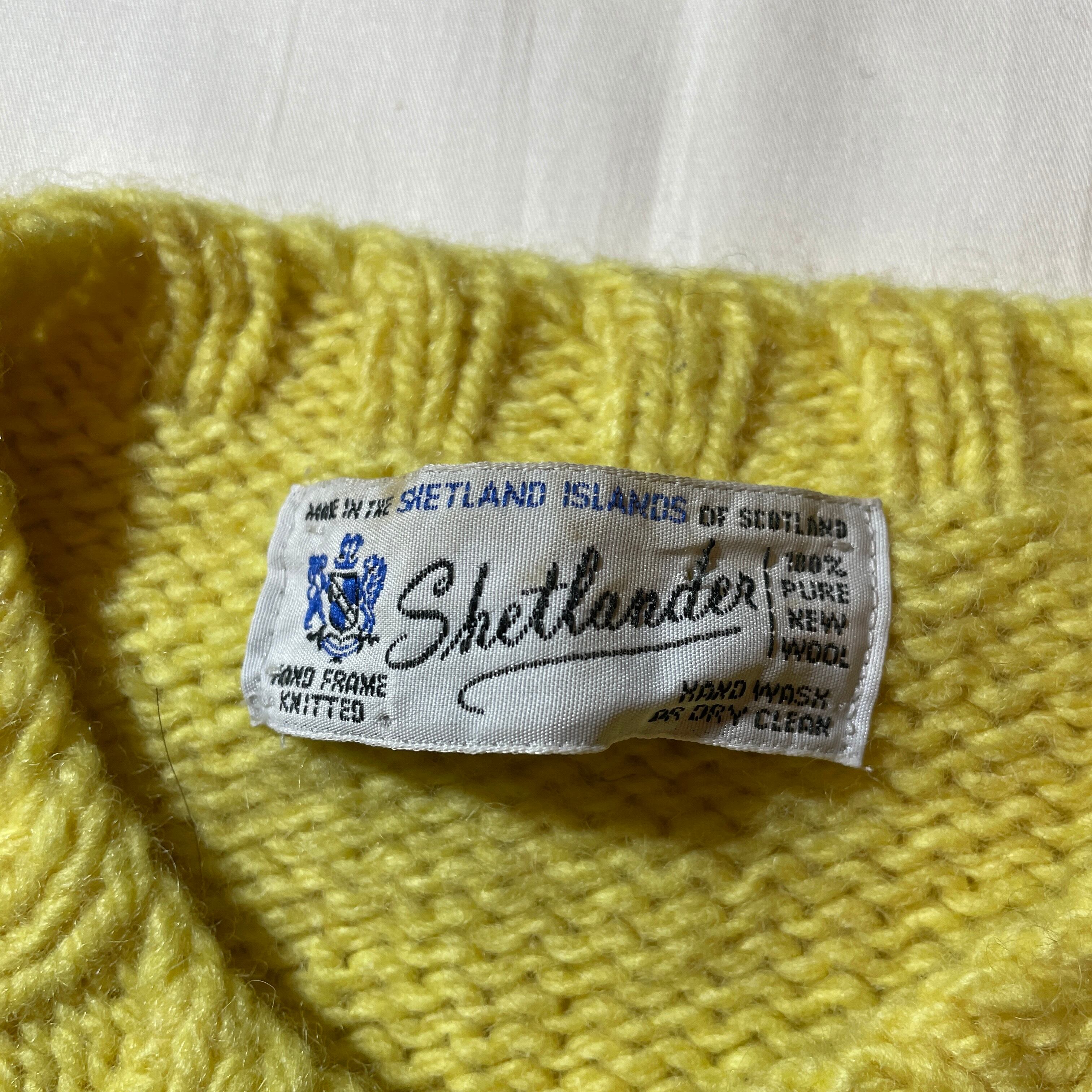 80s-90s頃のSHETLAND製 ウールセーター。最高級の品質を誇るShetland製。中々無いマスタードカラー。こういうカラーはグッとオールド感増します。