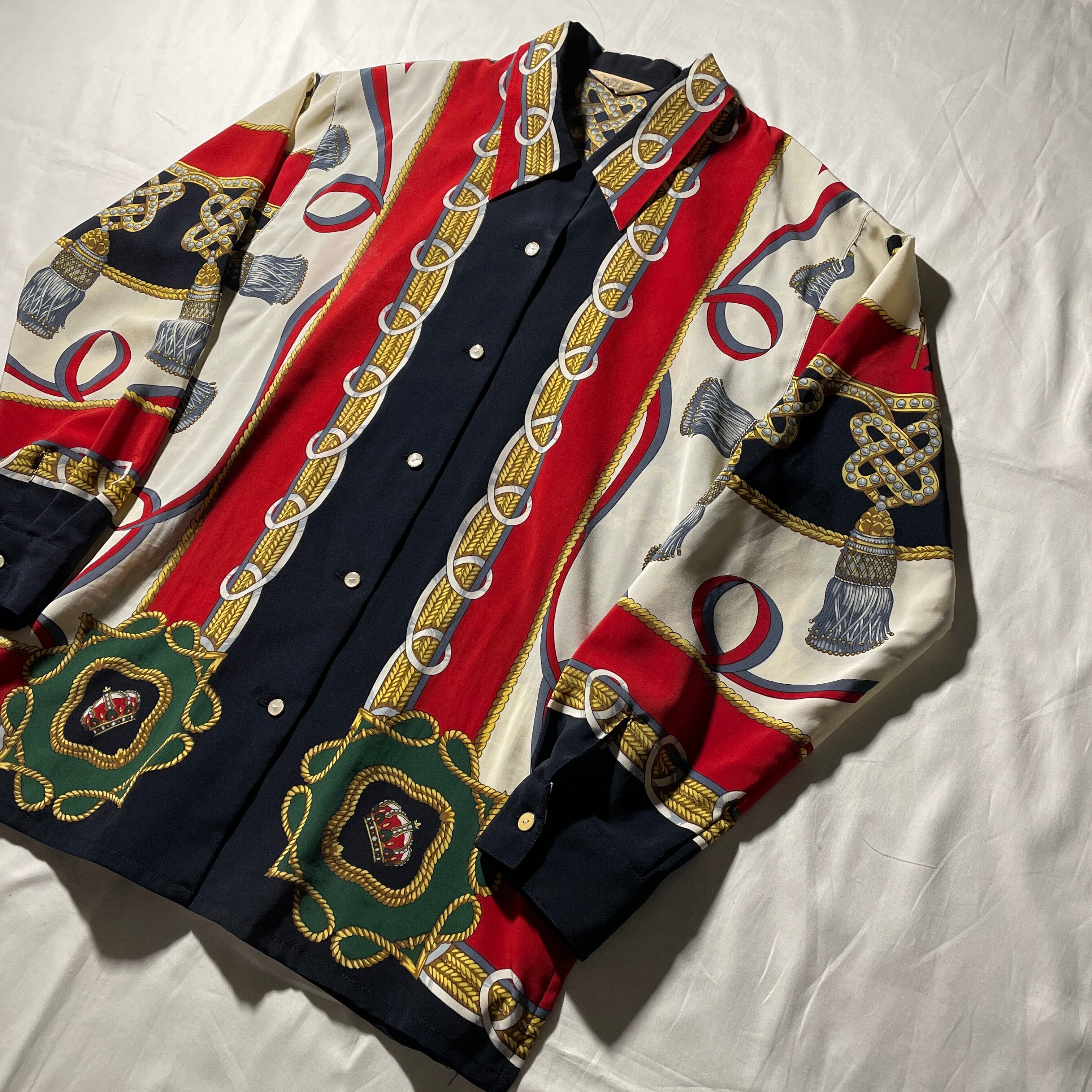 80s FANCY WAY 総柄 ポリシャツ 国産 ヴィンテージ