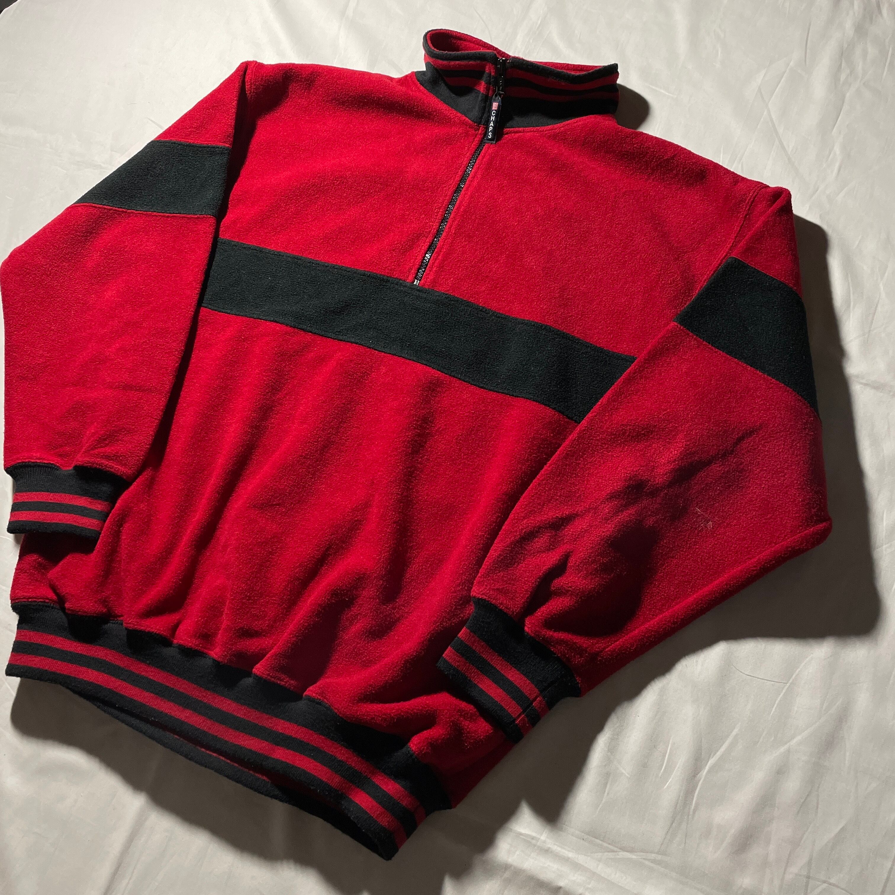 90s頃のCHAPS。ハーフジップのフリースジャケット。レッドカラーにブラックは映えます。シンプルながらストリート感のある一着。