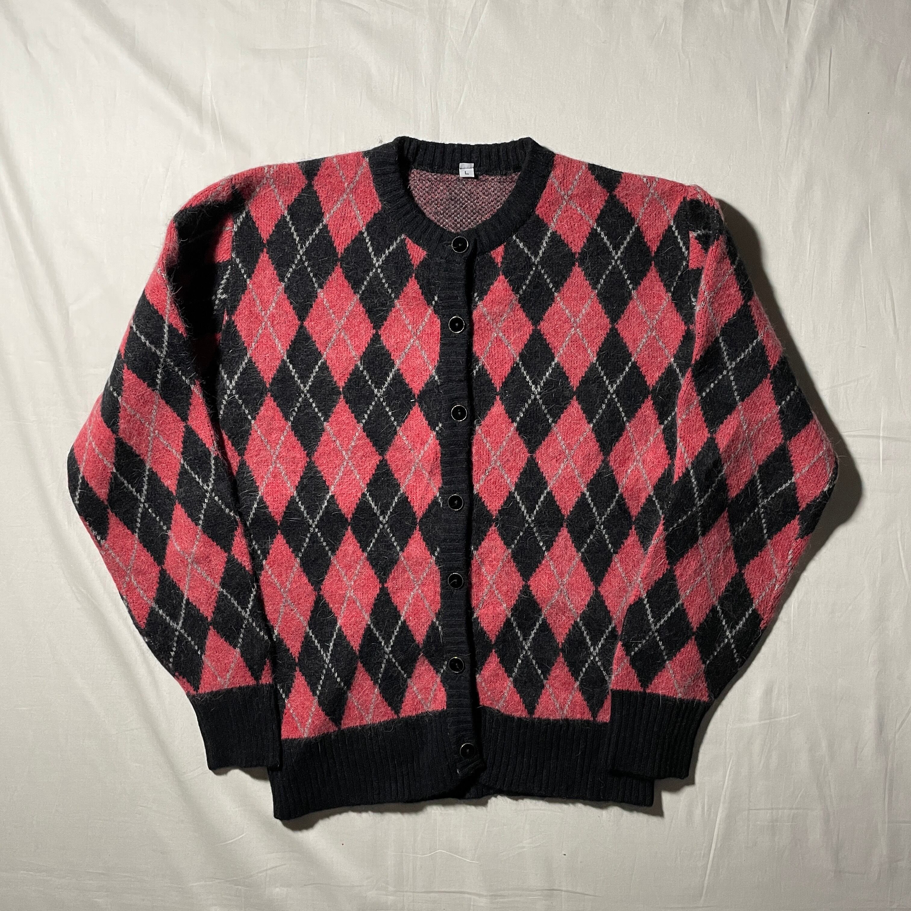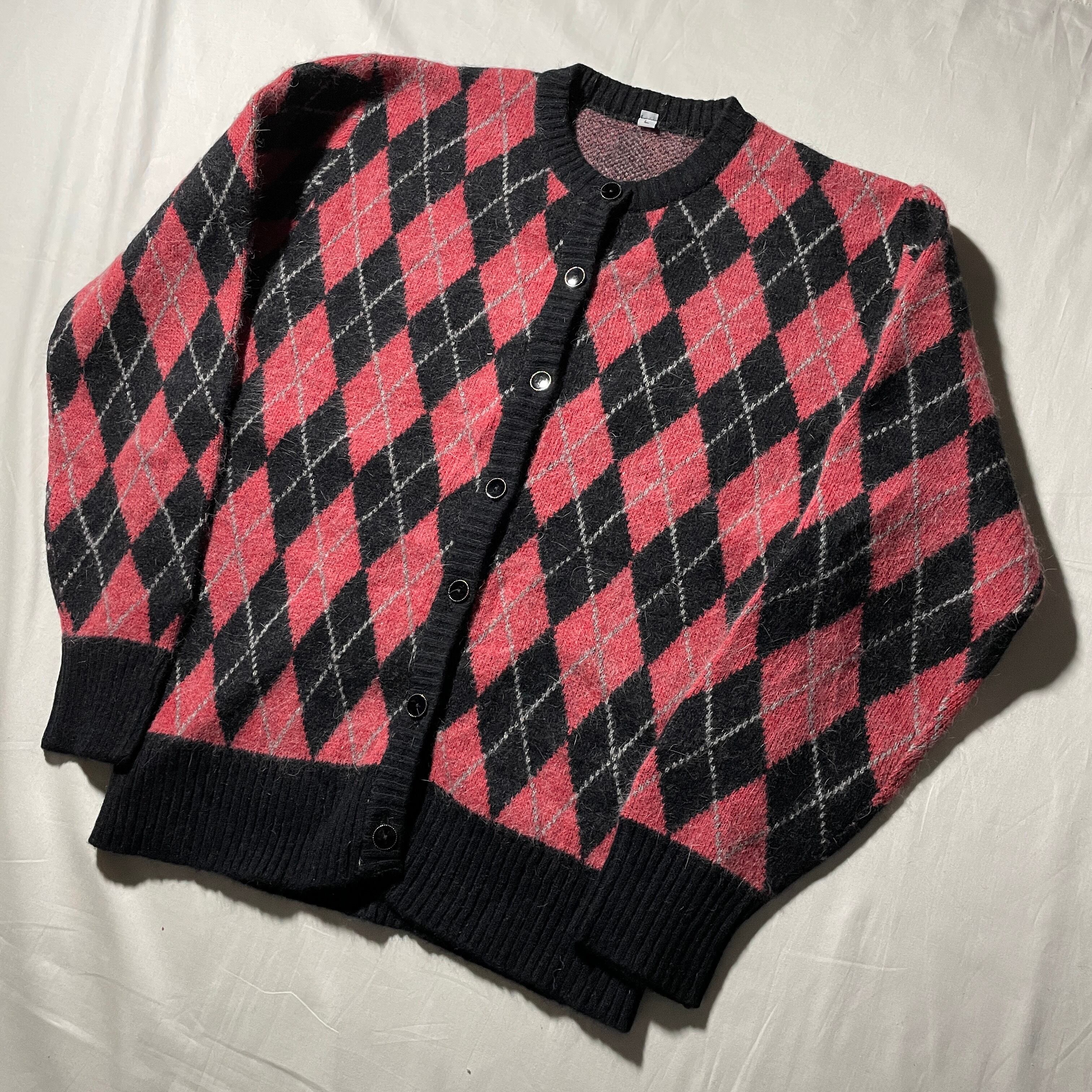 80s-90s アーガイル カーディガン モヘア ヴィンテージ 国産