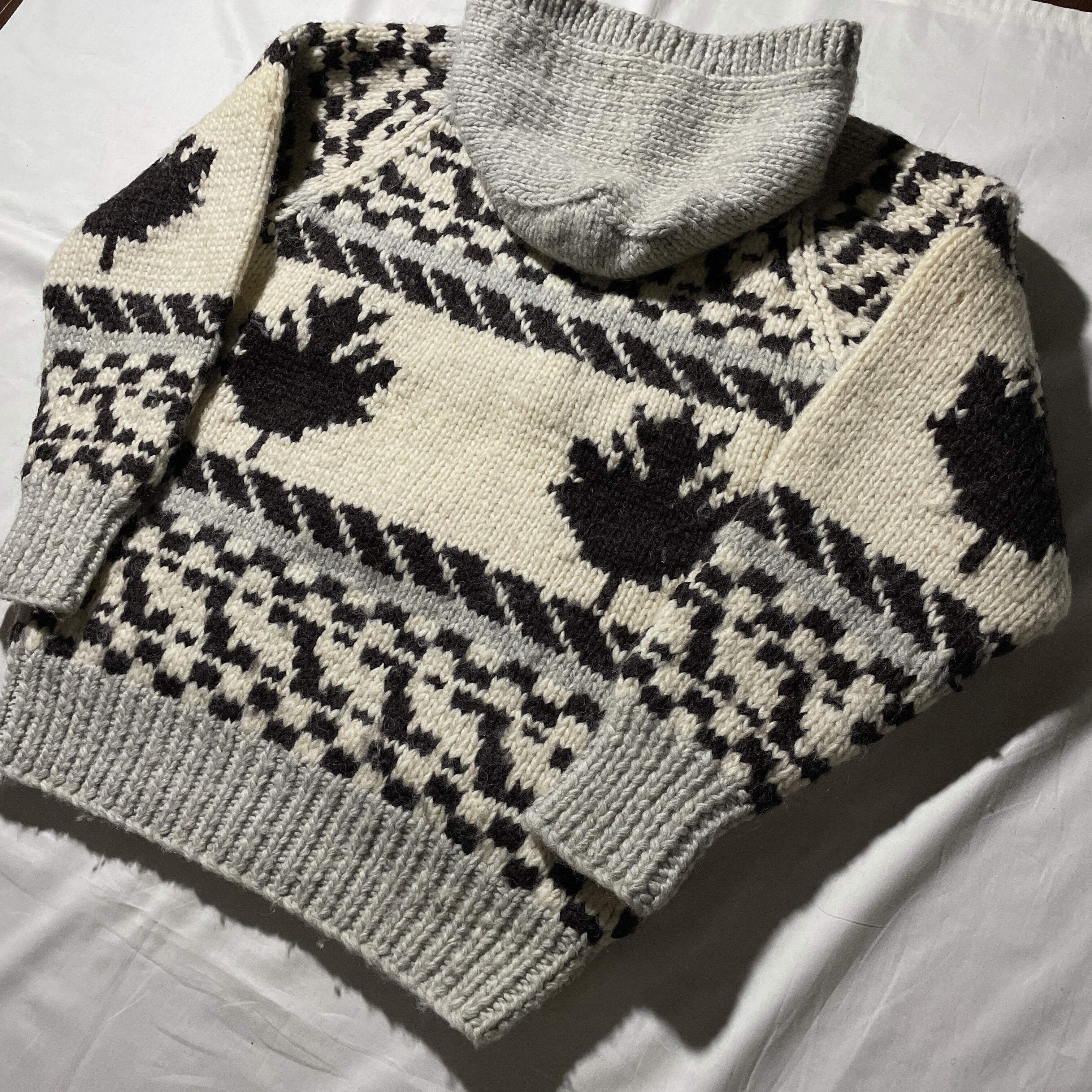90s頃のCREATION CUBEというブランド。フード付きのカウチンニットは珍しいと思います。