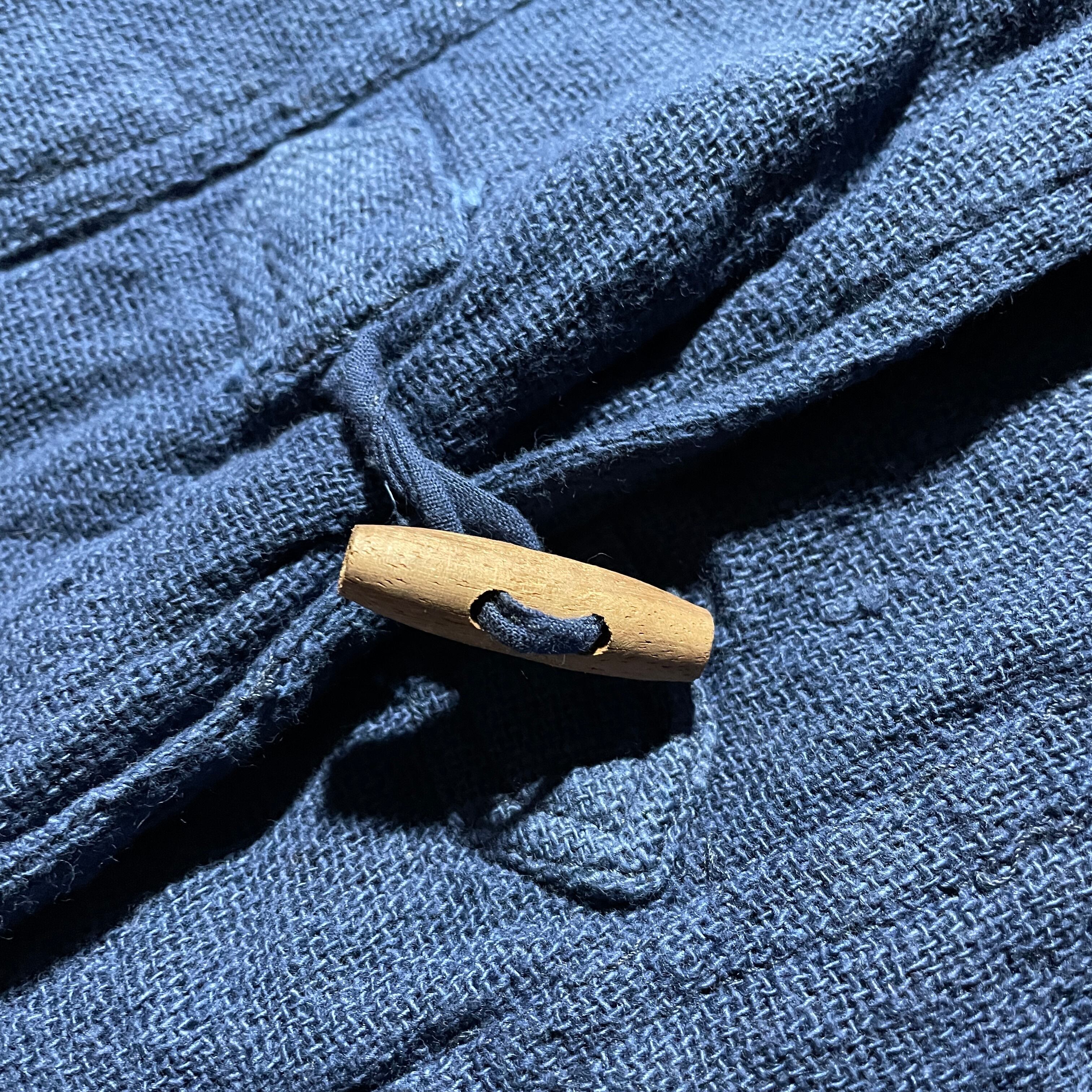 簡素で羽織りやすい大きめの作りはデイリーユースを目的として作られたからでしょうか。ボタンはウッド。フロントに2つのポケットとバックに大きめのポケットが付きます。