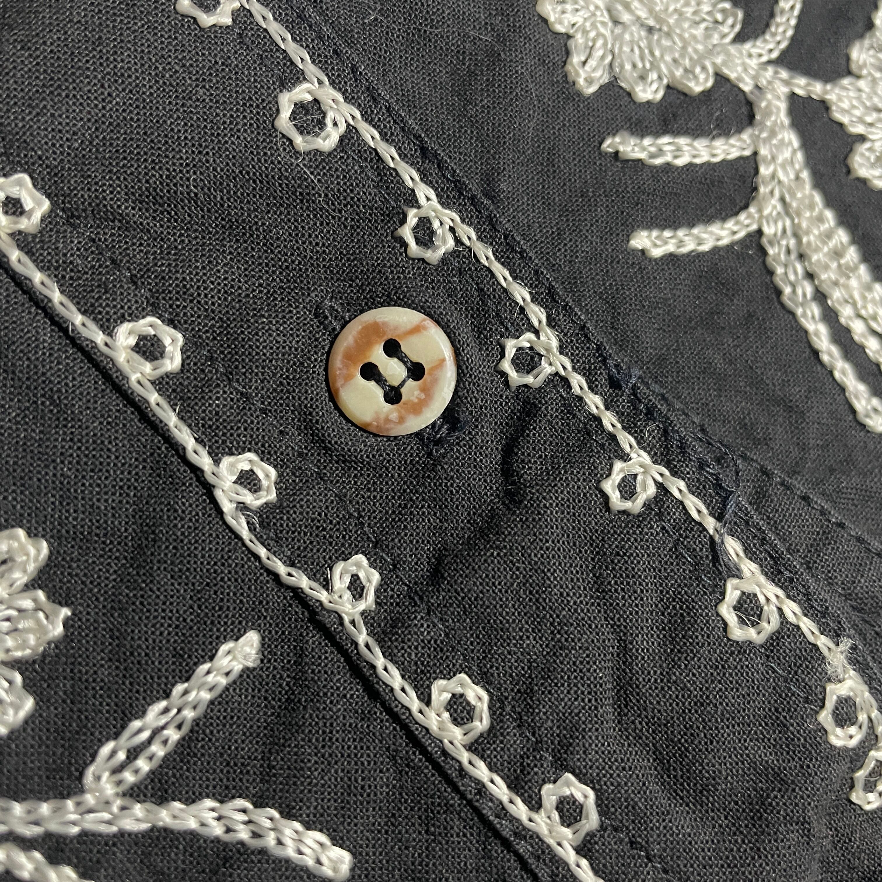凄く手の込んだつくりです。フロントのチェーンステッチは手作業だと思います。当時のインドでもフォーマルな場所で着用していたんではないでしょうか。