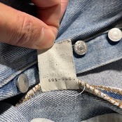 90s Levi’s501。全体的に均一に色の落ちたアイスブルーカラー。