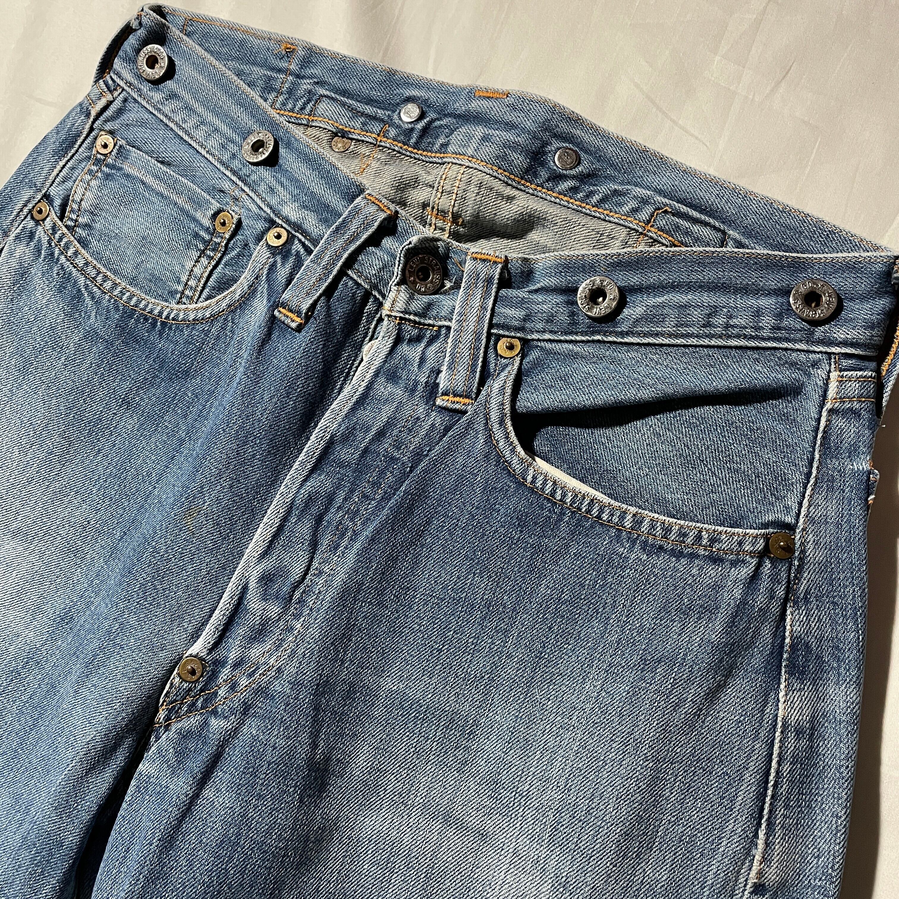 リネンパッチがつく当時の所謂、廉価版的位置付けだった201XX。ベルトループとサスペンダーボタンが混在していた30s後期あたりの復刻かと思います。